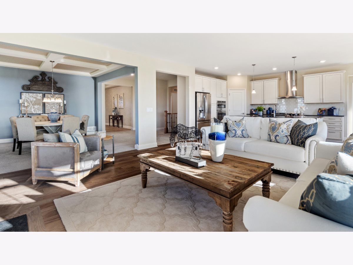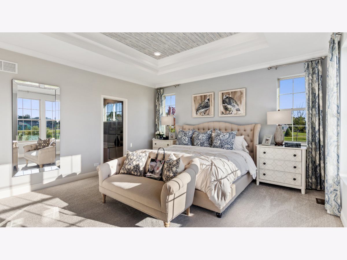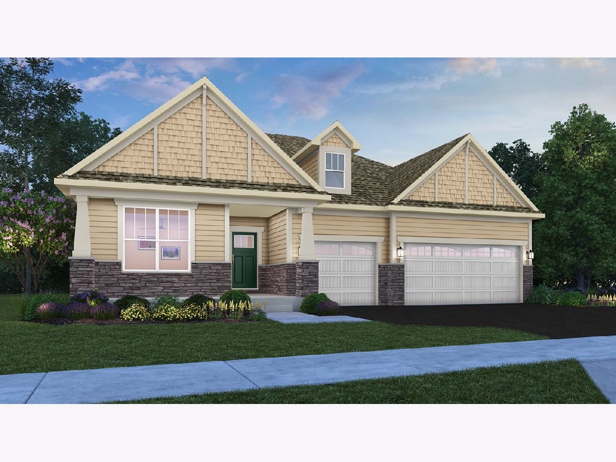 3 of a kind is your best to move in on. 3-bedroom, 3-bathroom, & 3-car garage with a charcoal garage door. Your new home is known as the Matisse. A ranch home with an open floorplan, offering 2365 sq ft all in Creekside Crossing, a spacious community near historic downtown Plainfield, Illinois that features shops, top-end restaurants, and more. As you walk up to your new home you will notice the covered porch in the front with brick featured on the front and street side, with driftwood vinyl siding, and rhinestone exterior trim. Walk in through your Midnight Blue front door and find a welcoming foyer. Alongside the foyer is the spacious second bedroom with a large walk-in closet and its own private bathroom, making it an ideal space for a guest suite. As you move into the home you will find a large family room with a fireplace that features a Kenwood mantle. The adjoining dining room, bright breakfast area, and kitchen you a wonderful open concept. The modern kitchen features a walk-in pantry, a large center island with a sink, and a breakfast bar. The 42" Aristokraft Benton-white designer cabinets, Iced White Quartz 3 cm countertops, and all stainless-steel appliances are gorgeous touches on the home. All with a view of the backyard and entry to the covered patio of the eating area. The owner's suite is privately tucked away in this home's back corner for maximum privacy. The elegant owner's suite includes a private bathroom with double-bowl vanity, a Deluxe walk-in shower, and an enormous walk-in closet. The third bedroom includes a walk-in closet and is located next to the third full bathroom. The laundry room, garage, and basement give you plenty of room for storage or for future finishings as the basement has a rough-in for another bath. The home is guaranteed via a 10-year structural warranty. Nearby recreation includes hiking at Prairie Activity Recreation Center, Gregory B. Bott Park, Fort Beggs Bike Trail, Mather Woods Forest Preserve and plans to build a park in the community. Forty-five minutes from Chicago's Magnificent Mile, aka the North Michigan Avenue shopping and cultural mecca. All of this is in Plainfield school district 202 featuring Plainfield North High school. The pictures are of the model home, not the unit on-site, some features may differ. This future home is to be on lot 5131 and will be ready in March for move-in. Call to set up your private showing today.