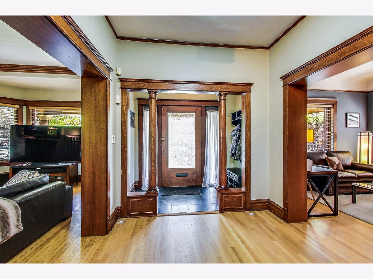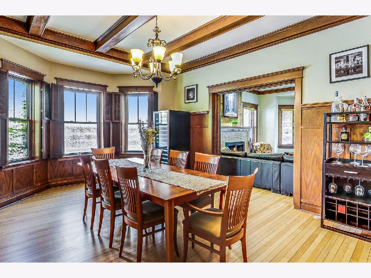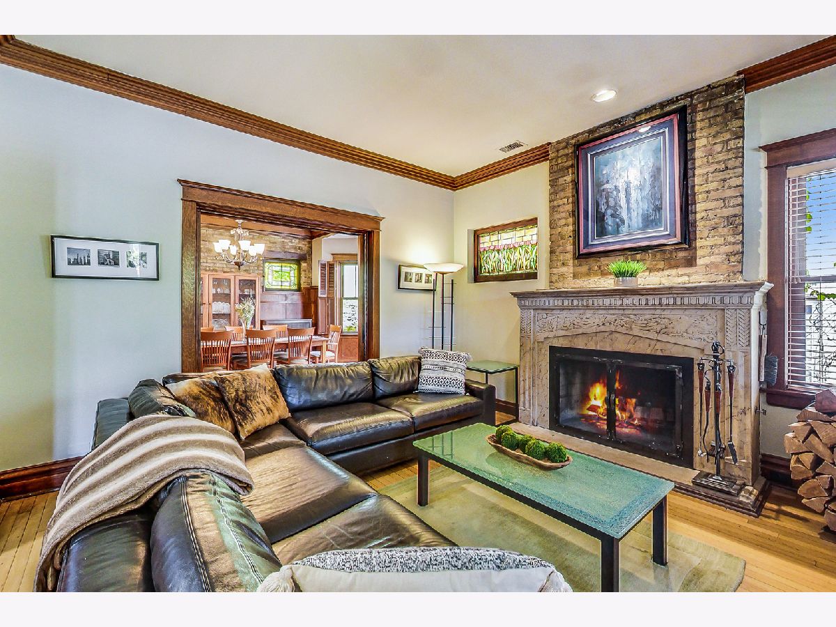 Welcome home! In the heart of historic East Rogers Park sits this arts and crafts style home, a true architectural beauty, on a wide double lot with plenty of backyard space. Once you make your way past the covered porch, step into the beautiful foyer with original wood trim and a large staircase greeting you. On the main floor you'll find the study, with custom built in bookcases and original coved ceiling. Across the hall, the living room has a large wood fireplace exquisite vintage stained glass windows. Through the sliding wooden pocket doors is the dining room, with a large chandelier and enough space for a table for your largest family gatherings. The kitchen is art deco inspired, with stainless steel appliances and plenty of cabinetry. An updated powder room rounds out this level. On the second floor, the primary suite has plenty of natural light and another updated bathroom, featuring a shower and double vanity. The other three bedrooms on this level have lush wall-to-wall carpeting, and the final full bathroom on the floor is updated with a soaking tub and separate shower. The third floor has an extra bedroom and plenty of storage space. Down in the unfinished basement, there's plenty of opportunity - there are 3 separated rooms (currently containing a workshop, laundry room, and gym) along with large spaces for plenty of storage. The backyard is landscaped to perfection, with a covered brickwork patio featuring wood burning fireplace and built-in grill and even a water feature amidst the plethora of vegetation. There is also a detached 3.5-car heated garage in the back of the lot. Ideally located near the Metra, with plenty of shopping and dining nearby (Sheridan, Morse, and Clark all walkable), this home has it all. Come see it before it's too late!