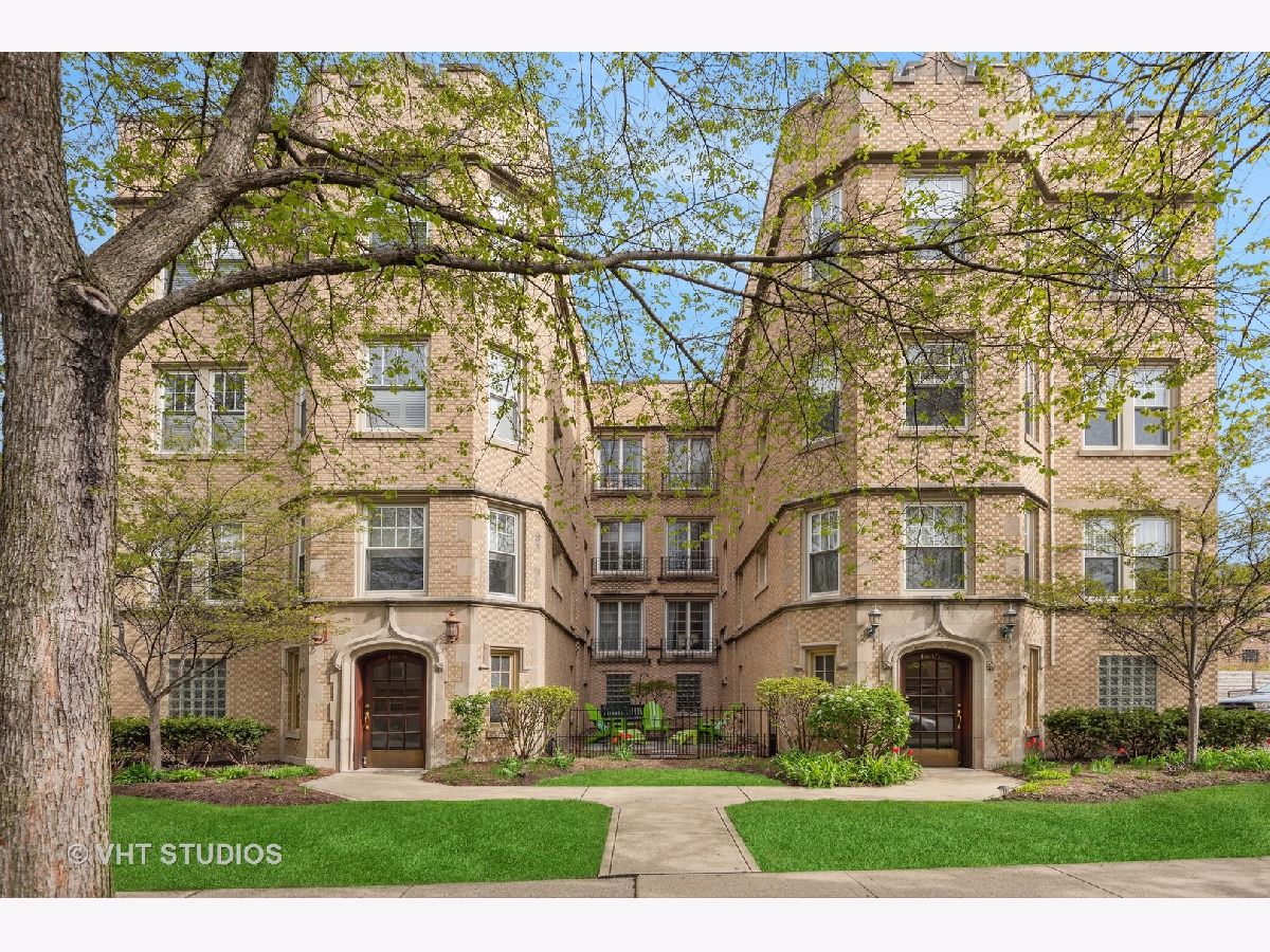 Welcome to this idyllic setting, blocks from the new 2020-built Robert Crown Community Center, which features an Evanston public library branch and a multi-sports/ice arena. Located on a wide, one-way (East) tree-lined street comes this renovated one bedroom, one bath, treetop (third-floor) offering. Well cared for by the current owner: newer painted walls, trim, buffed floors, repainted and refreshed bathroom grout/caulk, newer programable thermostat, organized closets, newer oven/range (2019). Wonderful open floorplan with South, West and East exposure! Tall nine-foot ceilings and central air with in-unit laundry complete the package. The kitchen includes a stainless appliance package, recessed lighting, granite countertops and cherry cabinetry. The open concept is pleasing and feels very spacious. Beautiful floor-to-ceiling casement window in the living room allows courtyard breezes and unrivaled views. The building boasts a new roof (2022), a new water tank (2018/2019), and offsite professional management with landscaping services included. Only six units have a garage, and this home includes a one-car garage - space #4. Pets and rentals are allowed.