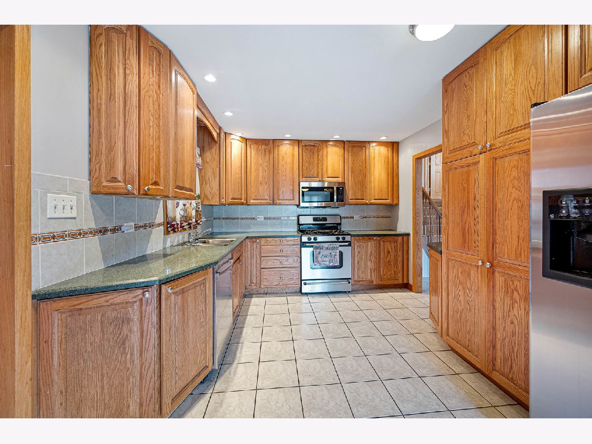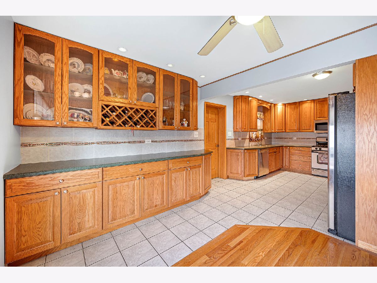 Don't miss the opportunity to live in this great family home in the popular Castle Heights neighborhood in Mount Prospect! Spacious 4 bedroom, 3 bath, 2400 SF, brick split level home is situated on beautiful tree-lined street. Foyer welcomes you to the open and flowing floorplan with lots of warm and inviting living space. Large living room has hardwood flooring, large windows and lots of light. Huge kitchen features full height oak cabinets, stainless steel appliances, quartz countertops, expansive butler pantry, and separate eating area. First floor also features addition off kitchen with family room and a large, private bedroom and full bath, which could be used as primary bedroom or for in-law arrangement. Second floor has three additional spacious bedrooms with ample closet space and a full hall bath. Lower-level features even more living space for multiple use such as rec room, playroom, media room, or home office. Lower level also has utility room with garage access. Enjoy your private, fenced backyard with large concrete patio. Home also features extra-deep 2 car garage and a separate basement with exterior access, both offering plenty of space for storage. Located in desirable district 214 and conveniently located near Aspen Trails Park, Robert Frost School, shopping, golf, forest preserve, expressways, and the Prospect Heights Metra station. Sellers are motivated, quick close possible.