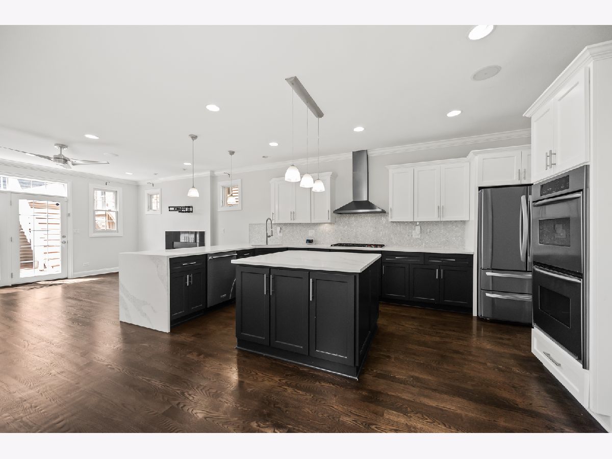 Welcome home to 1615 W Superior St on the edge of West Town and Noble Square! 5 bed, 3.5 bath single family. Main level: formal sitting area combined with large dining area, butlers pantry, double door pantry, half bath, large kitchen with ample storage including a big island, seating at kitchen peninsula, living room off kitchen. Back door leads to Trex decking going down to garage or up to the rooftop with views of the city! Upstairs are three bedrooms including the primary suite and full 2nd bathroom. All three full bathrooms feature heated floors. Primary suite has vaulted ceilings. The primary bathroom has a double sinks, whirlpool tub and steam shower, laundry room upstairs. In the lower level there is an another living room with fireplace, dry bar, two bedrooms and another full bath and washer/dryer hookups for a 2nd laundry area.