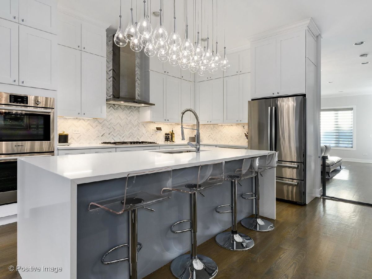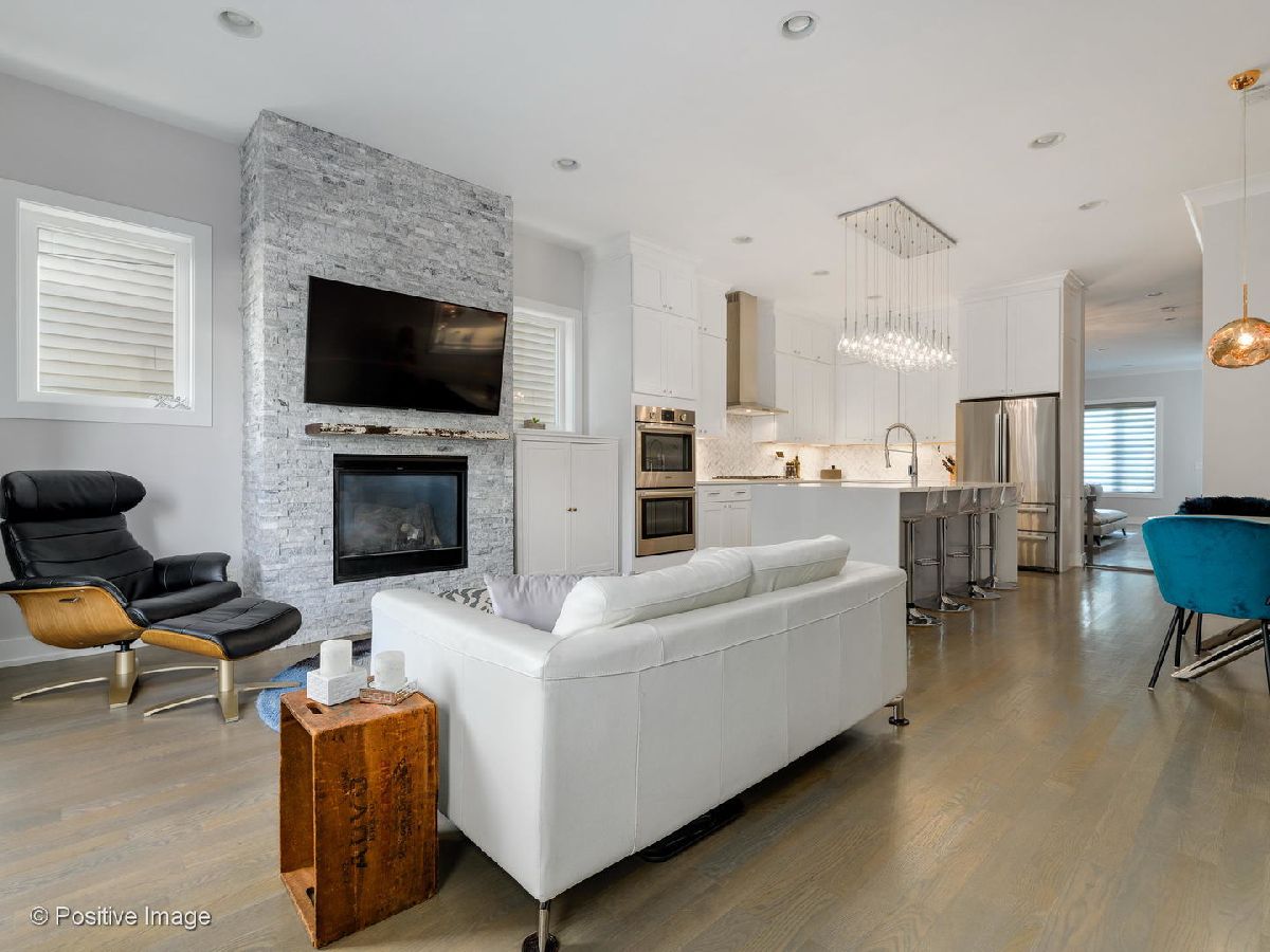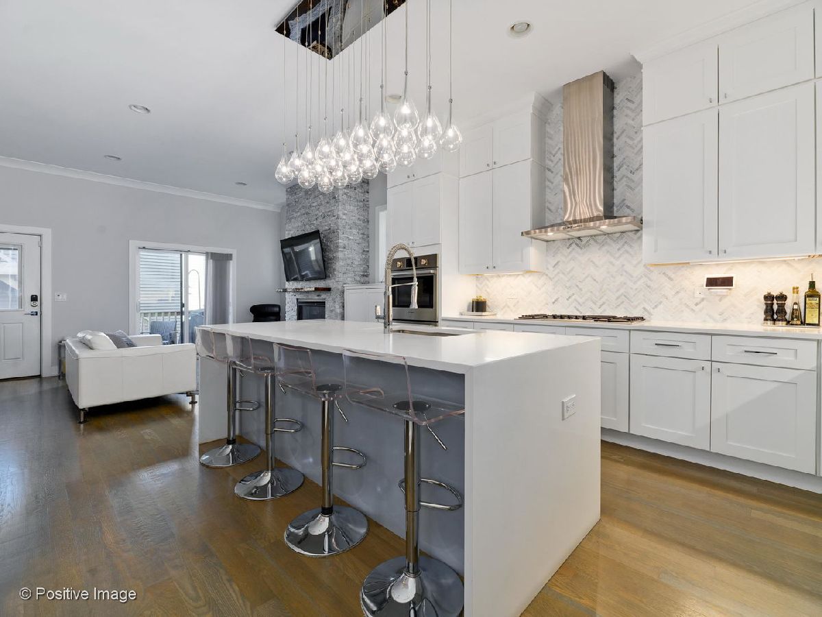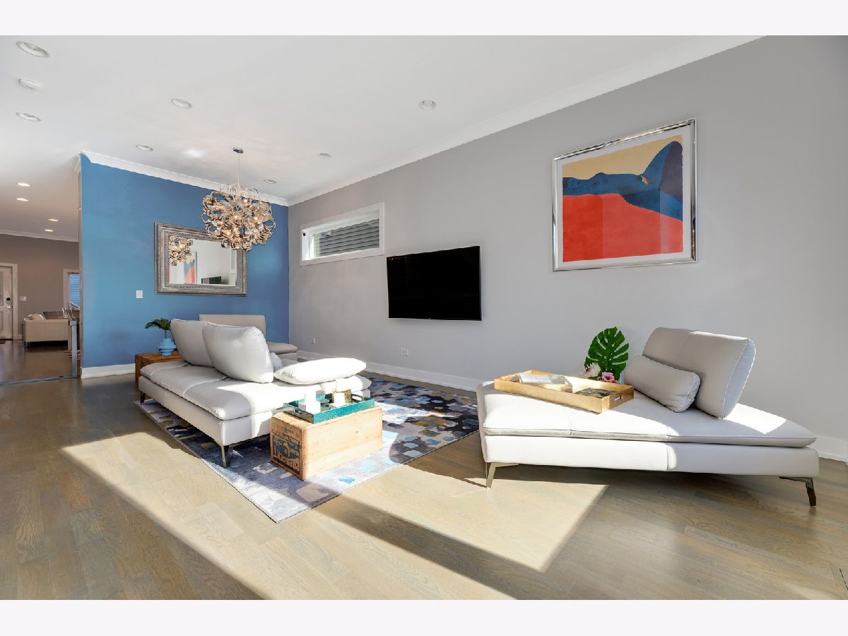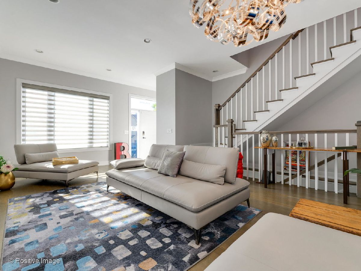 Stunning and expertly designed newer construction 5 bedroom + 3.1 bathroom Single Family Home in prime Logan Square location! Natural light radiates in from the west-facing windows, capturing incredible afternoon and evening sunlight. Front foyer allows for a proper entry way with a bench and built-out coat closet. Formal living room is expansive and perfect for entertaining guests, and leads to the dedicated dining area with dramatic accent wall and custom chandelier. Designer kitchen is outfitted with upper and lower white shaker style cabinetry, Bosch appliance package with double oven and built-in drawer microwave, Quartz countertops with waterfall edge, marble backsplash & island with breakfast bar seating. Adjacent to the kitchen is a nook for a breakfast table, which opens up to the family room, outfitted with a gas fireplace, sliding glass doors to the back deck & custom built-ins for extra organized storage. Main level features oak hardwood floors, soaring 10 foot ceilings, powder room & back deck with gas line, and room for a bistro table & herb garden. Upper level offers an expansive master bedroom, and an en-suite bathroom finished with marble tiling throughout, and includes dual vanities, a deep soaking Jacuzzi tub & rain shower with bench! No detail was spared designing the master's custom walk-in closet, created for a shoe lover! Second and third bedrooms are perfect for visiting guests, or use as a light-filled home office. Large laundry room has side-by-side front loading Samsung washer/dryer with tons of extra storage, separate from the hallway linen closet and full guest bathroom. Lower level is finished with a second family room with a wet bar, even more storage, second laundry hook-up, full bathroom, guest bedroom & fully appointed home gym (or 5th bedroom) with rubber floors & mirrored walls! Some of the well-thought details included in this home are an oversized tankless hot water heater, dual zoning, on demand designer lighting fixtures with dimmers, incredible storage, professionally built-out closets & top of the line window treatments. This beautiful Smart Home is equipped with Google Nest cameras, security door locks, and is completed with a two car garage, grassy backyard & fully finished garage rooftop deck! Situated on a quiet, tree-lined street, just two blocks from the 606 Bloomingdale Trail & Humboldt Park, and close to so many local restaurants & hotspots! Floor plan can be found in additional documents.