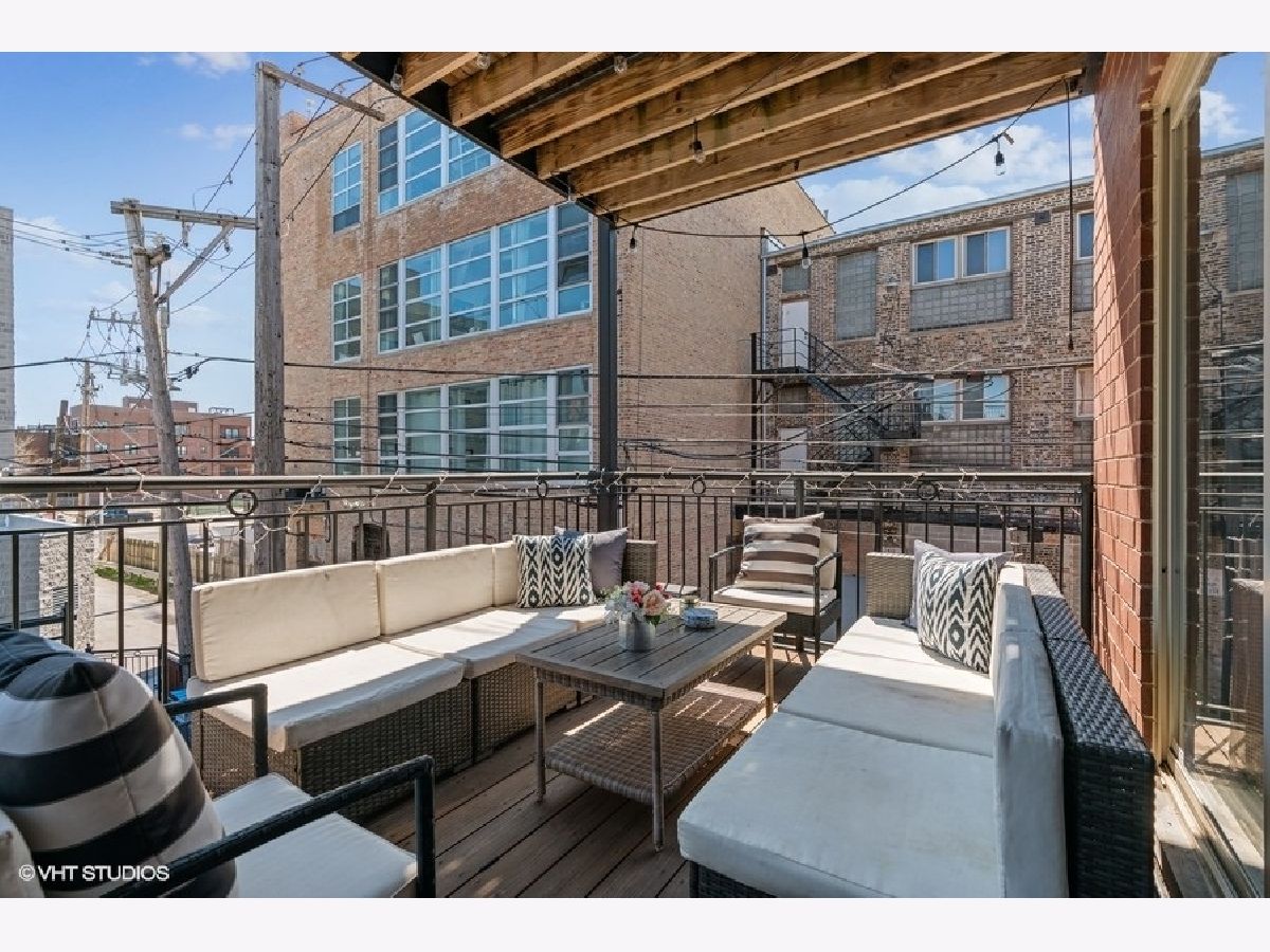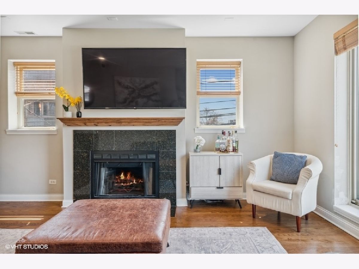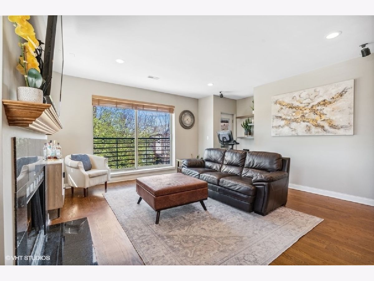 West Bucktown all brick 2 bed, 2 bath just steps from the 606 Trail! Sitting on the southeast corner, it boasts tons of sunlight! Experience the convenience of an open concept common area. The living room features a cozy wood burning fireplace with gas starter, surround sound speaker system and a massive glass sliding door with Juliet balcony. The spacious kitchen is finished with 42" cabinets, stainless steel appliances, granite counters, tile backsplash and oversized breakfast bar. Retreat for the evening to the two generously-sized bedrooms and two bathrooms. The spacious primary suite is complete with custom organized closets and a rich slate tiled ensuite bathroom with double vanity. Don't miss the enormous additional storage closet adjacent to the laundry room, which is also perfect for a mini mudroom. Relish the warm Chicago summer evenings from your large 16'x9' private deck. New in unit washer and dryer, exterior gated parking space and bonus 4'x8' extra storage included with the unit. The association is well managed and on top of maintenance with recent investments in landscaping. This location is Incredible- situated in Bucktown/Wicker Park/Logan Square, it allows quick and easy access to the 606, multiple transit options (Western Ave blue line and North & Western Ave bus lines), great parks including Churchill Park (dog friendly!) Palmer Square and Humboldt Park, and the endless amazing cafes, dining, and nightlife options that hot Logan Square and Bucktown have to offer!