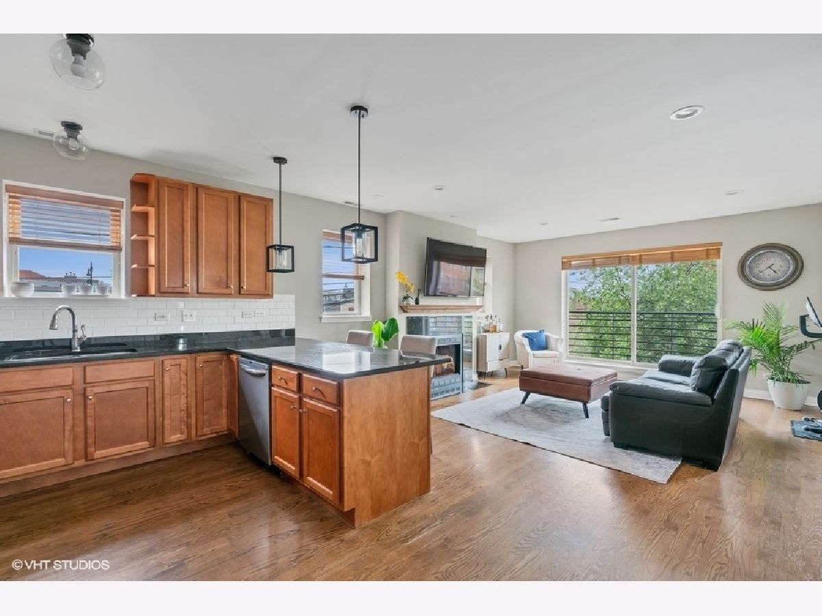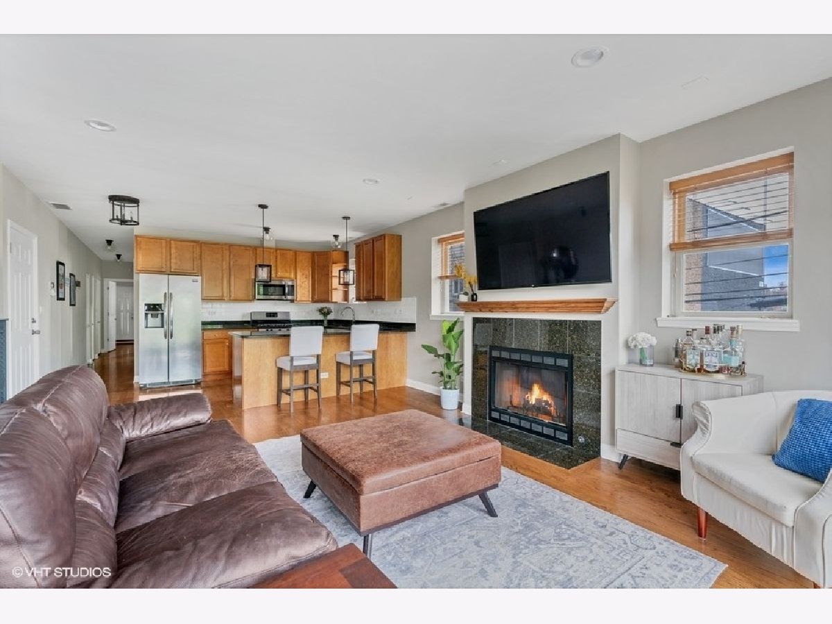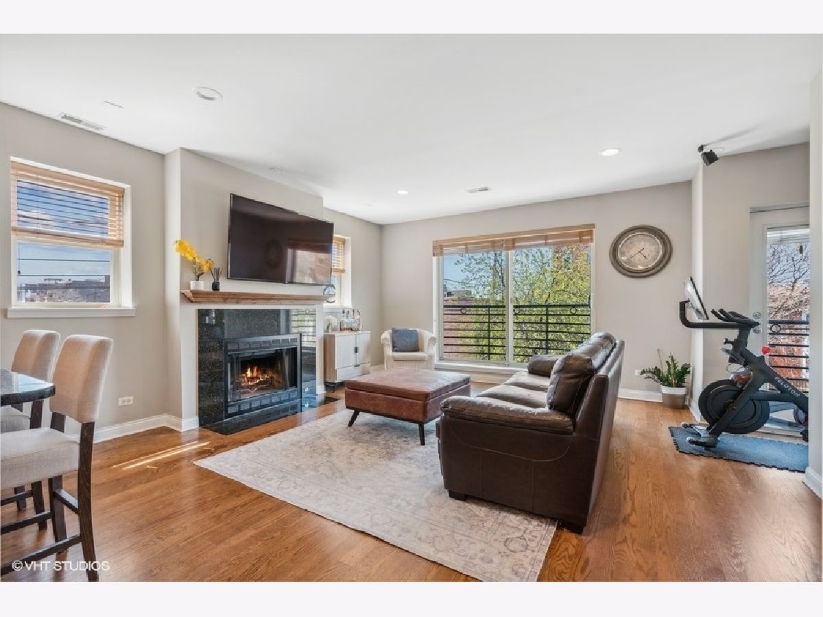 West Bucktown all brick 2 bed, 2 bath just steps from the 606 Trail! Sitting on the southeast corner, it boasts tons of sunlight! Experience the convenience of an open concept common area. The living room features a cozy wood burning fireplace with gas starter, surround sound speaker system and a massive glass sliding door with Juliet balcony. The spacious kitchen is finished with 42" cabinets, stainless steel appliances, granite counters, tile backsplash and oversized breakfast bar. Retreat for the evening to the two generously-sized bedrooms and two bathrooms. The spacious primary suite is complete with custom organized closets and a rich slate tiled ensuite bathroom with double vanity. Don't miss the enormous additional storage closet adjacent to the laundry room, which is also perfect for a mini mudroom. Relish the warm Chicago summer evenings from your large 16'x9' private deck. New in unit washer and dryer, exterior gated parking space and bonus 4'x8' extra storage included with the unit. The association is well managed and on top of maintenance with recent investments in landscaping. This location is Incredible- situated in Bucktown/Wicker Park/Logan Square, it allows quick and easy access to the 606, multiple transit options (Western Ave blue line and North & Western Ave bus lines), great parks including Churchill Park (dog friendly!) Palmer Square and Humboldt Park, and the endless amazing cafes, dining, and nightlife options that hot Logan Square and Bucktown have to offer!