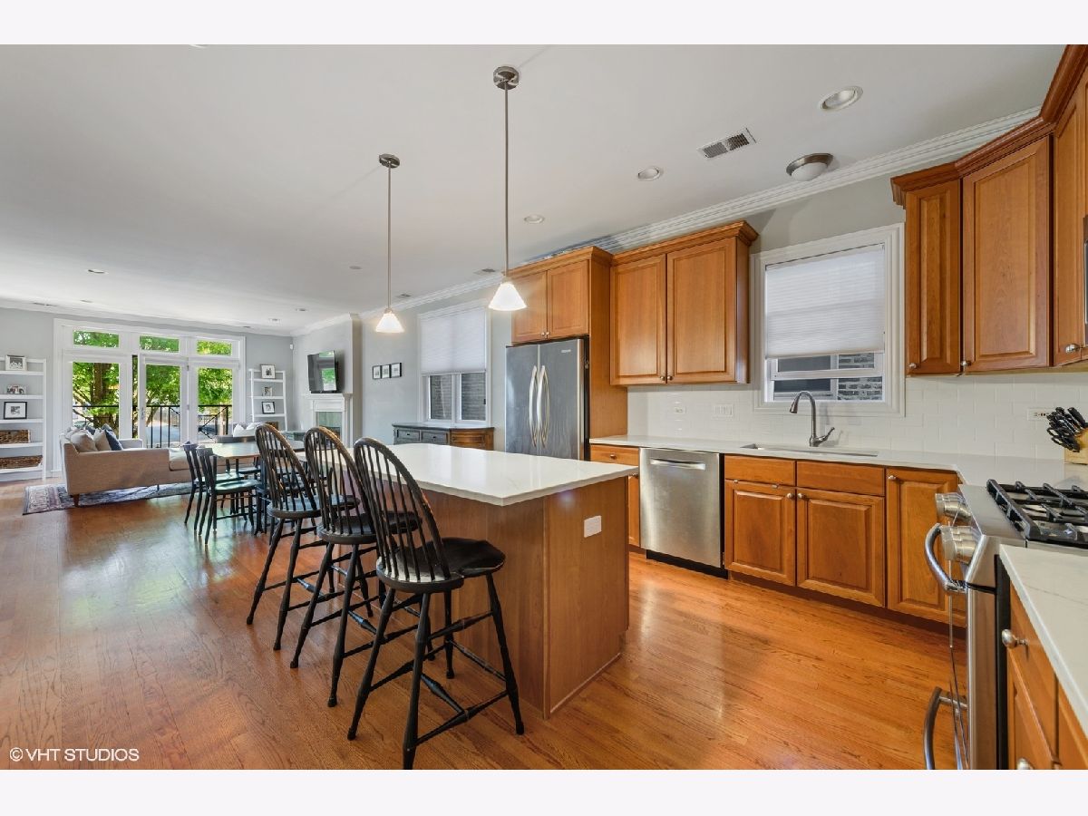 Bright and spacious duplex down in Burley Elementary School district. Unique floor plan with 3 bedrooms in the lower level and an open concept main level with hardwood floors. The gourmet kitchen was updated in 2019 with quartz countertops, subway tile backsplash, basin sink, Kohler touch-less faucet and GE Profile and Bosch stainless steel appliances. Living room features include a wood burning fireplace, crown molding and high ceilings. The lower-level Primary bedroom features a private brick patio, two walk-in closets, En Suite Bath with dual sinks, steam shower and heated floors. Separate laundry room with side by side LG washer and dryer (2019) on the same level as the bedrooms. 2nd and 3rd bedrooms share a jack and jill bathroom. New AC condenser installed in 2021 and furnace in 2018 with nest thermostat. Garage parking is included in the price. Whole Foods, Target, public transportation and Southport Corridor restaurants and shops right outside your door! Seller cannot closer before end of December. 2023 Taxes: $12,659.20 with no exemptions. Monthly HOA $245