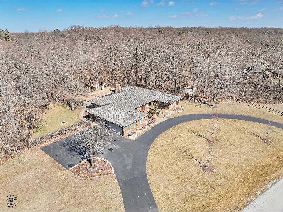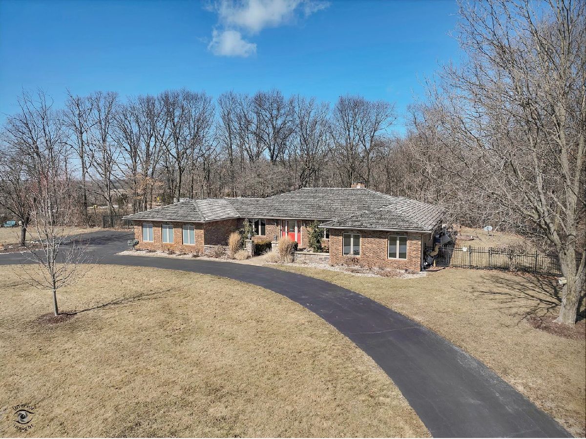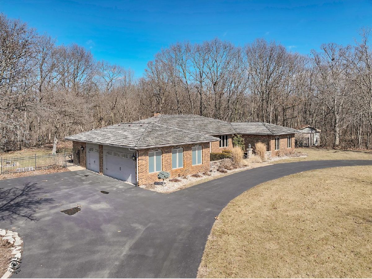 Nestled on a picturesque wooded acre lot in a private one-lane subdivision, this stunning 4 bedroom, 2.5 bath ranch offers the perfect blend of comfort and elegance. Situated on a corner lot, the property provides ample privacy, with a fully fenced backyard that serves as a personal oasis, featuring an inground heated pool with an automatic cover, and an additional storage shed. Inside, the home boasts a custom kitchen with high-end cabinetry, granite countertops, an inviting eat-in area, and a separate formal dining room. The spacious sunken living room features a dry bar area and sliding glass doors that lead directly to the backyard retreat. All four bedrooms and two full bathrooms are located on a separate end of the home, providing privacy and a functional layout. The full-size basement offers both a partially finished space and a partial crawl for storage. A three-stall garage provides plenty of room for vehicles and storage needs. Conveniently located near walking trails and just minutes from I-394, this home offers easy interstate access and is only 40 minutes from downtown Chicago, perfect for daily commuters. Enjoy the perfect combination of privacy, nature, and accessibility. Don't miss your chance to own this exceptional property, schedule your private tour today!