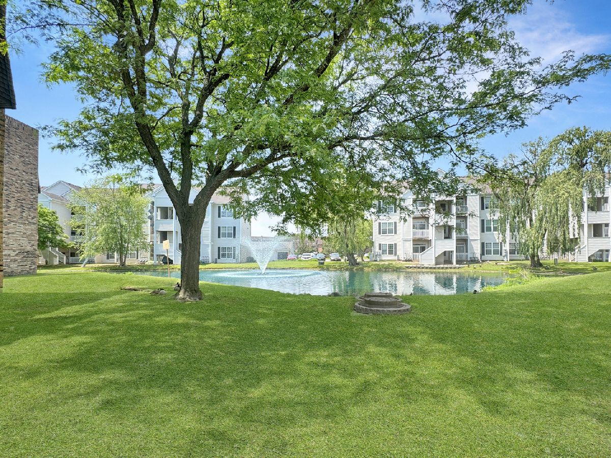 Investor Opportunity!! Fantastic tenant with renewed lease just signed through May 2026. 2BR/2BA main floor until with westerly views of a pond from the patio. In-unit washer and dryer. Spacious throughout. Large kitchen, dining room and living room. Primary bedroom has private bathroom and walk-in closet. Unit includes a detached one car garage. Plenty of parking as well. Walk to shopping and close to I-355/I-290.
