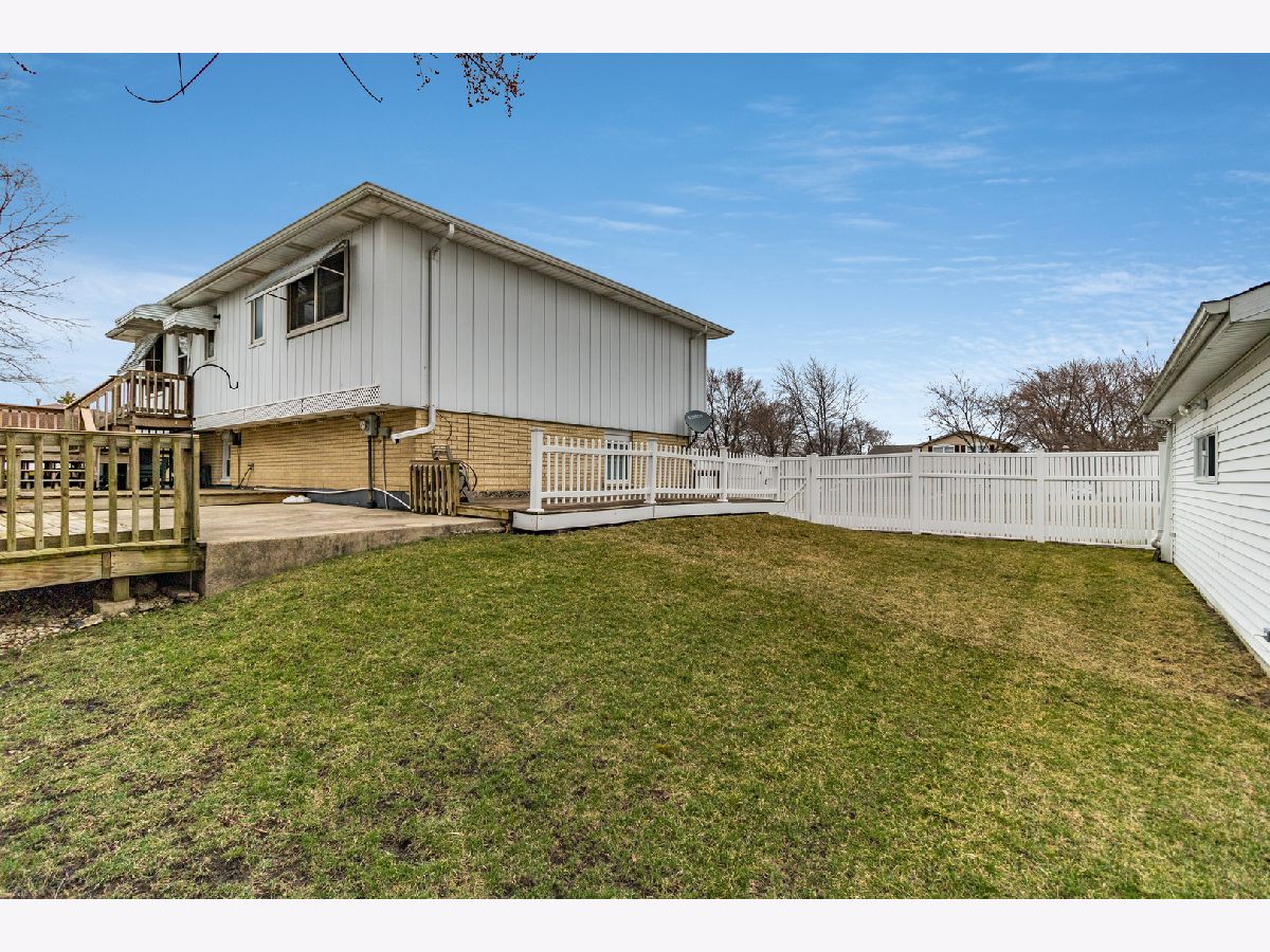 Welcome home to this very lovely and well maintained one-of-a-kind raised ranch with great curb appeal! 3 bedrooms, 2 full baths, 2.5 car garage with 1900 sq ft of living space. Maintenance free railing to front porch. Foyer with ceramic tile and oak railings. Main level with new carpeting features living room, very spacious kitchen with ceramic back-splash, large dining area, 3 bedrooms and large full bath with ceramic tile and spa tub. As you descend to lower level you will find a family room, office (currently utilized as 4th bedroom), full bath with ceramic tile & beautiful ceramic surround shower, laundry room, storage room and huge recreational room with exterior walk-out patio door access to extra driveway. The large side yard boasts maintenance-free fencing, huge double tier deck, side deck, outdoor shed and access to the 2.5+ detached garage. 2 driveways offer 4 additional parking spaces. Carpeting 2018, Furnace & A/C 2010, HWH 2018, Roof, Soffit, Fascia 2013, Leaf Guard on gutters 2016, Refrigerator 2017, Microwave 2018, Washer 2014, Dryer 2019, Fence, Garage 2000. Park/playground 3 blocks away. Only a mile to award winning Tinley Park District and short distance to shopping, restaurants.