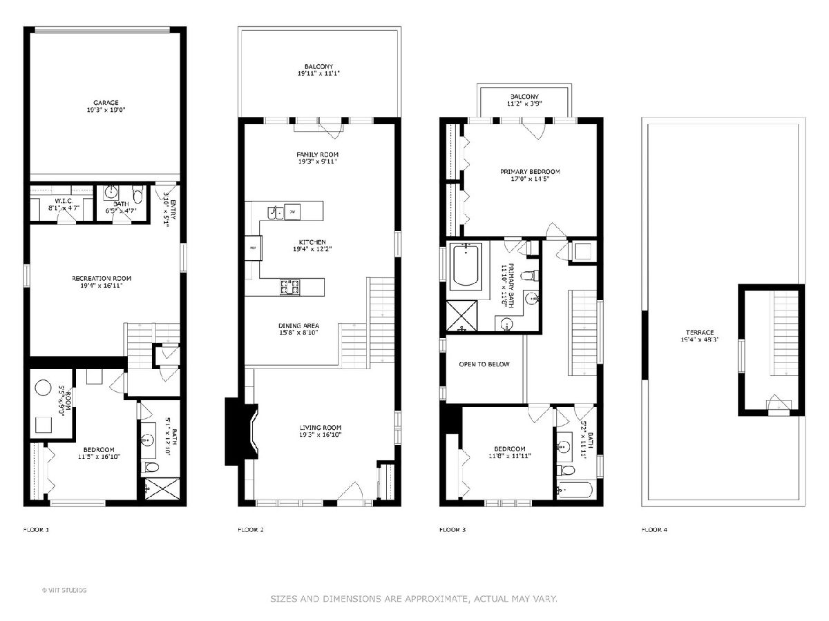 Bright and sunny 3BR, 3.5 BTH single family home on a quiet tree-lined street in a fabulous West Town Location. Just minutes to all the amazing restaurants and bars on Chicago Avenue, East Village and easy access to the expressway, West Loop and Fulton Market as well. This home has a wonderful open layout with large central skylight flooding the top two floors with natural light. The spacious living room with vaulted 2-story ceiling and a fireplace leads to a large kitchen that has tons of counter space, a nicely sized island and beautiful cabinetry that was just refinished. Adjoining dining space and great room with French doors to large back deck make this home perfect for entertaining. 1st floor features a family room, half bath and 3rd bedroom with full ensuite bathroom. 3rd floor features two bedrooms and two full baths including a well appointed primary suite with private balcony, very large bathroom with double sinks, separate shower and incredible tub. Top floor features a small office space and walks out to roof-top with fantastic views of downtown, just waiting for your dream roof-top deck to be built! Recent updates include a new roof, new HVAC system and maintenance free TrexTM Decking on both decks. All this with a very hard to find attached 2-car garage. No more carrying groceries in during the rain or snow. Great opportunity in an awesome location.