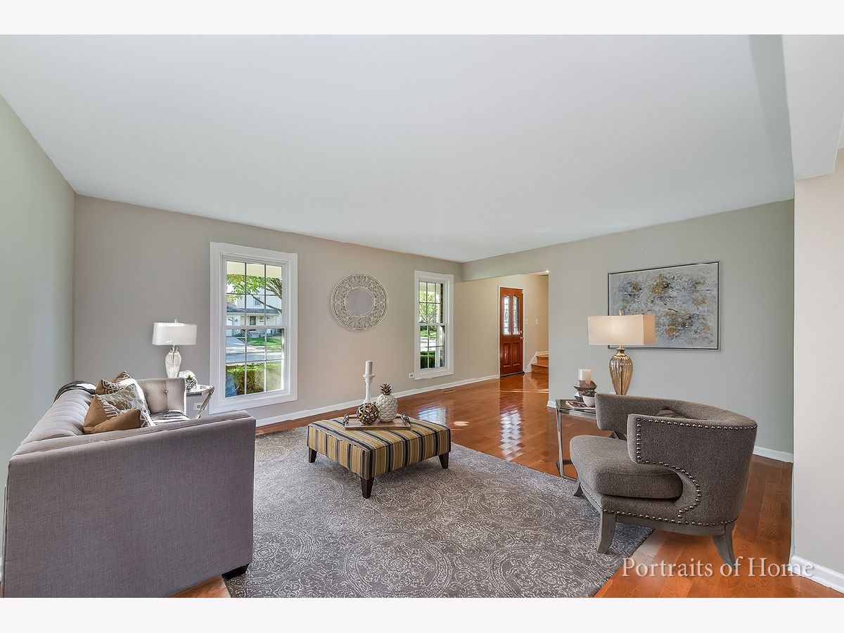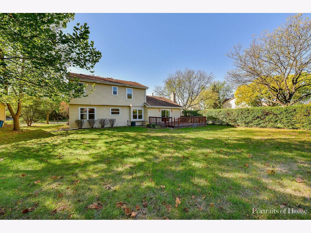 Immaculate & ready for move in! Oversized tree lined lot offers spacious 4 bedrooms & 2.5 baths. Interior professionally painted in today's neutral grey. Hardwood flooring on main level & all new carpet on second floor. Large living room & separate dining room with new fixture. Newly white painted cabinets (not shown in photos), granite countertops, SS appliances-new stove, side by side washer dryer. Family room open to kitchen offers volume ceiling w/wood beam, wood burning fireplace with gas start. Sliding door leads to large wood deck overlooking private yard. First floor laundry. All bathrooms updated with new vanities, ceramic flooring & decorative tub surround, new toilets, fixtures and mirror. Spacious primary bedroom w/private bath. Attached two car garage w/pull down attic. Large crawl. Bus to schools & Pace to DG train at corner. Low taxes, top rated schools, parks, park district & active cul-de-sac. Centrally located to shopping, dining, expressways & both airports.