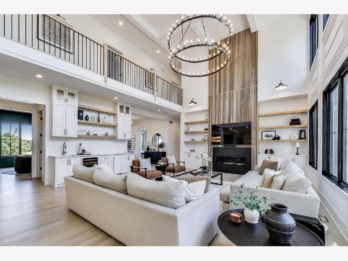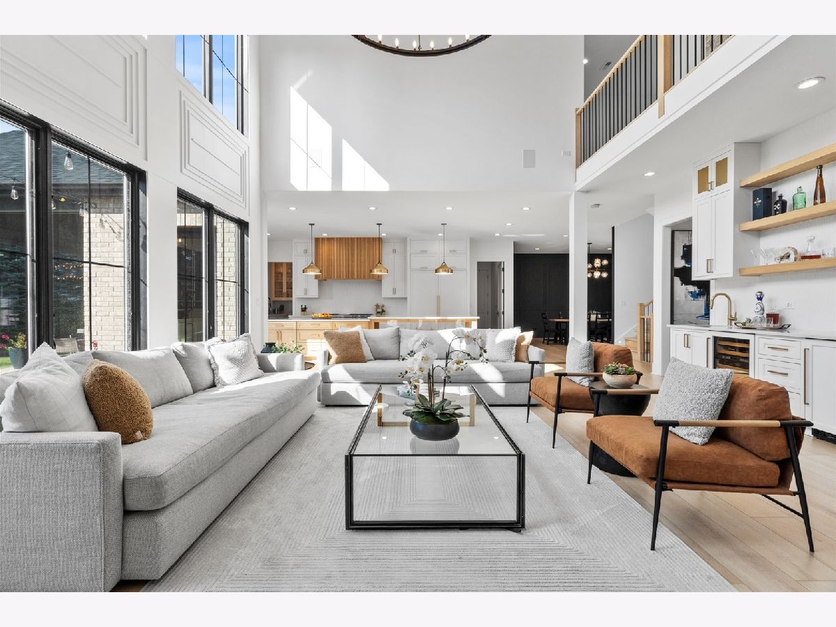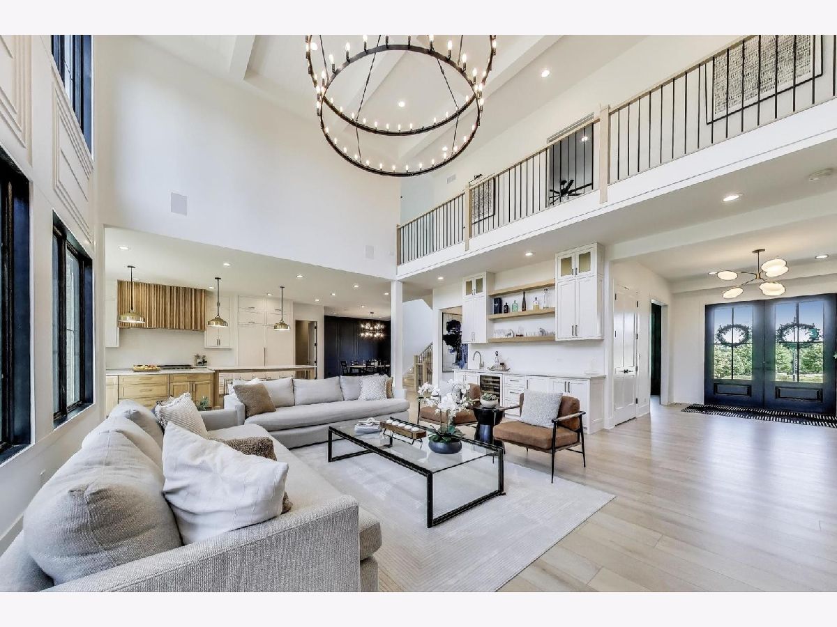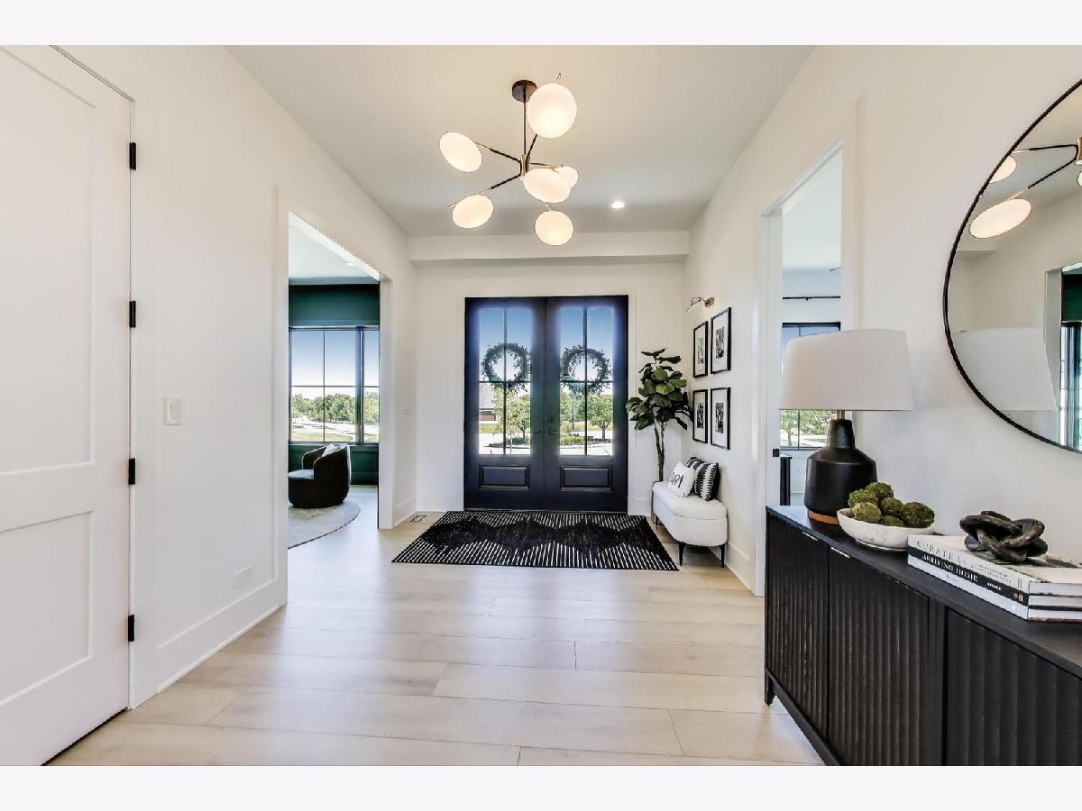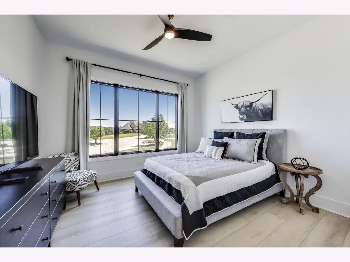 Custom built modern farmhouse on nearly 3/4 acre in Evlyn's Gate, where every detail and mill-work finish wows from white-oak floors to marble-veined showers. The light-filled main level offers a vaulted first-floor primary suite with spa bath and giant walk-in closet, plus a guest bedroom and formal dining with dramatic paneled walls and globe chandelier. Entertaining is effortless in the chef's kitchen-dual-tone waterfall 16' island, hidden walk-in pantry and butler's wet bar-or spill out under the vaulted cedar-planked covered patio, wired for string lights, onto a sprawling paver terrace and fully fenced lawn ready for volleyball, gardening or a future pool. Upstairs, three ensuite bedrooms each boast custom closets and share a lofted gallery/game room overlooking the two-story family room. Practical luxury continues in the stylish mud/laundry room with deep quartz counters, farmhouse sink and stacked LG washer/dryer, and the unfinished lower level is pre-plumbed and pre-wired for a future theater, gym or in-law suite. Located in an award-winning school district and surrounded by other custom homes, you're minutes from I-355, I-80 and I-55, with shopping and restaurants moments away. Evlyn's Gate itself feels like a private resort, with three ponds, walking paths, park grounds, pavilions, stone bridge and more-truly the perfect backdrop for daily living and future resale. Seller is offering a 1 year home warranty!!! Schedule your private tour today!