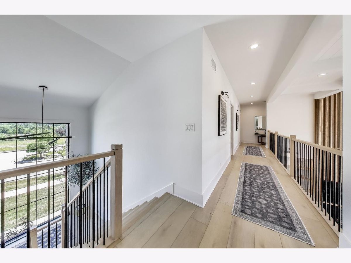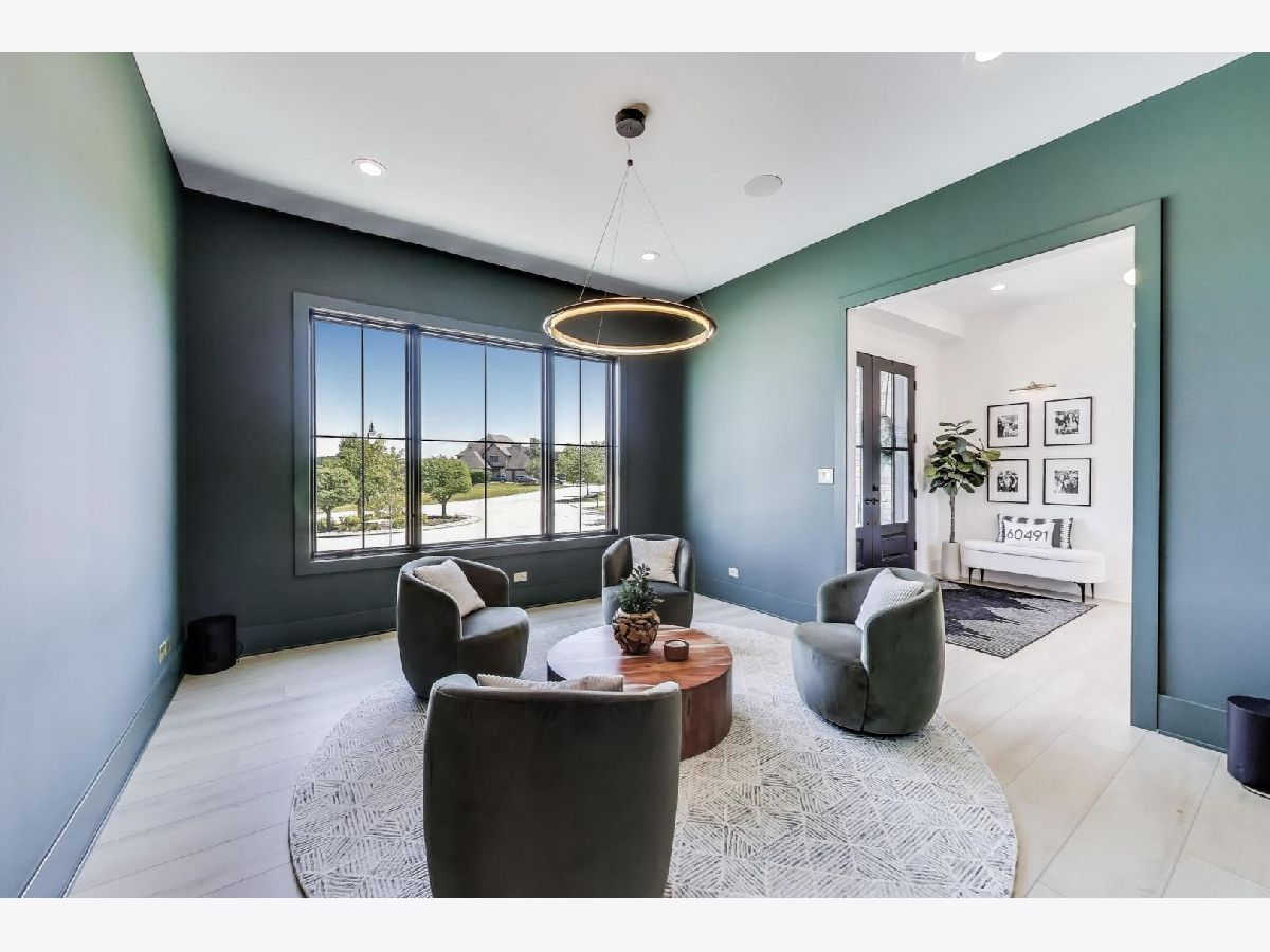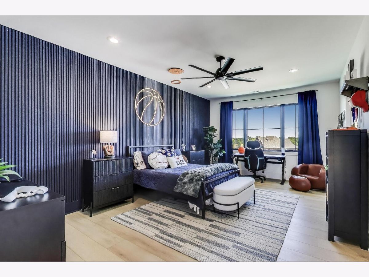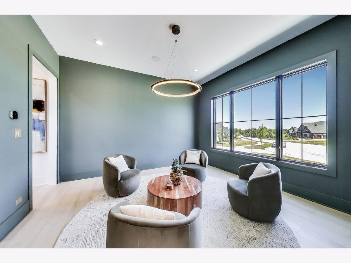 Custom built modern farmhouse on nearly 3/4 acre in Evlyn's Gate, where every detail and mill-work finish wows from white-oak floors to marble-veined showers. The light-filled main level offers a vaulted first-floor primary suite with spa bath and giant walk-in closet, plus a guest bedroom and formal dining with dramatic paneled walls and globe chandelier. Entertaining is effortless in the chef's kitchen-dual-tone waterfall 16' island, hidden walk-in pantry and butler's wet bar-or spill out under the vaulted cedar-planked covered patio, wired for string lights, onto a sprawling paver terrace and fully fenced lawn ready for volleyball, gardening or a future pool. Upstairs, three ensuite bedrooms each boast custom closets and share a lofted gallery/game room overlooking the two-story family room. Practical luxury continues in the stylish mud/laundry room with deep quartz counters, farmhouse sink and stacked LG washer/dryer, and the unfinished lower level is pre-plumbed and pre-wired for a future theater, gym or in-law suite. Located in an award-winning school district and surrounded by other custom homes, you're minutes from I-355, I-80 and I-55, with shopping and restaurants moments away. Evlyn's Gate itself feels like a private resort, with three ponds, walking paths, park grounds, pavilions, stone bridge and more-truly the perfect backdrop for daily living and future resale. Seller is offering a 1 year home warranty!!! Schedule your private tour today!