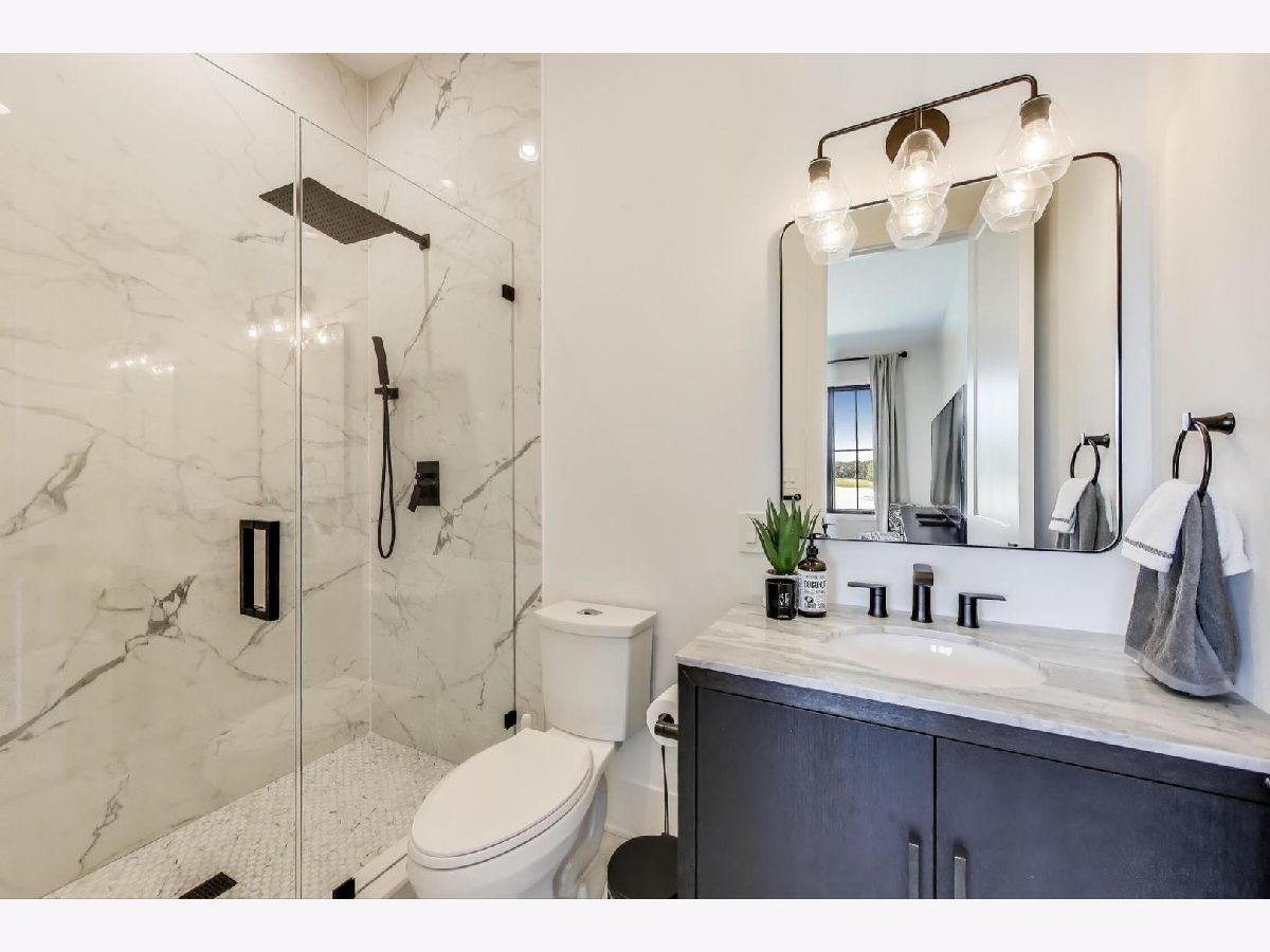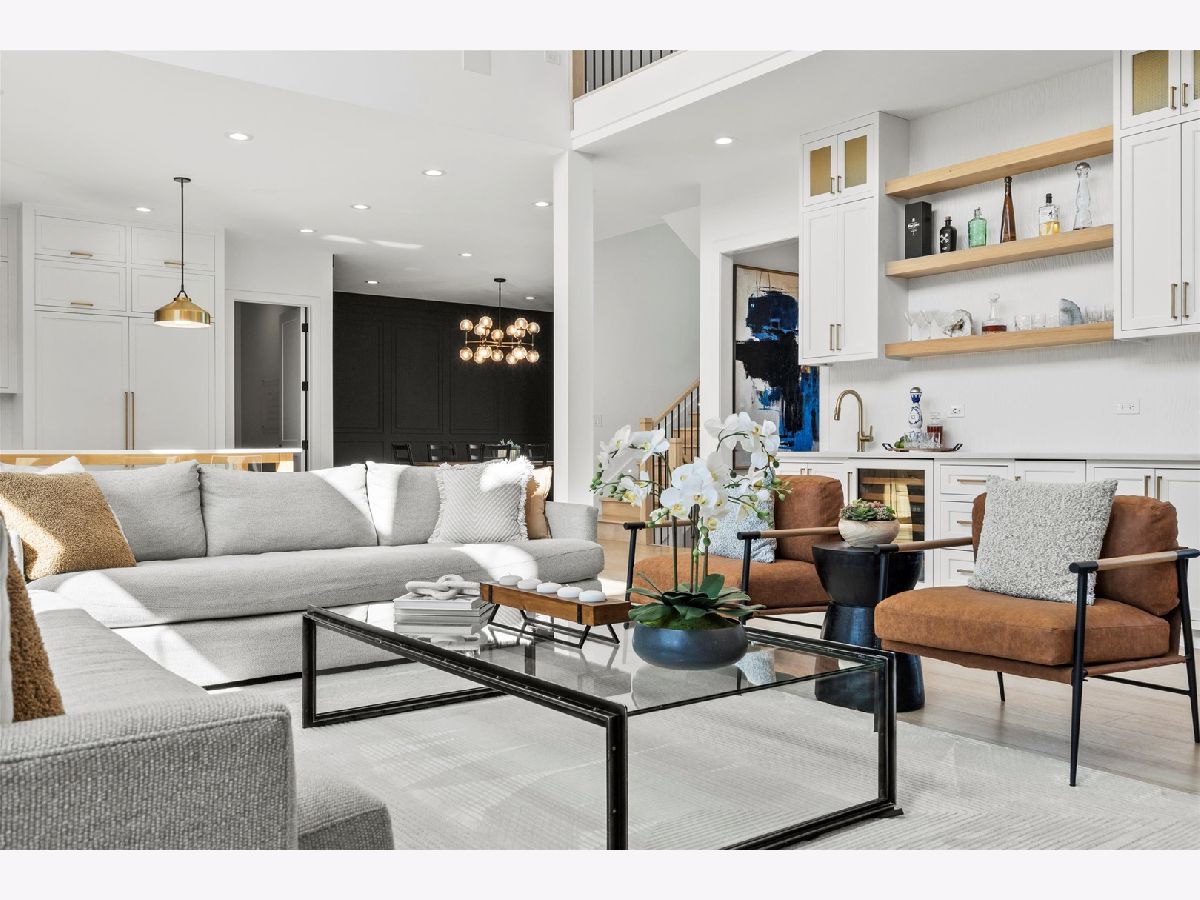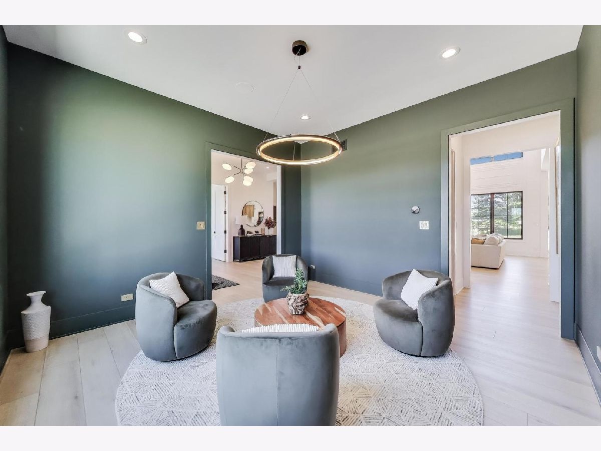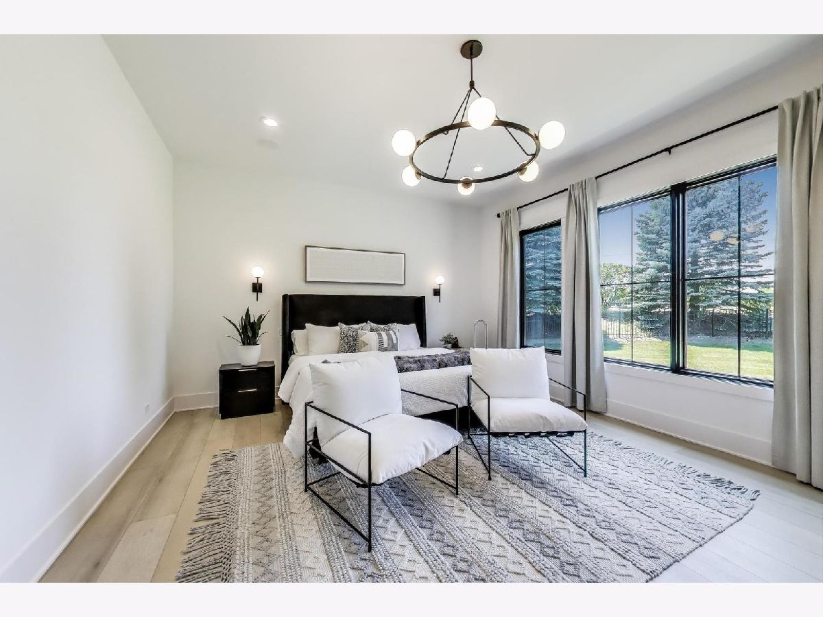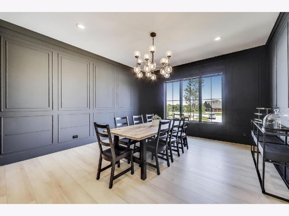 Custom built modern farmhouse on nearly 3/4 acre in Evlyn's Gate, where every detail and mill-work finish wows from white-oak floors to marble-veined showers. The light-filled main level offers a vaulted first-floor primary suite with spa bath and giant walk-in closet, plus a guest bedroom and formal dining with dramatic paneled walls and globe chandelier. Entertaining is effortless in the chef's kitchen-dual-tone waterfall 16' island, hidden walk-in pantry and butler's wet bar-or spill out under the vaulted cedar-planked covered patio, wired for string lights, onto a sprawling paver terrace and fully fenced lawn ready for volleyball, gardening or a future pool. Upstairs, three ensuite bedrooms each boast custom closets and share a lofted gallery/game room overlooking the two-story family room. Practical luxury continues in the stylish mud/laundry room with deep quartz counters, farmhouse sink and stacked LG washer/dryer, and the unfinished lower level is pre-plumbed and pre-wired for a future theater, gym or in-law suite. Located in an award-winning school district and surrounded by other custom homes, you're minutes from I-355, I-80 and I-55, with shopping and restaurants moments away. Evlyn's Gate itself feels like a private resort, with three ponds, walking paths, park grounds, pavilions, stone bridge and more-truly the perfect backdrop for daily living and future resale. Seller is offering a 1 year home warranty!!! Schedule your private tour today!