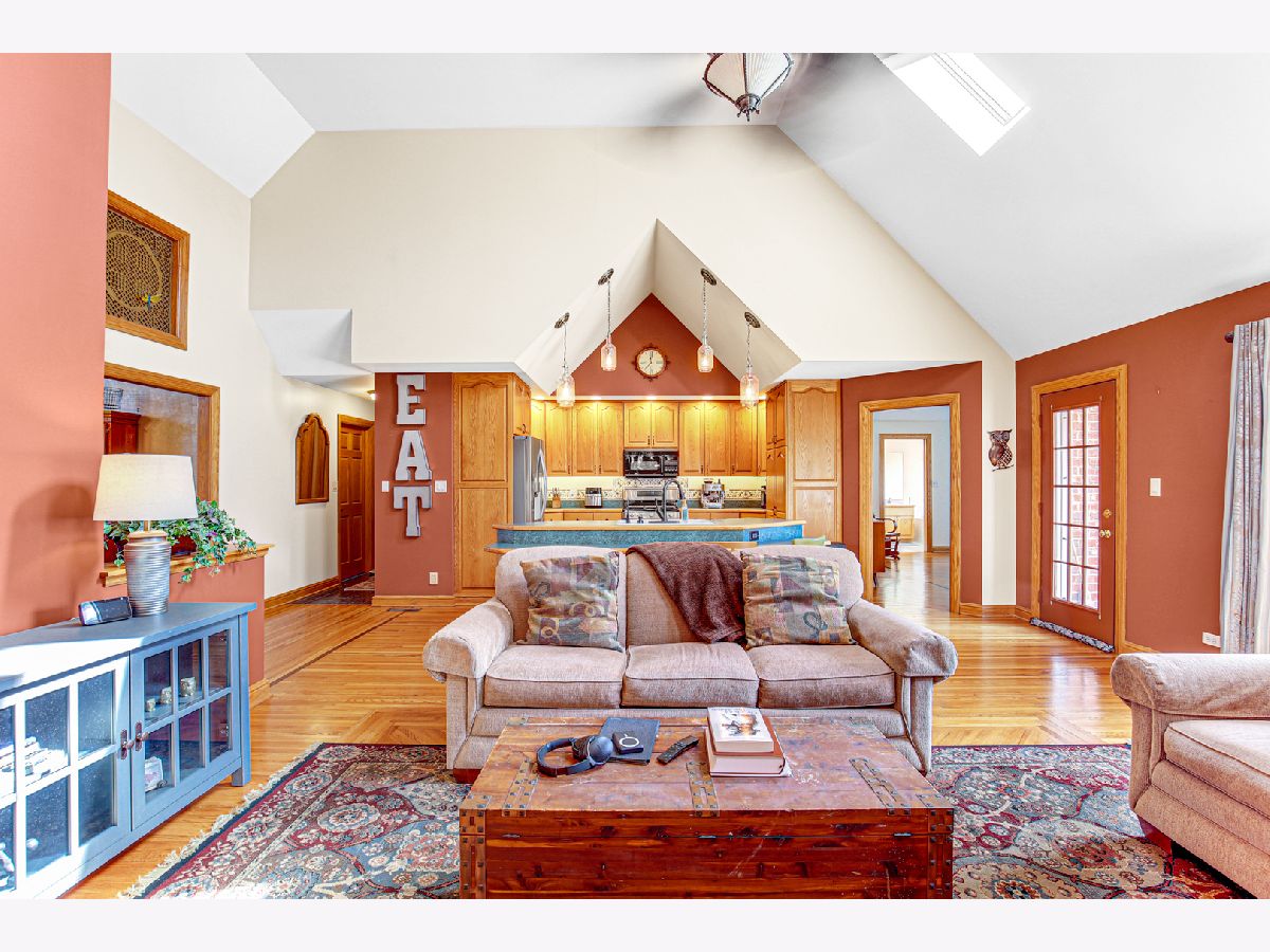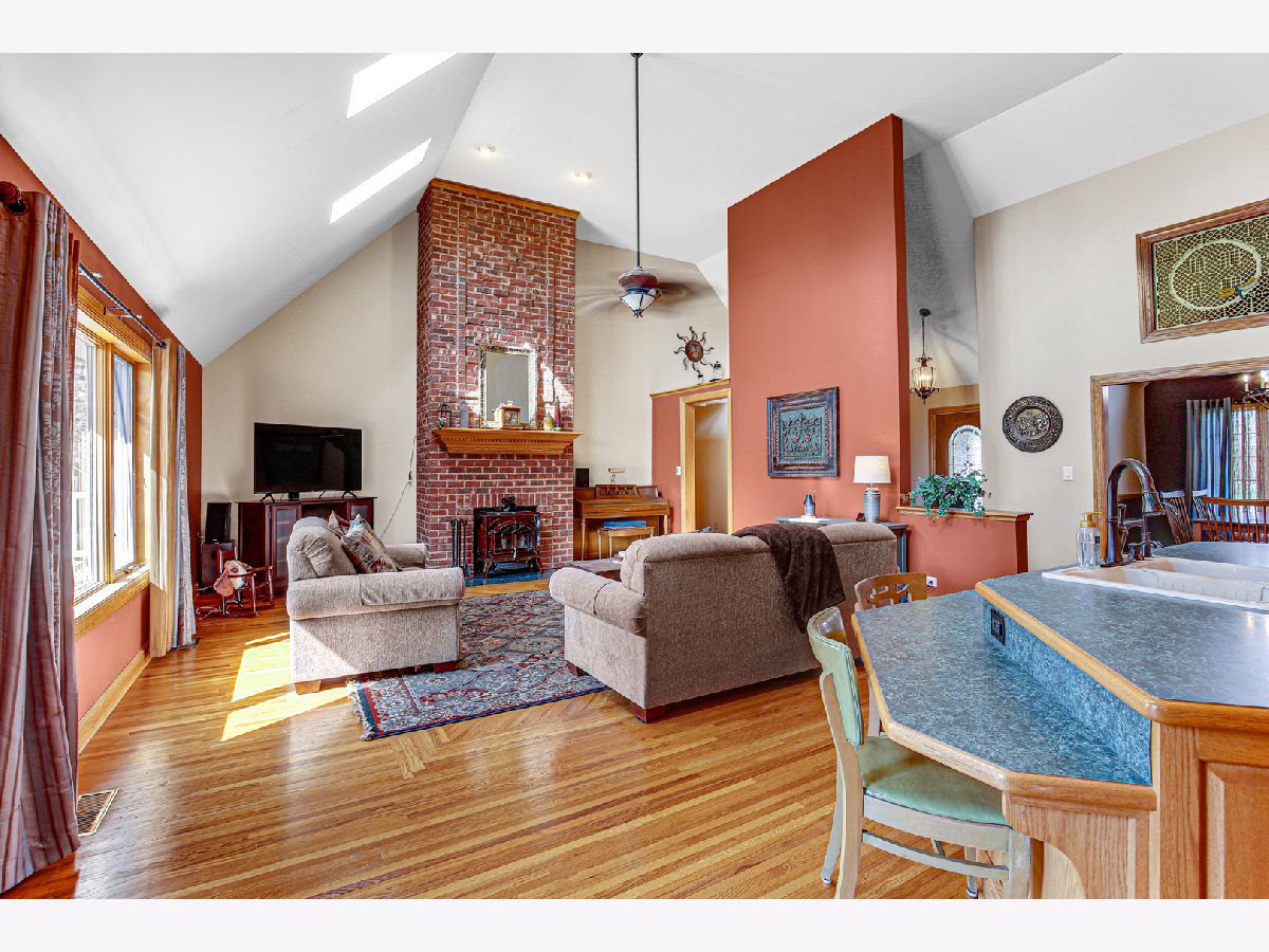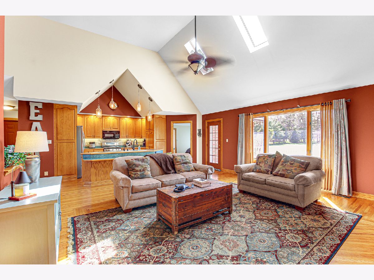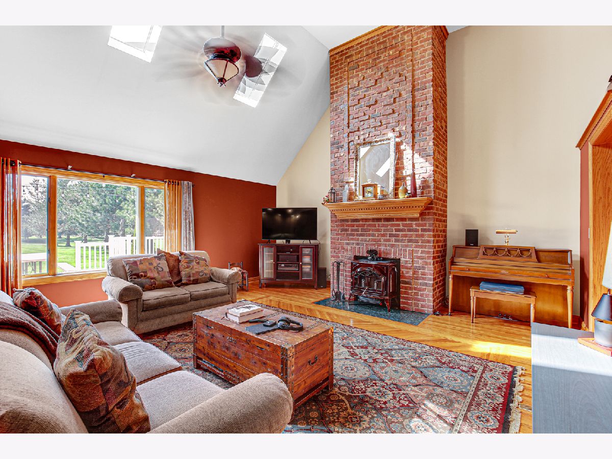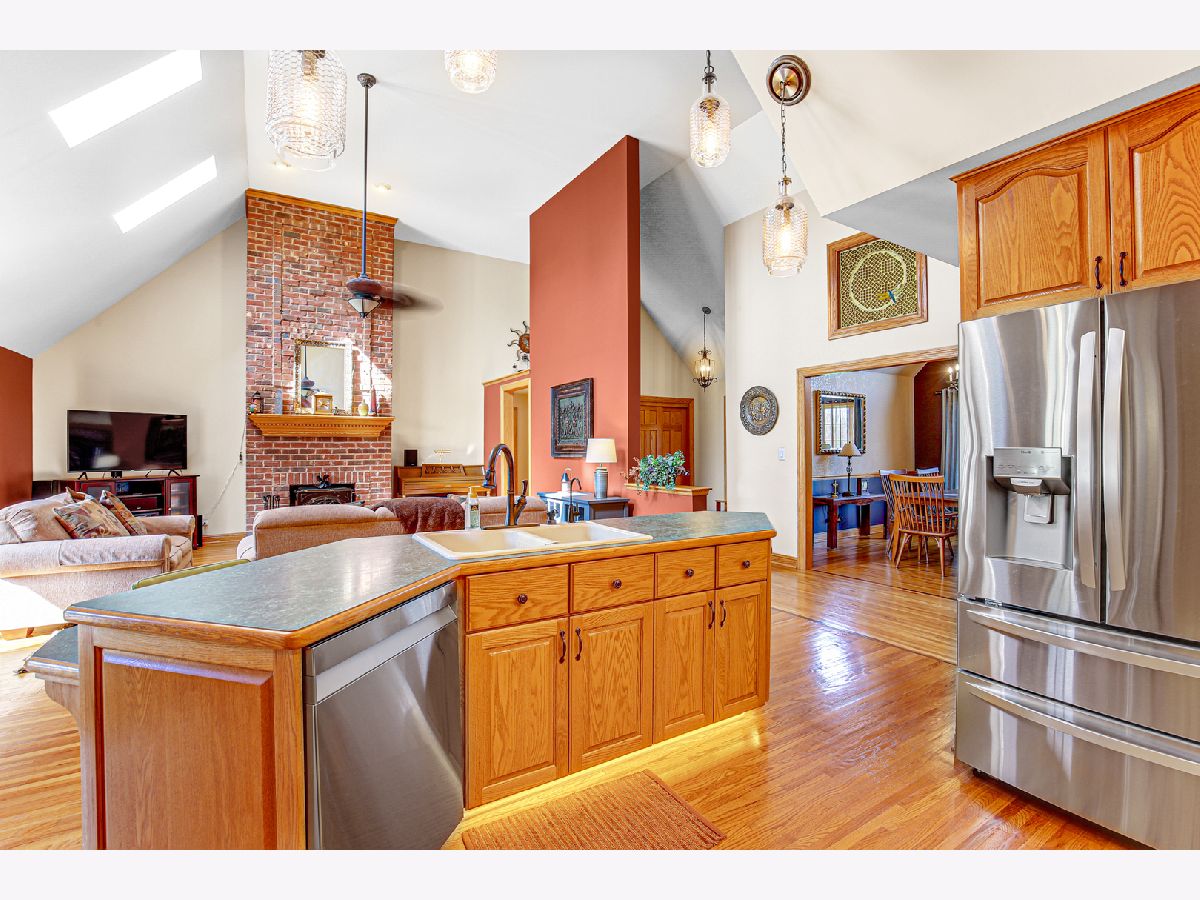Come and see this lovely custom-built home, with a very inviting full glass arched panel door welcoming you into a lovely entry way. This beautiful home features Anderson windows throughout, four skylights, 3/4" Oak hardwood floors (except washrooms), over a double ply sub floor. (2 x 6 not 2 x 4 exterior framing). There are 9-foot ceilings throughout. Custom 42" oak cabinetry in the kitchen has plenty of storage, under cabinet lighting and toe kick lighting. All appliances are LG and are only 2 years old. There are cathedral ceilings in the kitchen and in the great room areas. There is a 15-foot floor to ceiling brick fireplace with a wood burning stove. The house has 3 spacious bedrooms. The master bedroom with a tray ceiling and customized hardwood flooring has a large walk-in closet and a bathroom with a double vanity, whirlpool tub and separate shower. Hall/main bathroom also has a full bath/shower combination with a sky light. The additional bedrooms also feature tray ceilings, window treatments with an extra-large closet in bedroom 2, and a walk-in closet in bedroom 3. All interior doors are 6-panel solid core. The house has central air and vac systems. The basement is accessed by an extra wide staircase and also has 9-foot ceilings, plus 4 windows and one egress window. Basement has ejector pump and sump pump for washer and dryer and is plumbed for a future bathroom. High energy furnace is rated at 95 per cent. Water heater is approx. 15 years, runs well. The well pump was replaced 5/2024, and there is a central vacuum system. There is a heated 2.5 car garage, with built-in storage, an additional service door and pull-down access to a lighted attic (other access for attic is in bedroom 3); it has a side door to back walk area. The roof is 10-11 years old. The large back deck made of composite material can be accessed from the great room, and is perfect for entertaining, with a lovely Edison light feature, and overlooks a breathtaking back yard with endless possibilities. This lovely property can be your forever home. Make plans to view it today.