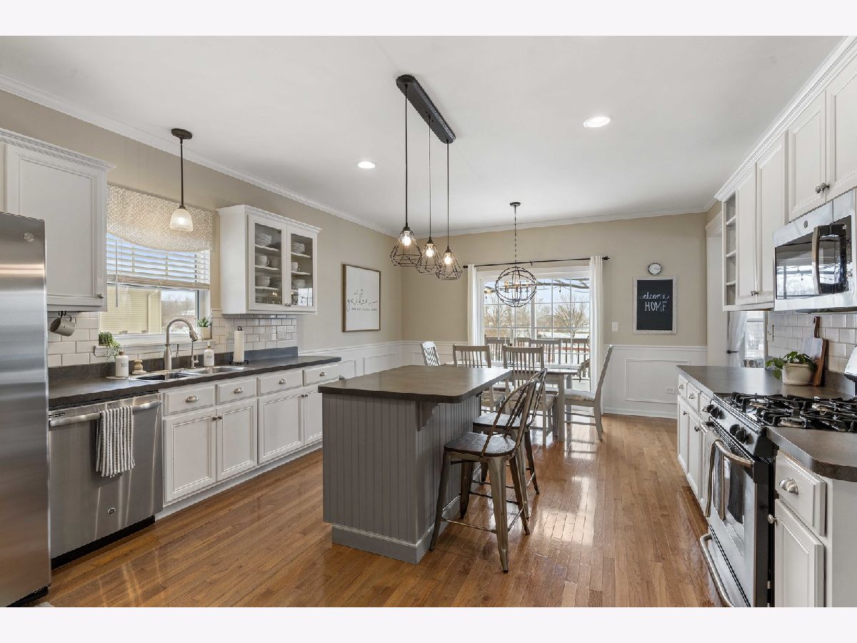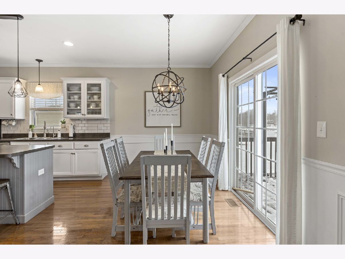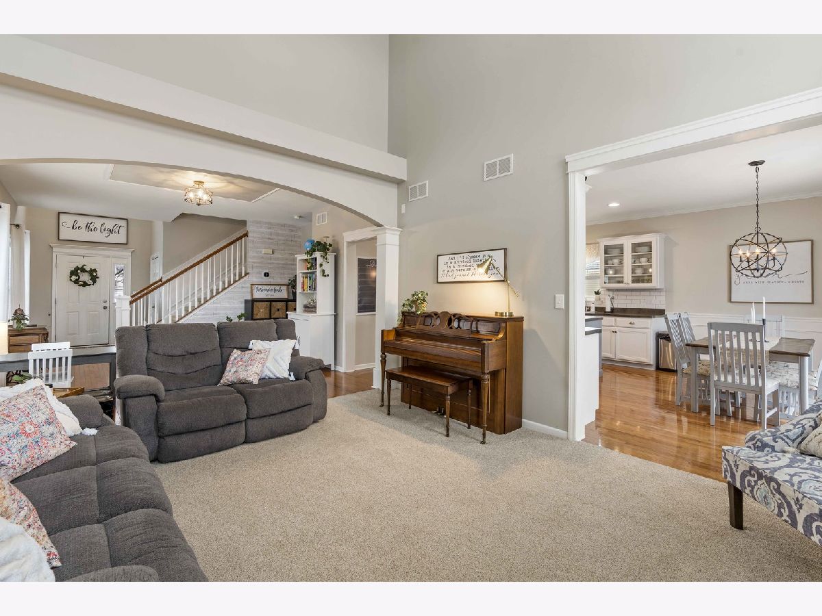 Don't miss this beautiful two-story, two car garage, upgraded home that shows like a model. Enter into this amazing home to the main level that boasts 9' ceilings and white colonial trim, molding, and six panel doors throughout the home. Walk onto the rich hardwood floors in foyer and into the spacious dining room (currently used as a kid's home learning classroom) and into the bright and sunlit kitchen. This large and stylish kitchen its updated with white cabinetry, neutral countertops, subway tile backsplash, SS appliances, island, white wainscoting, recessed lighting, and eating area that looks out onto the private deck and yard. SS Refrigerator and microwave are NEW. Elegant great room with vaulted ceiling along with large windows bringing the outdoors in, especially with beautiful scenery of the backyard and framed by a dramatic arched doorway. Charming guest bathroom and clean, tidy laundry room also on this level. The second level offers a stylish, spacious, & sunny master bedroom with tray ceiling, master bathroom including whirlpool tu and separate shower. There are also two more roomy sharp bedrooms that share an adorable full bathroom. There is a convenient and cozy loft that can be used as an office, crafting area, or create your perfect space. The finished basement has a wonderful recreation room that can be designed to whatever your needs and wants may be. Currently this 8' ceiling vast room is used as an entertainment, workout, and play space. The separate office space and two large storage spaces are unexpected bonuses. Head out to the back deck including pergola with views of the open rural green space and enjoy your private yard with shed, garden beds, and play set ready for outdoor activities. This gorgeous home has everything you need and want. Come see it before it's SOLD.