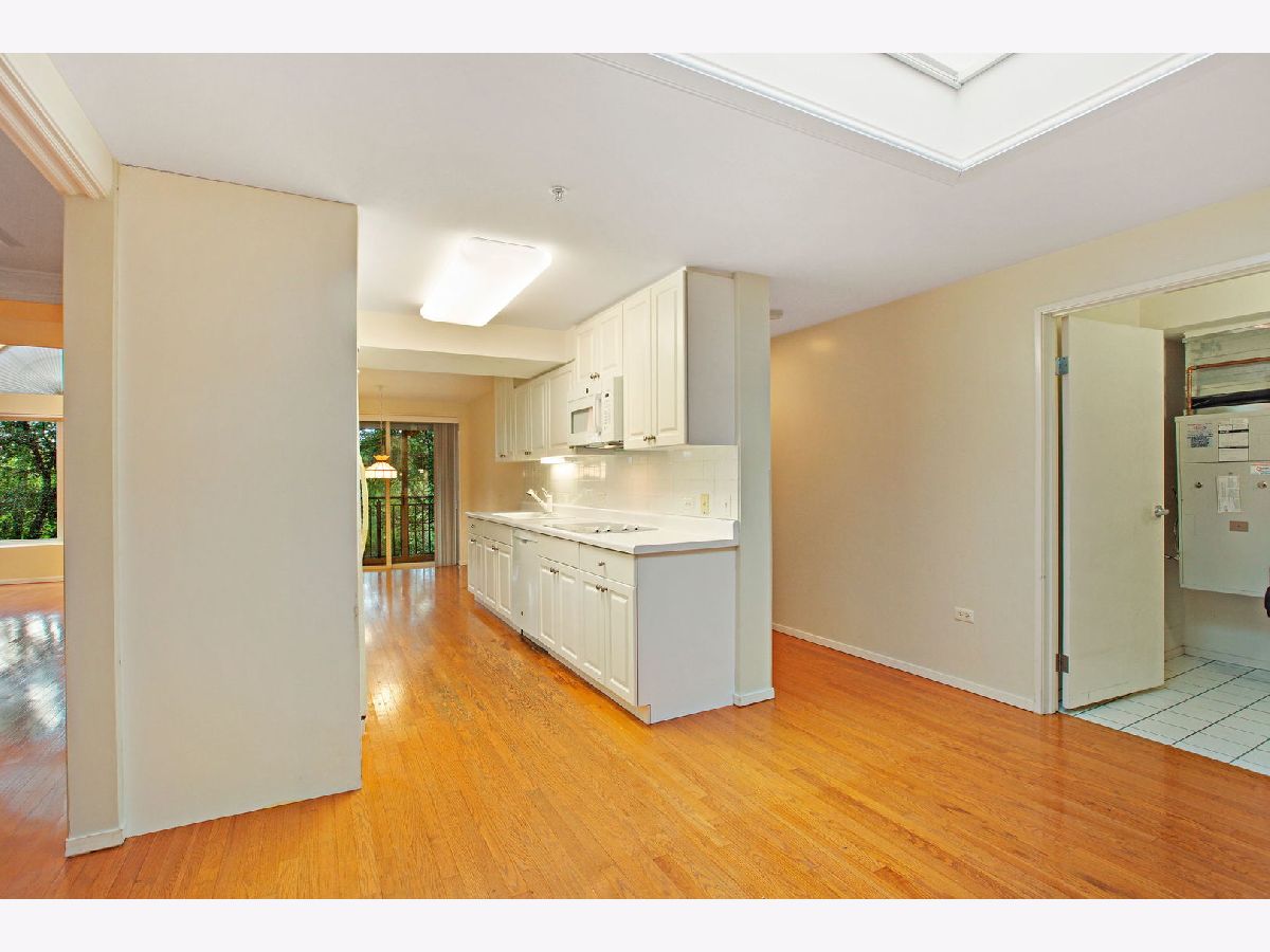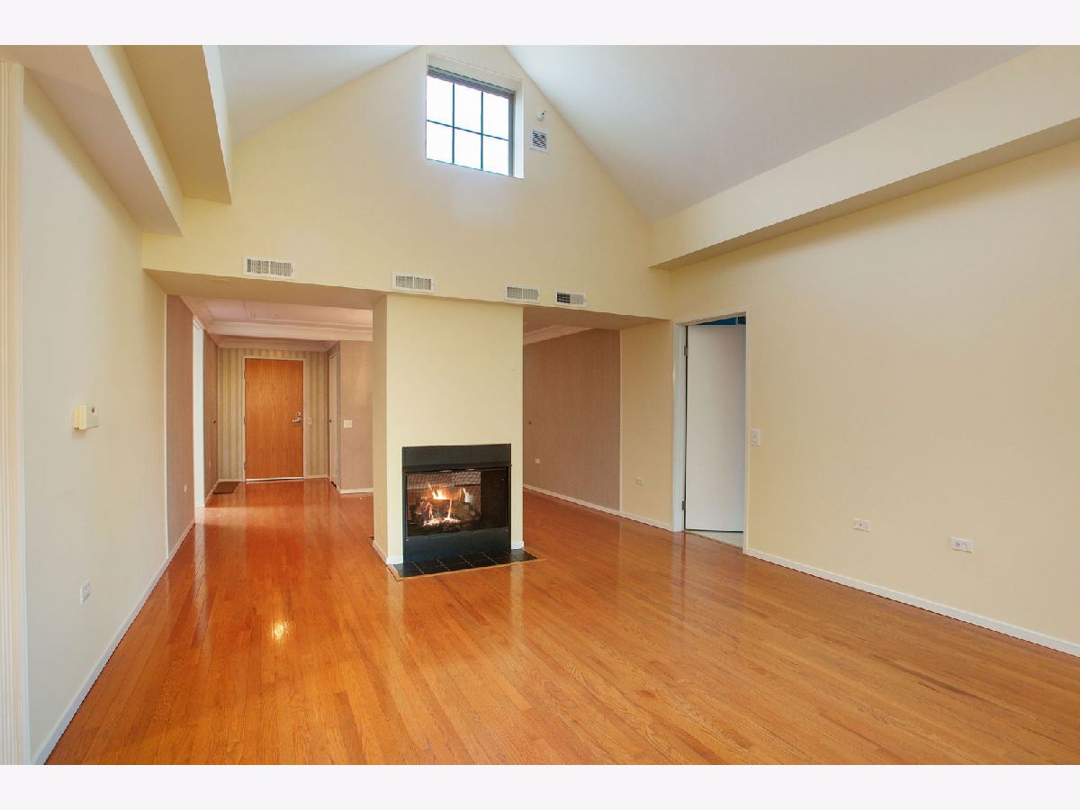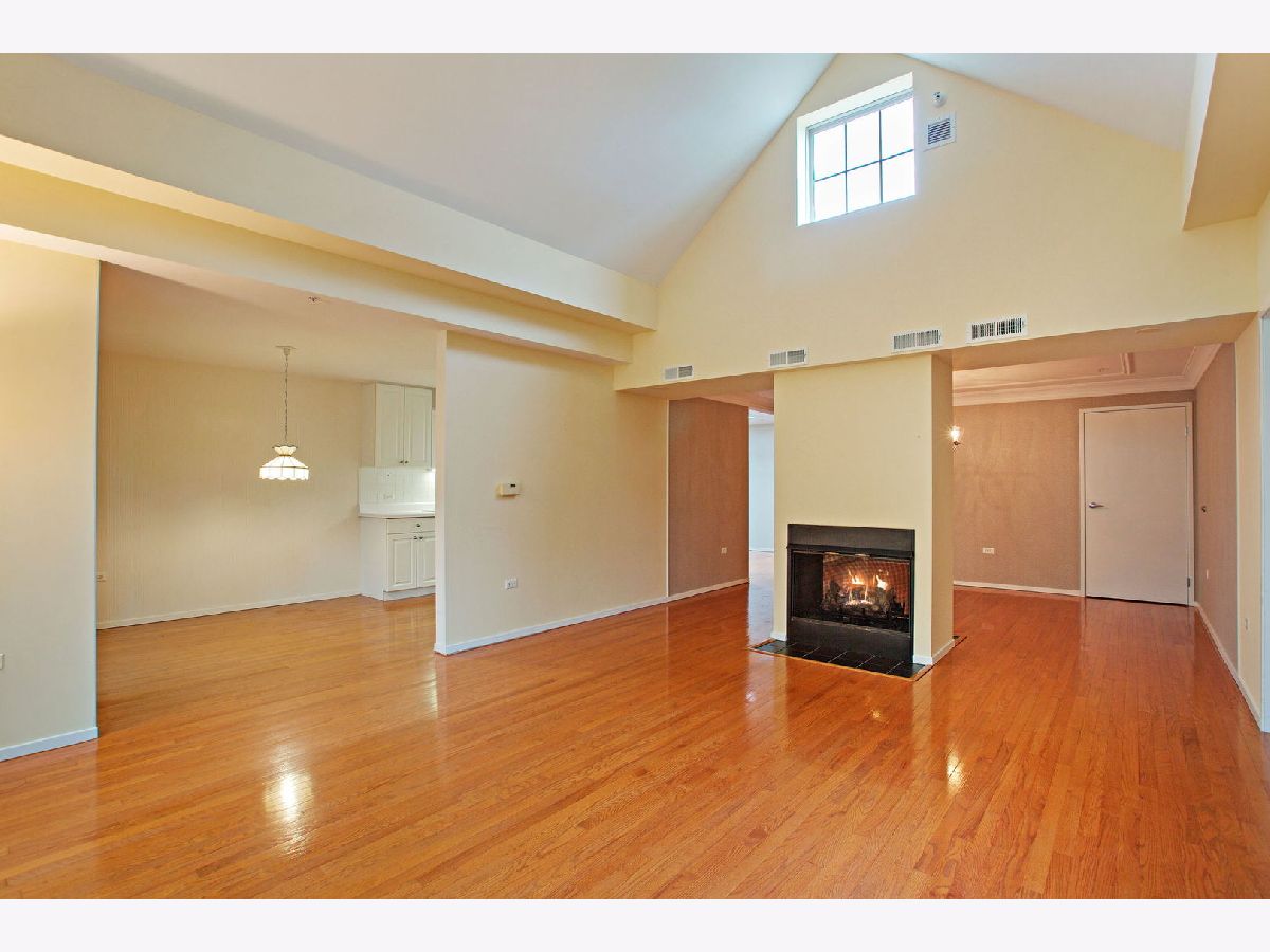 Stylish and tasteful rare top floor condo unit at "The Cloisters" located in the best walk-to-everything area. Unit has dramatic cathedral ceilings with a large architectural fanlight window in the living room overlooking the courtyard. Custom cove molding throughout. Entry foyer has a walk in closet. Leading to the dining-living room with a double-sided gas log fireplace. The primary bedroom suite has a whirlpool tub, separate shower, double sinks and sky light. Hallway walk-in closet & wall of closets. The fully applianced galley kitchen has a breakfast table area with a walk out enclosed terrace with a great view and natural lighting. The good sized family room also has a large sky light! 2nd bedroom has a hall bathroom with sky light. Bonus in unit laundry room with washer & dryer. The heating is radiant with individual controls. Amenities include an indoor pool, exercise machines and hospitality room. Unit comes with 2 indoor heated garage spaces (10 & 11) & 2 storage areas, one in garage #26 & one on 3rd floor. Blocks to Metra, library and 1/2 block to grocery store and many local businesses.