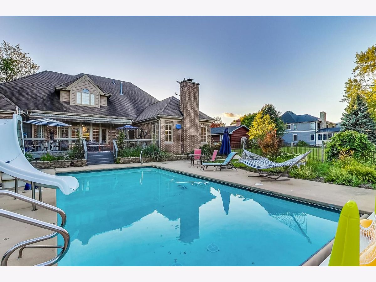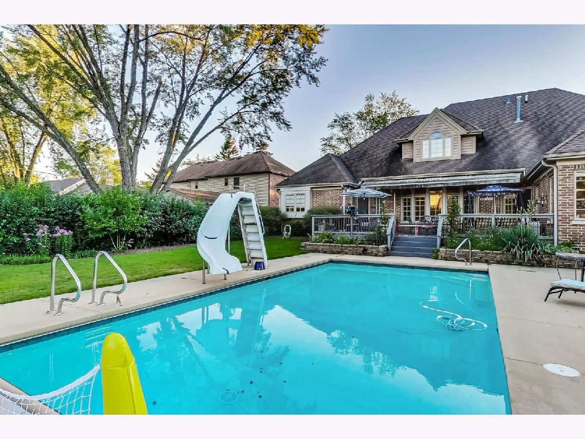 Come and relax in this beautiful, spacious custom brick home on 1/2 acre lot with an inground pool. Just spruced up this home with fresh paint throughout the first floor. Walk into the impressive 2 story foyer with a curved staircase. Don't miss the numerous architectural details t/o and in the gracious living room and dining room. The first-floor master bedroom has an attached sitting room/library, walk-in closets, master bath with a separate multiple spray shower, soaker tub, separate sinks, and a door leading to the deck/pool area. There is also a first-floor office/bedroom with french doors and a new hardwood floor. Open gourmet kitchen with high-end appliances including a Viking stove, granite counters, white and maple cabinets, stone floors, eating area with a vaulted ceiling, etc. The sunny family room has a stone fireplace and view of the pool. Three more good sized bedrooms with vaulted/trayed ceilings are upstairs along with a loft/study area. Professionally finished basement has plenty of space and includes an exercise room, entertainment area, built-in bar, game room, and a full bathroom. Three car tandem garage. Professionally landscaped. Great neighborhood and schools. Check out the 3D tour