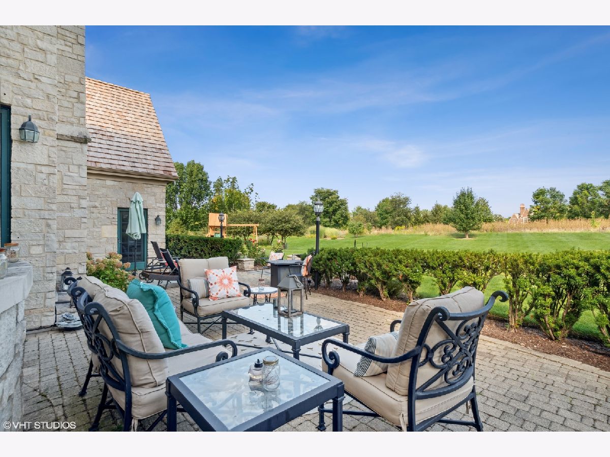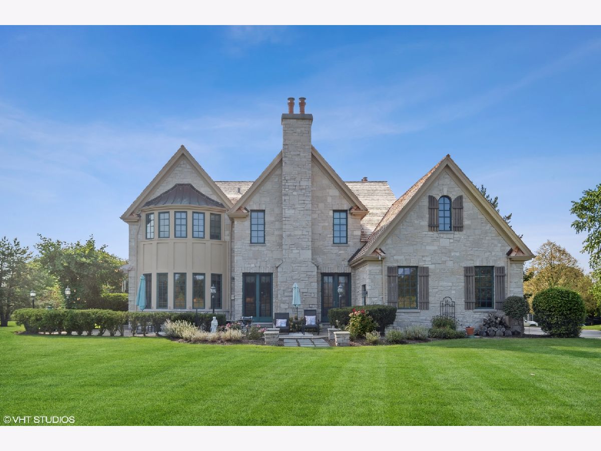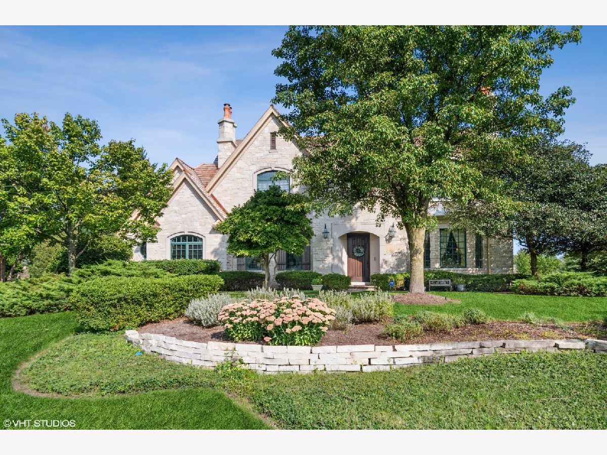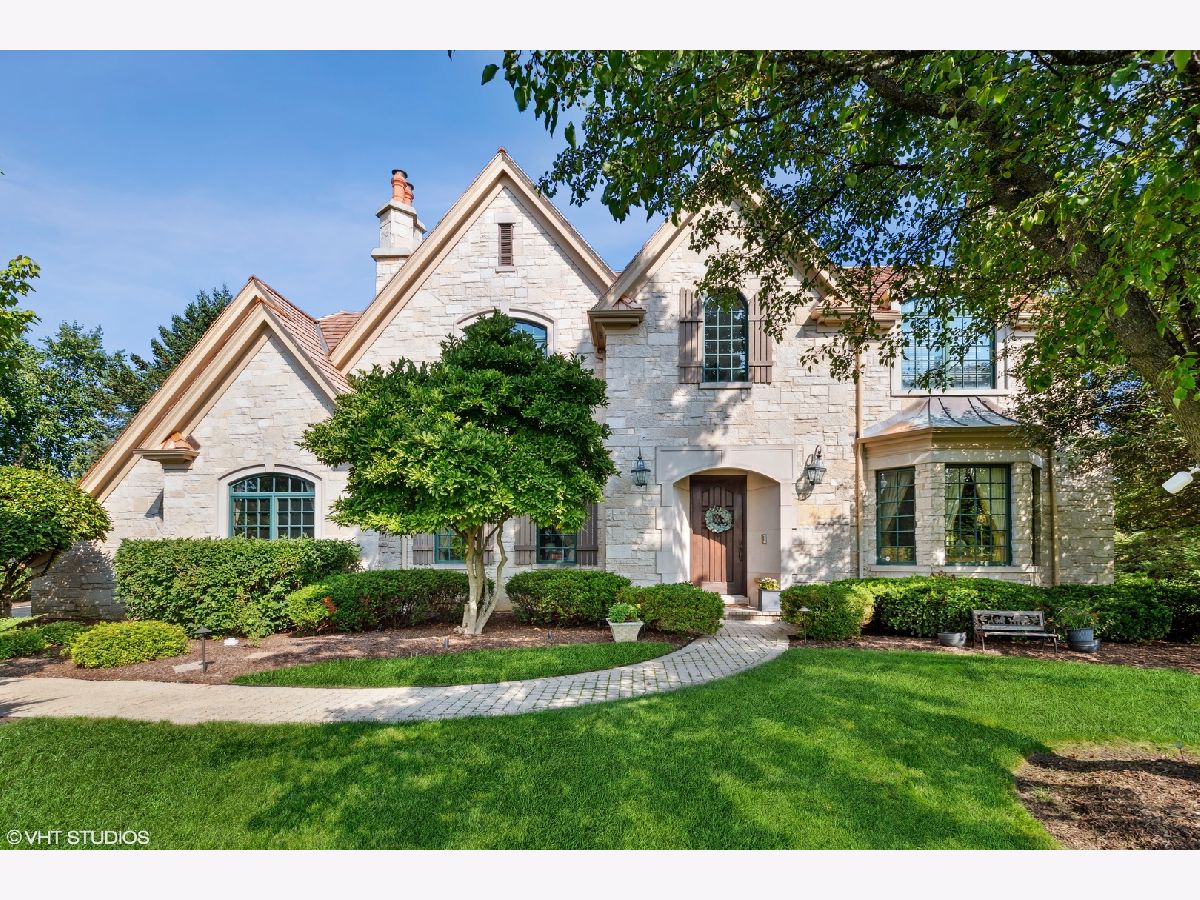 Classic stone French country residence on prime interior lot overlooking conservancy in Conway Farms. Features Brazilian cherry hardwood floors, 10 foot ceilings, 5 fireplaces, detailed millwork, and stunning open floor plan with floating bridal staircase. Special amenities include: formal living & dining rooms; paneled library with built-in bookshelves; family room with coffered ceiling and built-in wall unit; eat-in gourmet kitchen with center island and high-end stainless appliances; and butler's pantry. Second floor has an impressive primary bedroom with 2 large walk-in closets & luxurious private bath, and 3 additional bedrooms with 2 additional baths. Phenomenal lower level includes a recreation room with wet bar, playroom, office, and full bath. Gorgeous private backyard features a paver and bluestone patio that overlooks the Open Lands. Brand new cedar shake roof in 2022, freshly painted interior, and so much more!