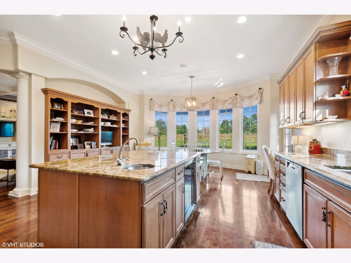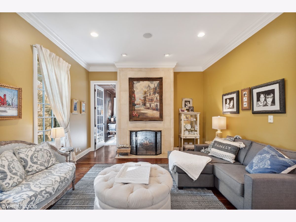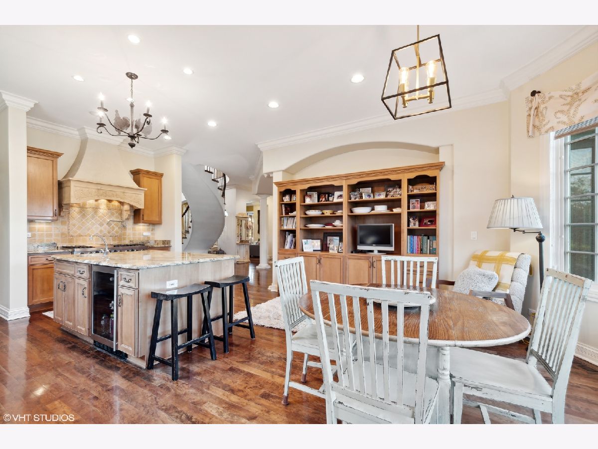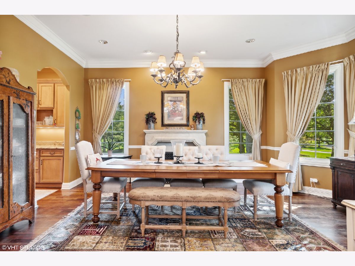 Classic stone French country residence on prime interior lot overlooking conservancy in Conway Farms. Features Brazilian cherry hardwood floors, 10 foot ceilings, 5 fireplaces, detailed millwork, and stunning open floor plan with floating bridal staircase. Special amenities include: formal living & dining rooms; paneled library with built-in bookshelves; family room with coffered ceiling and built-in wall unit; eat-in gourmet kitchen with center island and high-end stainless appliances; and butler's pantry. Second floor has an impressive primary bedroom with 2 large walk-in closets & luxurious private bath, and 3 additional bedrooms with 2 additional baths. Phenomenal lower level includes a recreation room with wet bar, playroom, office, and full bath. Gorgeous private backyard features a paver and bluestone patio that overlooks the Open Lands. Brand new cedar shake roof in 2022, freshly painted interior, and so much more!