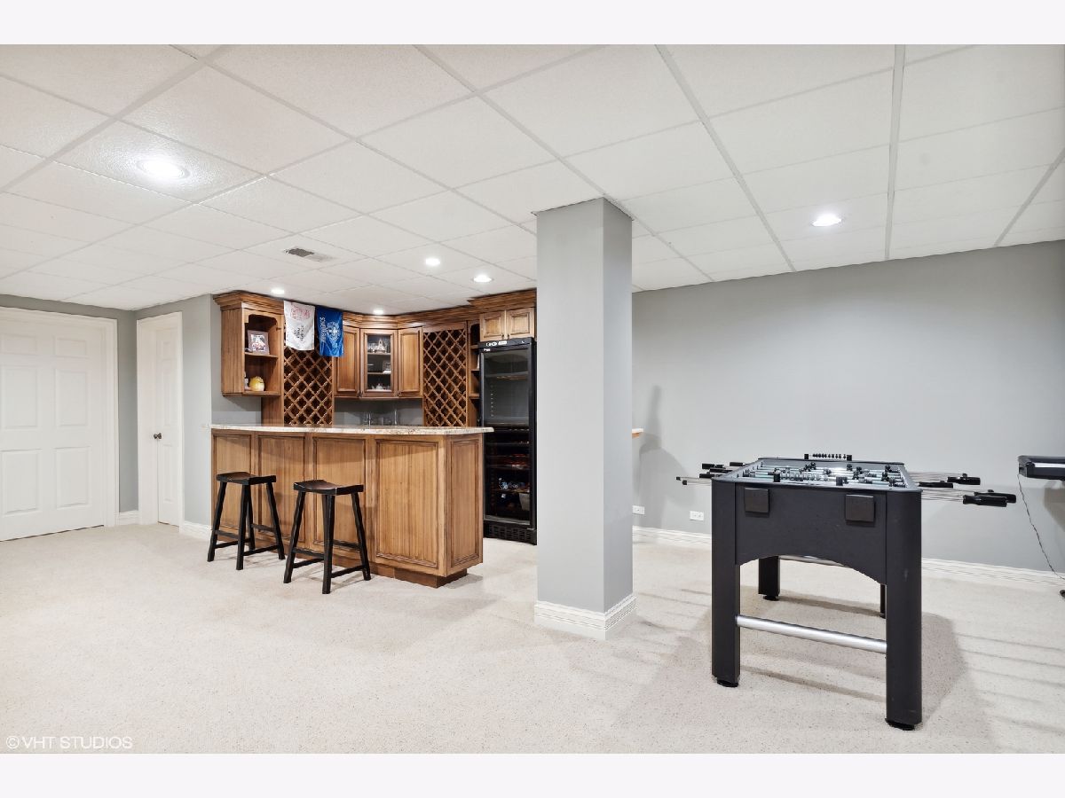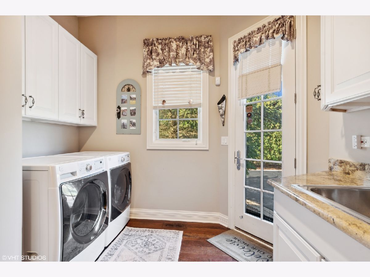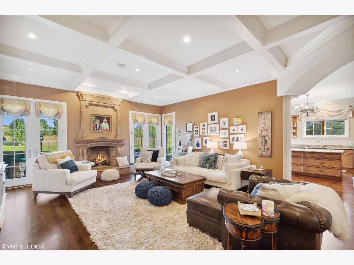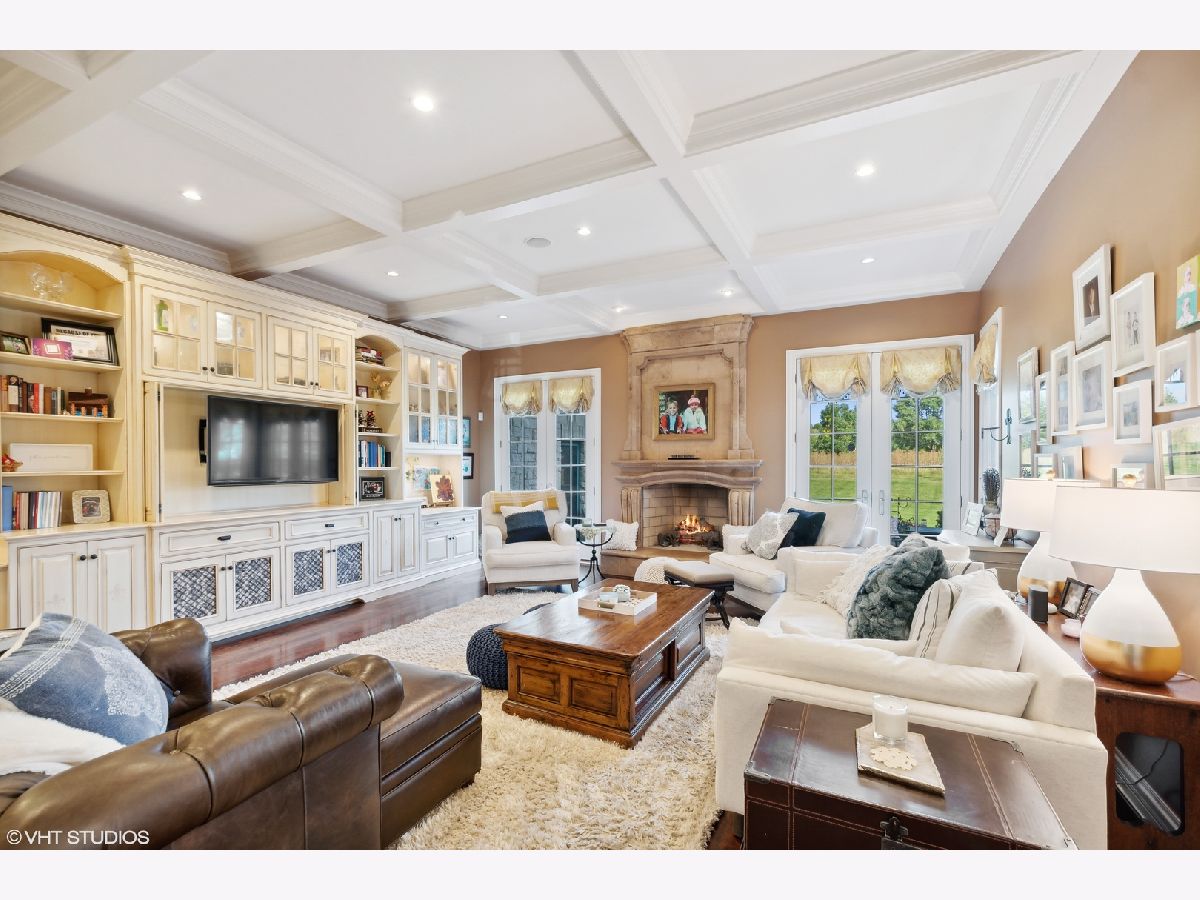 Classic stone French country residence on prime interior lot overlooking conservancy in Conway Farms. Features Brazilian cherry hardwood floors, 10 foot ceilings, 5 fireplaces, detailed millwork, and stunning open floor plan with floating bridal staircase. Special amenities include: formal living & dining rooms; paneled library with built-in bookshelves; family room with coffered ceiling and built-in wall unit; eat-in gourmet kitchen with center island and high-end stainless appliances; and butler's pantry. Second floor has an impressive primary bedroom with 2 large walk-in closets & luxurious private bath, and 3 additional bedrooms with 2 additional baths. Phenomenal lower level includes a recreation room with wet bar, playroom, office, and full bath. Gorgeous private backyard features a paver and bluestone patio that overlooks the Open Lands. Brand new cedar shake roof in 2022, freshly painted interior, and so much more!