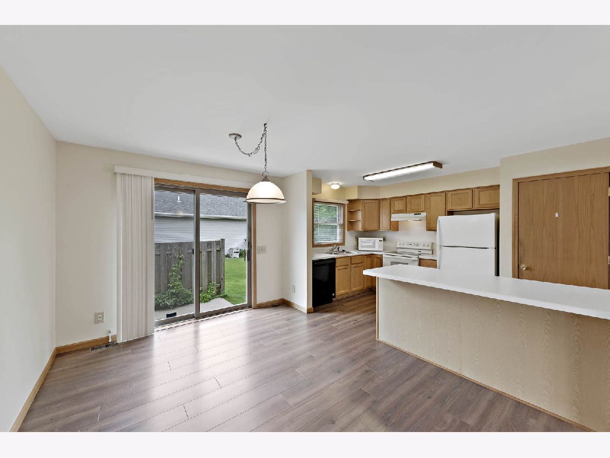 Nature lovers will love this modest sized home! Mostly new flooring in this 2 bedroom 2 bathroom 1 story home with 2 car attached home! Perfect for those downsizing or just starting out! The layout invites you to bring your furniture and stay! Walk through the front door and you'll notice the spacious living room with lots of wall space to choose furniture placement. The eat in kitchen has pull out drawers, pantry and a lazy susan. Also, sliding doors to a private patio perfect for grilling out for small gatherings for family or friends or just relaxing on cool summer evenings. Down the hallway brings you to the bathroom and 2 bedrooms. Both bedrooms have walk in closets! The master bedroom has a master bathroom with an oversized shower and double vanity. Brand new flooring in living room, hallway, kitchen & utility room. Other updates include new furnace & water heater 10/18, new dishwasher approx. 2016, new roof in 2011. Real estate is based on location, location, location and this is one of the only homes of the 45 in the development to back up to woods and a creek and have a view of some wildlife! 2 blocks from the mall and Movies 10 for shops and other conveniences like Switch It Up Gaming, Lenscrafters and Kansai Japanese Restaurant. Nearby Rt 50 has restaurants and other shopping places such as Tuccis Italian Restaurant, Chipotle, Panera's and Red Lobster plus Target, Barnes & Noble, FCA Flooring, Old Navy, Blains Farm & Fleet and Carpet Weavers Flooring. Entertainment nearby for friends, kids or grandkids include Hero City Adventure Park with laser tag, bumper cars and virtual reality games. Also, Adventure Commons with indoor football, volleyball, soccer and basketball. And outside there's mini golf, batting cages and more! Also nearby is I-57 exit 315 to commute to Chicago for family, work, sporting events, museums, musicals and more in approximately an hour! You'll love the location within minutes to conveniences yet you'll feel like you are out of town town! On the east part of Bradley/Bourbonnais area and close to Grant Park and Momence. Ask for 1 year AHS Home Warranty. Start Packin'!