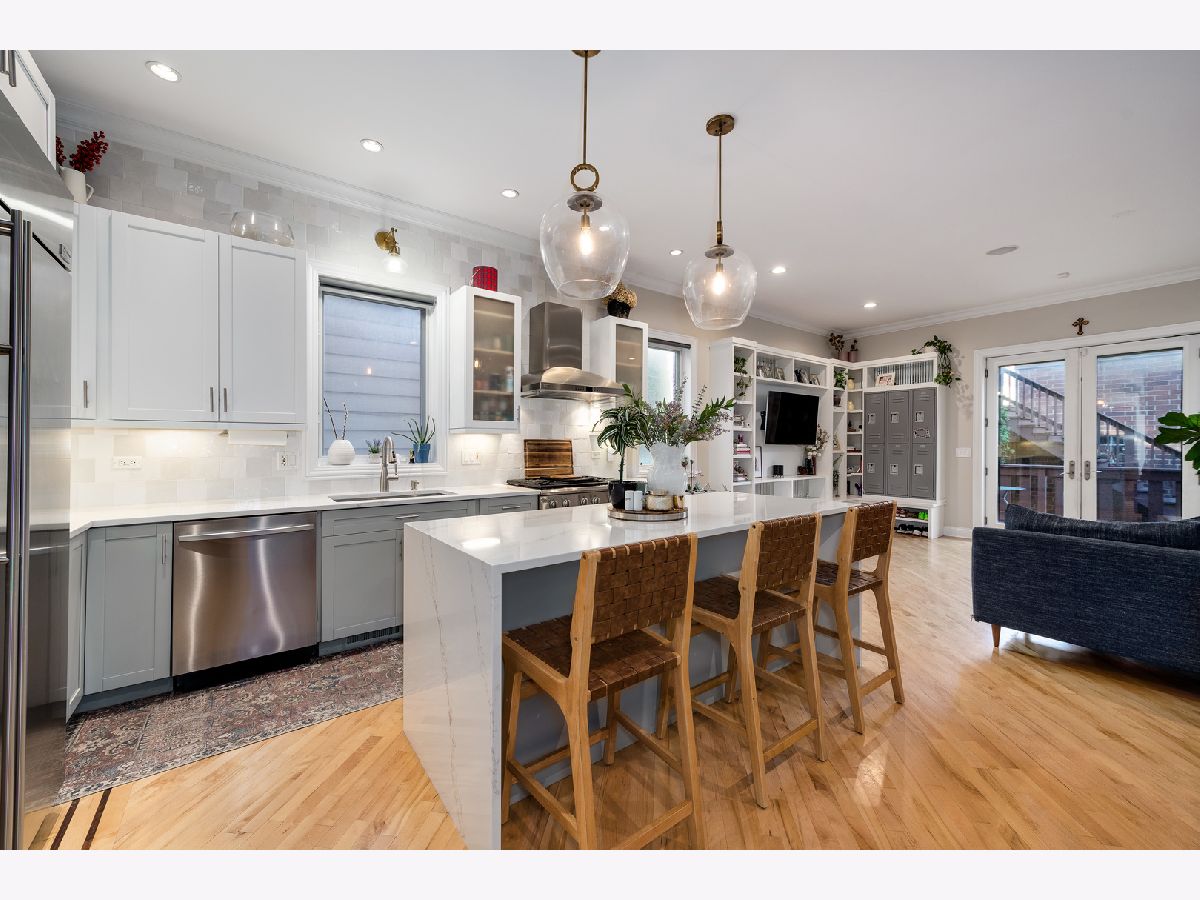 Discover the pinnacle of contemporary living in Chicago's desirable Ukrainian Village at 1627 W Huron St. This new listing, a stunning full masonry home with a striking limestone front, offers an open floor plan and a modern, dramatic staircase, seamlessly combining elegance with functionality. The heart of this home is a beautifully remodeled kitchen featuring high-end finishes such as waterfall quartz countertops, ideal for both casual family meals and entertaining guests. Spanning approximately 4,000 sqft, this residence boasts 4 spacious bedrooms and 3.5 bathrooms, including a large master suite that promises a private retreat with its luxurious amenities. Hardwood floors flow throughout the home, leading to multiple outdoor spaces. The crowning jewel is a rooftop deck complete with a pergola and breathtaking skyline views, perfect for enjoying Chicago's stunning cityscape from the comfort of your home. The property also includes a two-car garage with an additional rooftop deck and a low-maintenance AstroTurf backyard. Situated in a vibrant neighborhood known for its rich history and sense of community, your new home is just moments away from local eateries, boutiques, and parks, making it an ideal choice for families looking for a blend of style and convenience. This home is more than just a dwelling; it's a lifestyle. Don't miss out on making it yours. Schedule a viewing today and step into your future!
