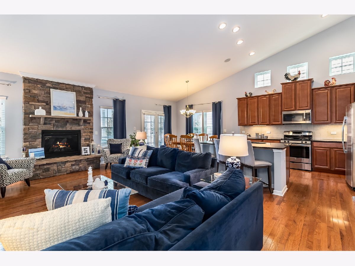 LIVE ON ONE LEVEL! LOVELY RANCH HOME IN PRESTIGIOUS STONEGATE WEST COMMUNITY! ONLY 7 YRS YOUNG AND OFFERING AN ARRAY OF CUSTOM UPGRADES! LIGHT AND BRIGHT IN TODAYS GREIGE TONES! FABULOUS HARDWOOD FLOORING IN ENTRY, LIVING / GREAT ROOM, KITCHEN AND MASTER SUITE. BRENTWOOD MODEL BOASTS LARGE OPEN FLOOR PLAN WITH VAULTED CEILINGS. GREAT ROOM / LIVING ROOM FEATURING COZY STONE FIREPLACE. KITCHEN HAS UPGRADED KITCHEN 42 " CABINETRY & GRANITE COUNTERTOPS FEATURING UNDER CABINET LIGHTING & STAINLESS APPLIANCES. LARGE KITCHEN ISLAND WITH MATCHING STOOLS. RECESSED CAN LIGHTING IN LIVING ROOM AND KITCHEN! CUSTOM LIGHTING FIXTURES & WINDOW TREATMENTS. ENJOY PEACEFUL RELAXATION ON YOUR PRIVATE SCREENED IN PORCH WITH NO NEIGHBOR BEHIND! MASTER SUITE WITH HUGE WALK IN CLOSET AND LARGE MASTER BATH WITH SOAKER TUB AND SEPARATE SHOWER & SEPARATE COMMODE. 2 LARGE BEDROOMS BOTH WITH WALK IN CLOSETS. FRONT BEDROOM CURRENTLY USED AS A DEN / OFFICE. LARGE GUEST POWDER ROOM / HALL BATH BETWEEN BEDROOMS. LAUNDRY ROOM WITH UTILITY SINK AND WASHER AND DRYER. ENORMOUS BASEMENT WAITING YOUR FINISHING TOUCHES IF DESIRED! STORAGE GALORE! PROFESSIONALLY LANDSCAPED WITH IRRIGATION SYSTEM! CONVENIENTLY LOCATED NEAR THE I-88 CORRIDOR AND EXCITING SHOPPING AND DINING DESTINATIONS. A FITNESS ORIENTED PARKSITE, VARIETY OF SOCIAL ACTIVITIES AT THE COMMUNITY CLUBHOUSE AND SWIMMING POOL ARE JUST SOME OF THE REASONS WHY STONEGATE WEST IS THE IDEAL COMMUNITY! * STONEGATE WEST IS AN AGE TARGETD COMMUNITY NOT AGE RESTRICTED. PLEASENOTE "AGENTS AND/OR PERSPECTIVE BUYERS EXPOSED TO COVID 19 OR WITH A COUGH OR FEVER ARE NOT TO ENTER THE HOME UNTIL THEY RECEIVE MEDICAL CLEARANCE."