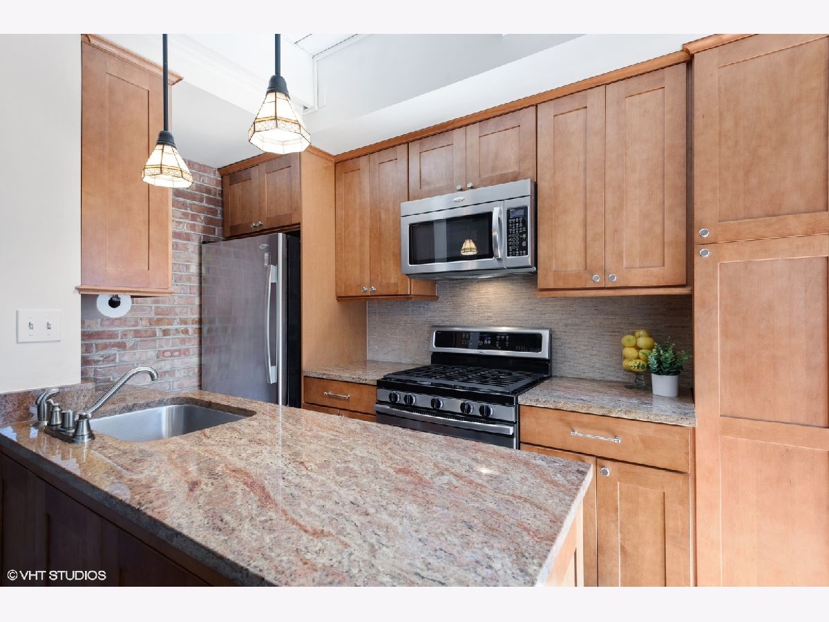 Sunny 2 bed, 1.5 bath townhome in the Old Town Triangle! Stunning exposed brick and hardwood floors throughout this unique 3 level end unit. Enter to find an open floor plan with space for your dining table and a beautiful kitchen with tons of cabinets, granite counters and all stainless steel appliances. Upstairs you'll find 2 spacious bedrooms, a full bath, and hallway skylight letting even more light into the home. Relax on the private fenced in 10'x20' patio or enjoy movie night in the lower level family room with brand new carpet and wood burning fireplace. In-unit laundry also on the lower level. Enjoy everything Lincoln Park and Old Town have to offer with a short walk to Second City, Lincoln Park Zoo, the Sedgwick brown line, North Ave Beach, restaurants, bars, shopping and more!