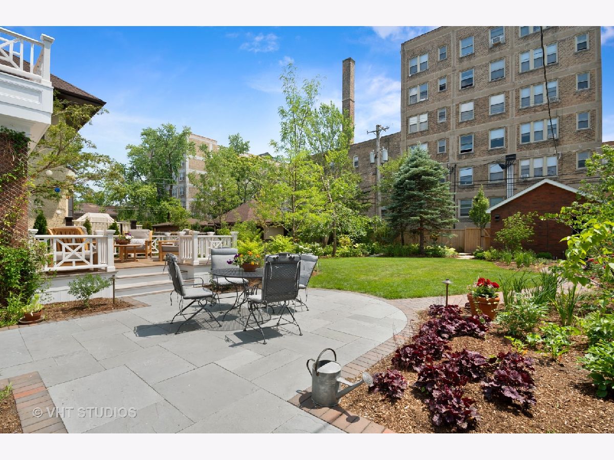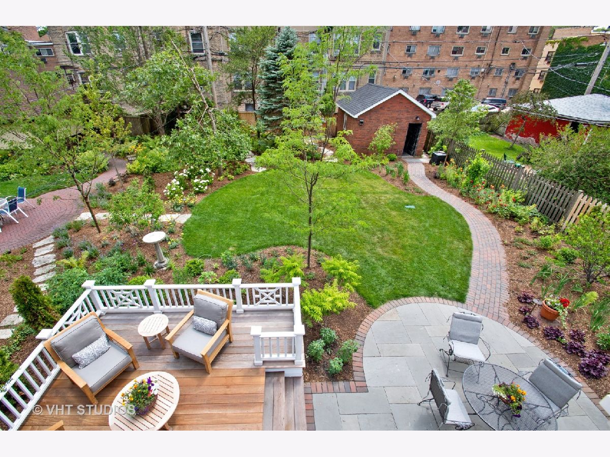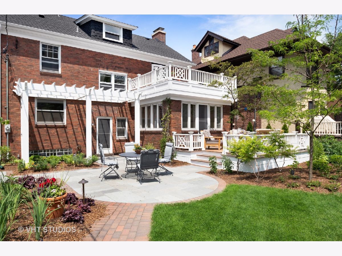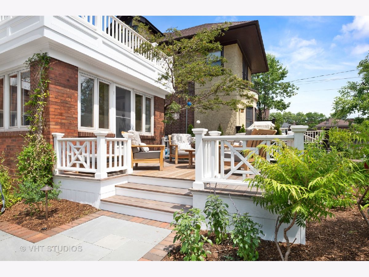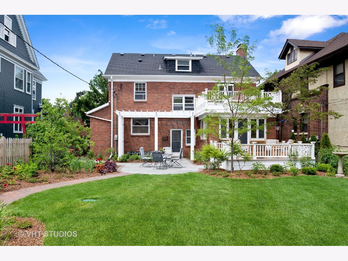 Rarely available center entry Federal/Colonial Revival 3BR 1 1/2 Bath home on double lot. The symmetrical facade of double hung 6 panel windows with shutters and paneled door is a rare example of this style of home in a Chicago lakefront neighborhood. Gorgeous center hallway stairwell with recently refinished oak hw floors and recent neutral painting, white coved ceiling molding and white wood trim throughout. LR w/ gas FP and mantle extends the full length of the home with an added, inviting sun room/den with wall of built in bookcases and french-door leading to absolutely stunning professionally landscaped back yard/private retreat and deck with top-of-the-line Brazilian Ipe wood flooring, blue stone and brick patio, pergola, in-ground lighting and sprinkler system. The other half of the first floor features formal separate dining room, white cabinet kitchen, ss appliances, Avonite counter tops, under-mounted sink, separate eat-in nook with a pair of original built in hutches, all overlooking landscaped side yard. First floor half bath. Second floor features an expansive primary br that extends the entire length of the second floor with double french-doors opening to a stunning balcony also with Brazilian Ipe wood decking and attractive railings, overlooking your private retreat. Two more good sized brs. Oversized bath with white subway tile, tub and separate shower with frameless glass shower door. Third floor is developable with high ceilings and claw foot bathtub and sink already installed, and line for toilet, ready to finish off. Full, dry (Parks flood control system) unfinished basement with glass block windows, also available for further development. Newer, good quality mechanicals-boiler and hot water heater. Serpentine brick sidewalk leads to handsome 1 car brick garage w/ electric door opener.