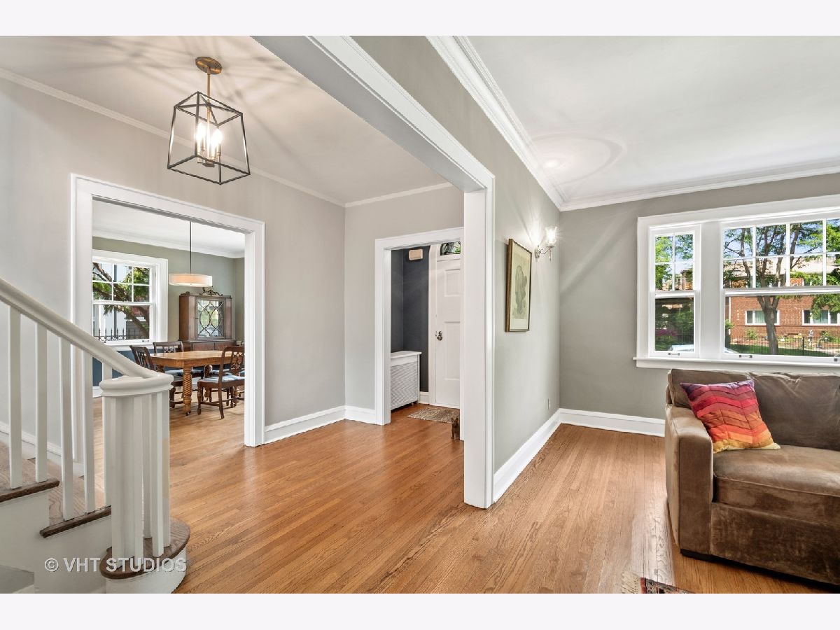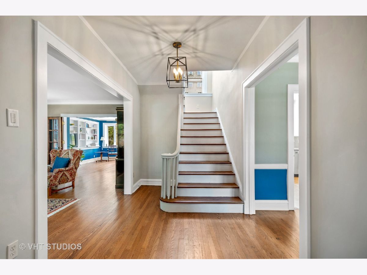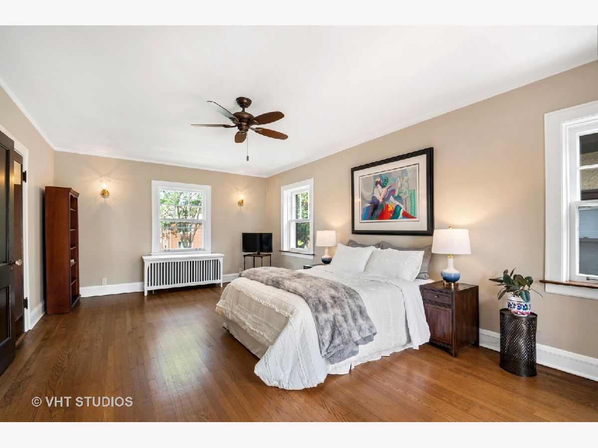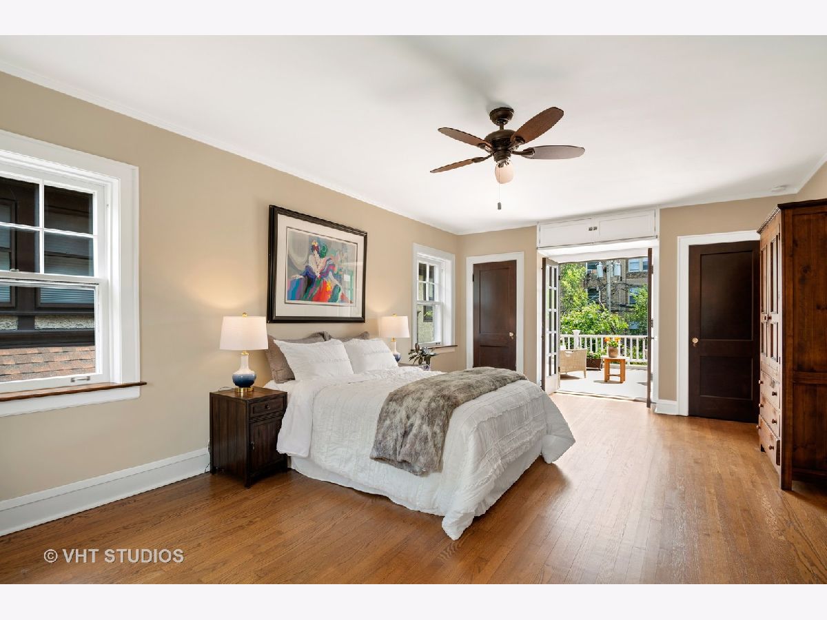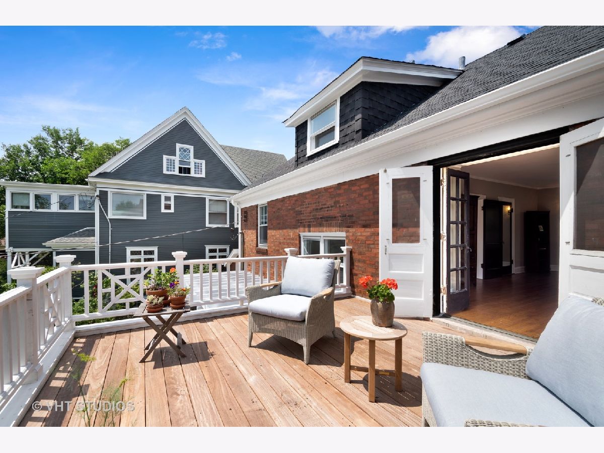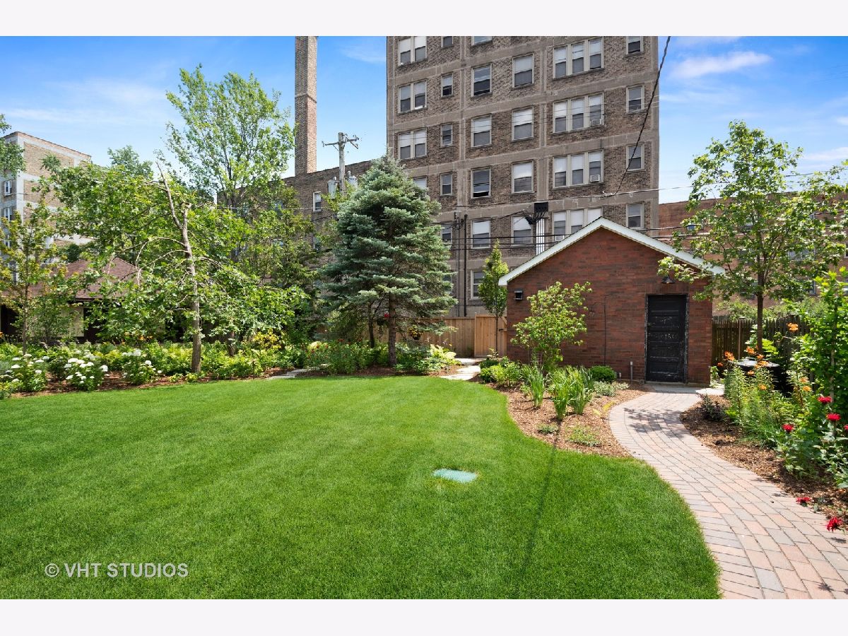 Rarely available center entry Federal/Colonial Revival 3BR 1 1/2 Bath home on double lot. The symmetrical facade of double hung 6 panel windows with shutters and paneled door is a rare example of this style of home in a Chicago lakefront neighborhood. Gorgeous center hallway stairwell with recently refinished oak hw floors and recent neutral painting, white coved ceiling molding and white wood trim throughout. LR w/ gas FP and mantle extends the full length of the home with an added, inviting sun room/den with wall of built in bookcases and french-door leading to absolutely stunning professionally landscaped back yard/private retreat and deck with top-of-the-line Brazilian Ipe wood flooring, blue stone and brick patio, pergola, in-ground lighting and sprinkler system. The other half of the first floor features formal separate dining room, white cabinet kitchen, ss appliances, Avonite counter tops, under-mounted sink, separate eat-in nook with a pair of original built in hutches, all overlooking landscaped side yard. First floor half bath. Second floor features an expansive primary br that extends the entire length of the second floor with double french-doors opening to a stunning balcony also with Brazilian Ipe wood decking and attractive railings, overlooking your private retreat. Two more good sized brs. Oversized bath with white subway tile, tub and separate shower with frameless glass shower door. Third floor is developable with high ceilings and claw foot bathtub and sink already installed, and line for toilet, ready to finish off. Full, dry (Parks flood control system) unfinished basement with glass block windows, also available for further development. Newer, good quality mechanicals-boiler and hot water heater. Serpentine brick sidewalk leads to handsome 1 car brick garage w/ electric door opener.