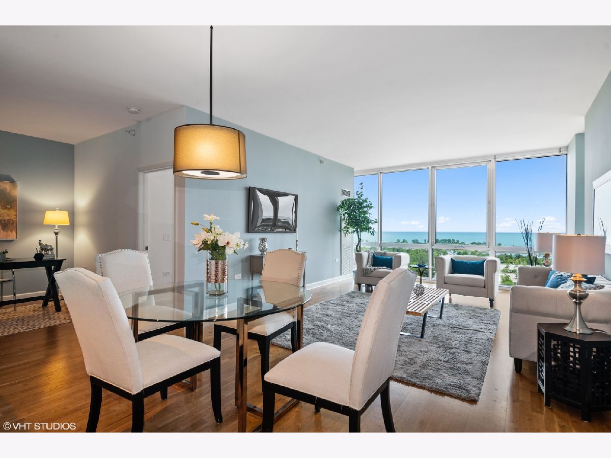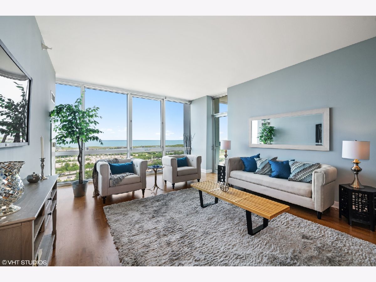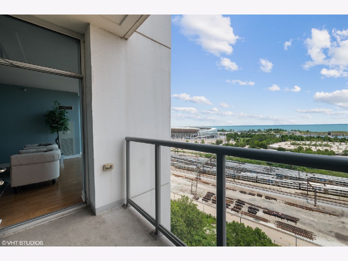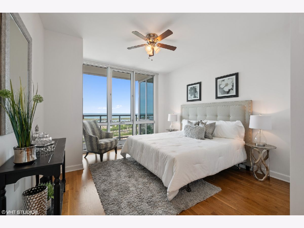 Experience breathtaking views as soon as you enter this serene city home in the Prairie District's premier high rise condo building, Adler Place. Enjoy panoramic views from any room overlooking Museum Campus, Soldier Field, Northerly Island, and Lake Michigan. This expansive 2bd, 2ba layout is perfect for entertaining and offers a convenient bonus den to build your dream at-home workspace. You'll love the Kingsize primary bedroom with walk-in closet and ensuite bath, which includes double vanity and glass enclosed shower. A stylish kitchen with stainless steel appliances including brand new LG french door refrigerator, new Moen spot resistant faucet over 32 in stainless steel sink, custom mosaic thin tile backsplash, 42 inch cabinets, granite counters and breakfast bar complete the heart of this home. Additional amenities include hardwood floors, high ceilings, in-unit washer/dryer and perfect private balcony for enjoying lake views, summer fireworks and grilling. Excellent full amenity building with 24 hour door staff, fitness center, outdoor rooftop pool and sundeck and beautiful party lounge with full kitchen, cozy fireplace and incredible views. Desirable South Loop location: Walk to Lake, Museum Campus, Soldier Field, Grant Park restaurants and shopping. Prime deeded parking #GU1 located on first level available for an additional $30K. Floorplan is shown under "Additional Information". Don't miss this one!