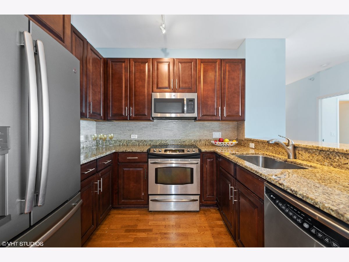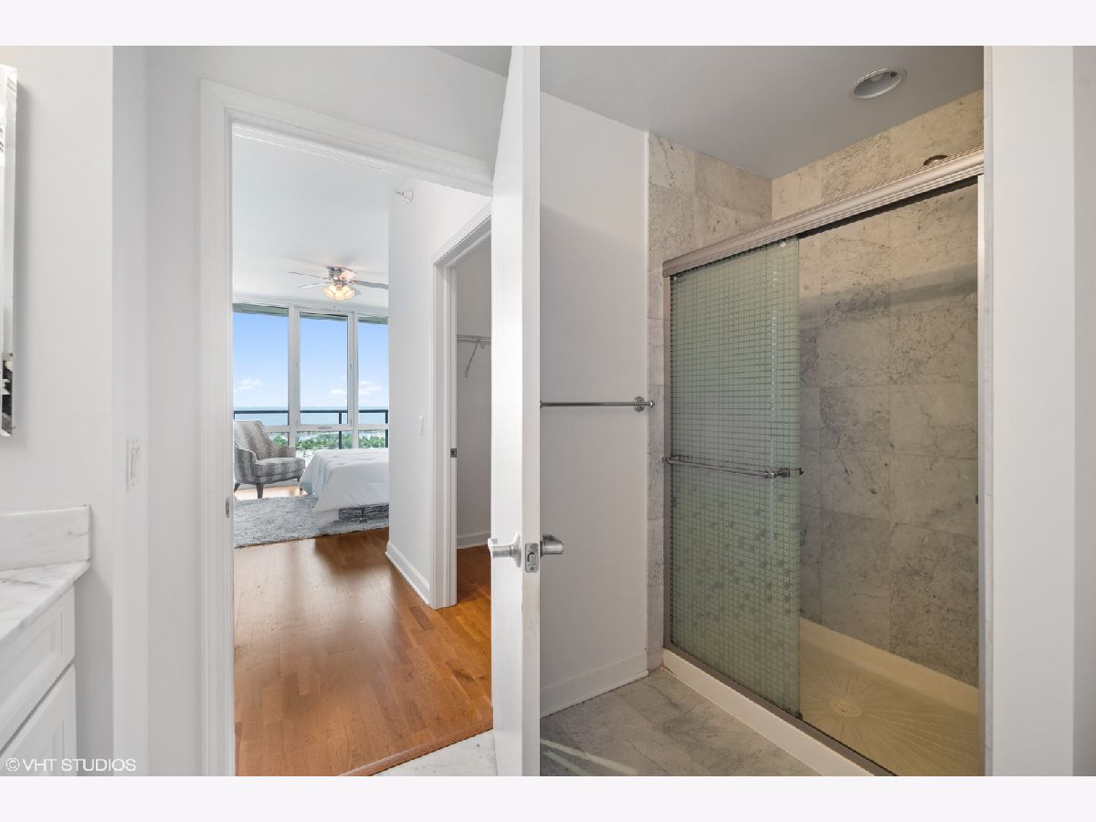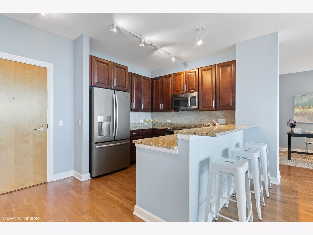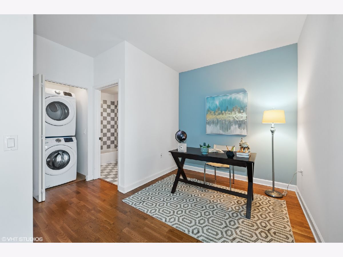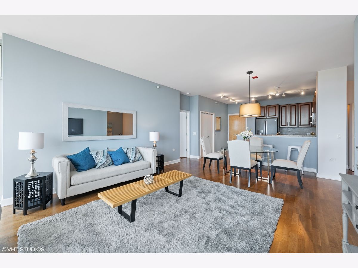 Experience breathtaking views as soon as you enter this serene city home in the Prairie District's premier high rise condo building, Adler Place. Enjoy panoramic views from any room overlooking Museum Campus, Soldier Field, Northerly Island, and Lake Michigan. This expansive 2bd, 2ba layout is perfect for entertaining and offers a convenient bonus den to build your dream at-home workspace. You'll love the Kingsize primary bedroom with walk-in closet and ensuite bath, which includes double vanity and glass enclosed shower. A stylish kitchen with stainless steel appliances including brand new LG french door refrigerator, new Moen spot resistant faucet over 32 in stainless steel sink, custom mosaic thin tile backsplash, 42 inch cabinets, granite counters and breakfast bar complete the heart of this home. Additional amenities include hardwood floors, high ceilings, in-unit washer/dryer and perfect private balcony for enjoying lake views, summer fireworks and grilling. Excellent full amenity building with 24 hour door staff, fitness center, outdoor rooftop pool and sundeck and beautiful party lounge with full kitchen, cozy fireplace and incredible views. Desirable South Loop location: Walk to Lake, Museum Campus, Soldier Field, Grant Park restaurants and shopping. Prime deeded parking #GU1 located on first level available for an additional $30K. Floorplan is shown under "Additional Information". Don't miss this one!