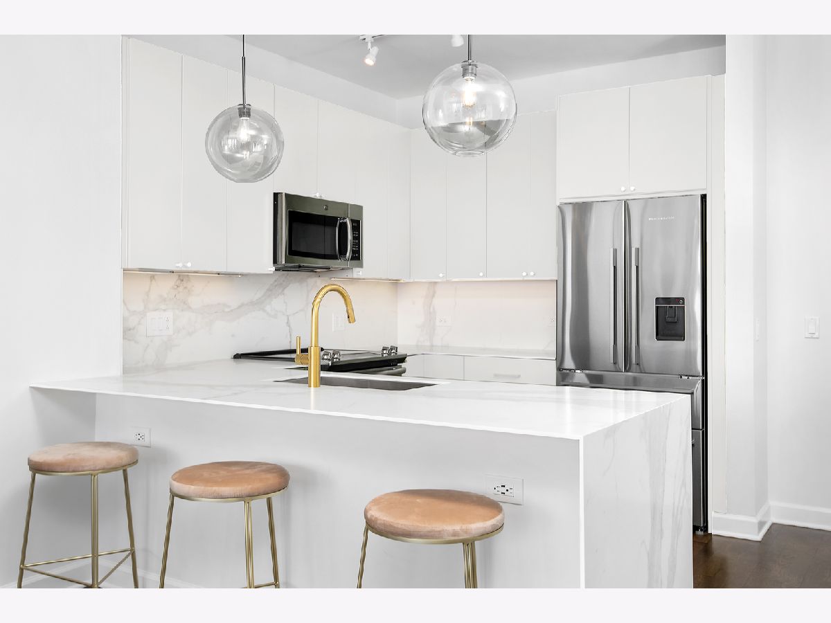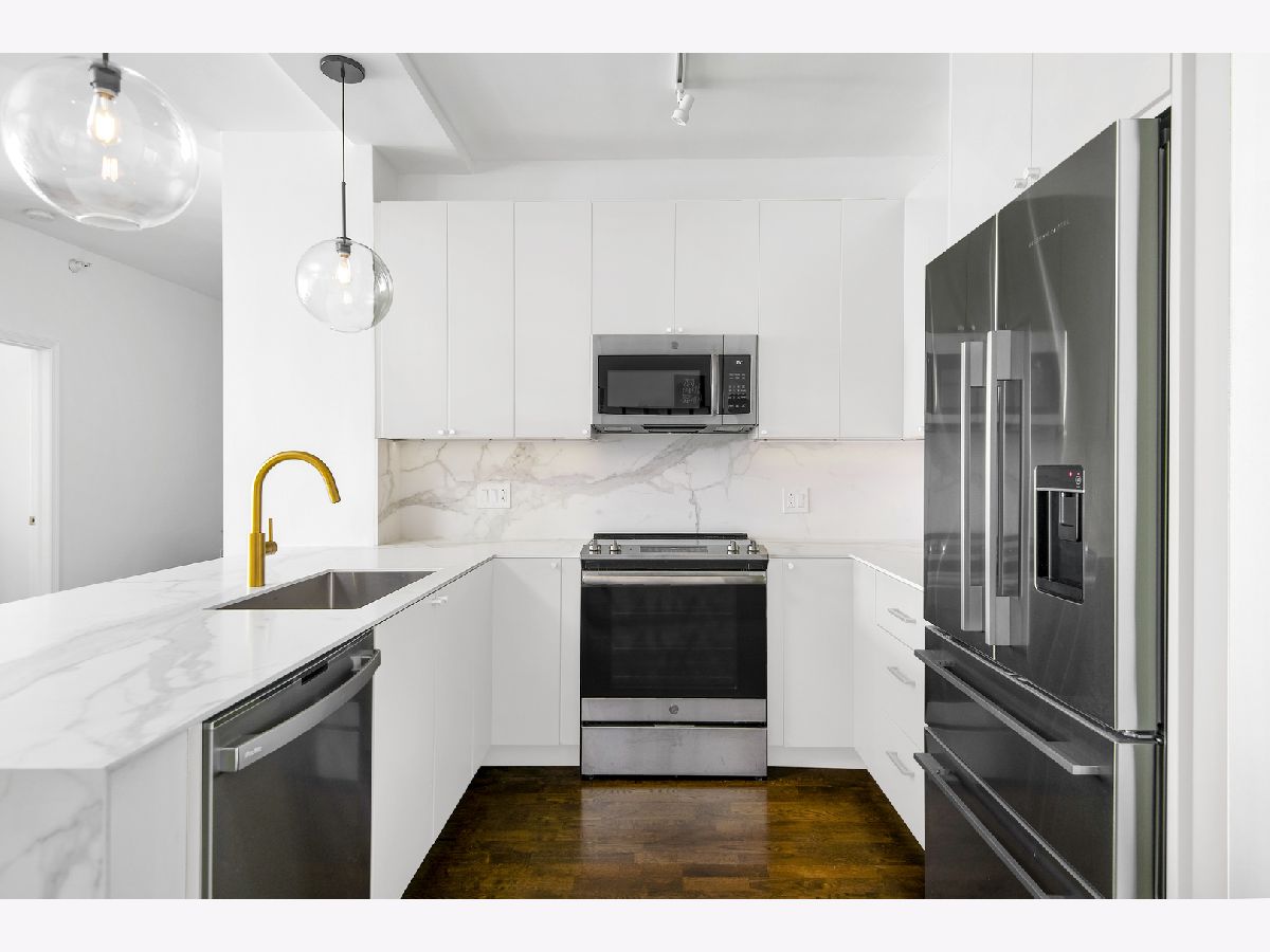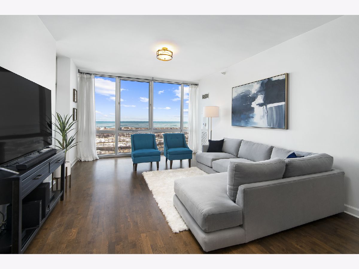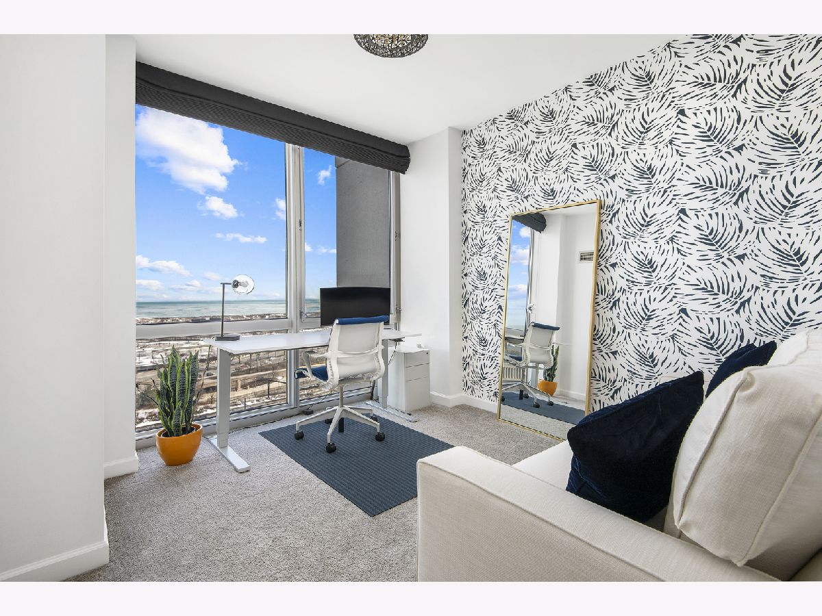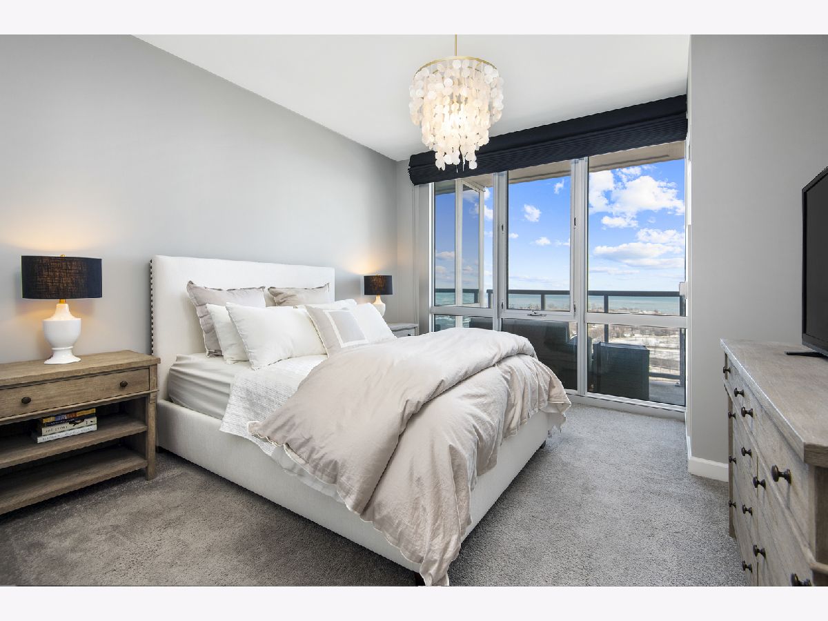 East-facing, brand new and thoughtfully renovated extra large 2 bed + den/ 2 bath condo with incredible lake views located in the heart of South Loop's historic Prairie District! The Calacatta Gold porcelain marble kitchen countertops with satin brass accents blend beautifully the new Brunswick cabinetry and stainless steel appliances. Bright and open floor plan including 9' ceilings, a balcony, 2 full walk in closets and ample storage throughout. Full remodeled guest and primary bathroom include an authentic concrete floor tile which compliments a simple black-and-white theme with chrome accents, throughout both bathrooms. All new, full sized in-unit washer and dryer. All this in a professionally-managed high-rise building including 24/7 door person & gym, common rooftop lounge & pool! 1 garage space for an additional $30k. Monthly assessments include internet, heat, water & 1 private storage cage. Dog park just north of the building, tons of nearby restaurants and easy/ direct access to the lake and Soldier field from nearby passage below LSD!