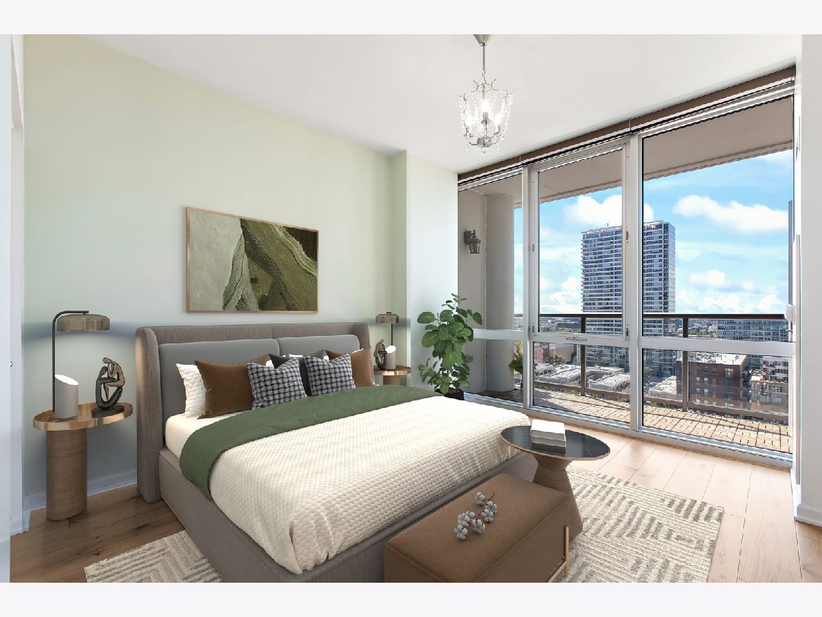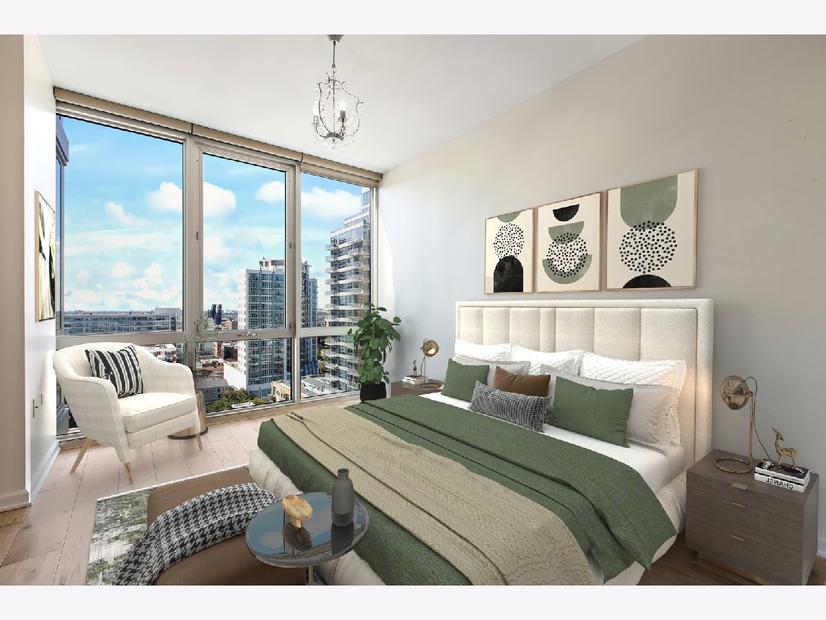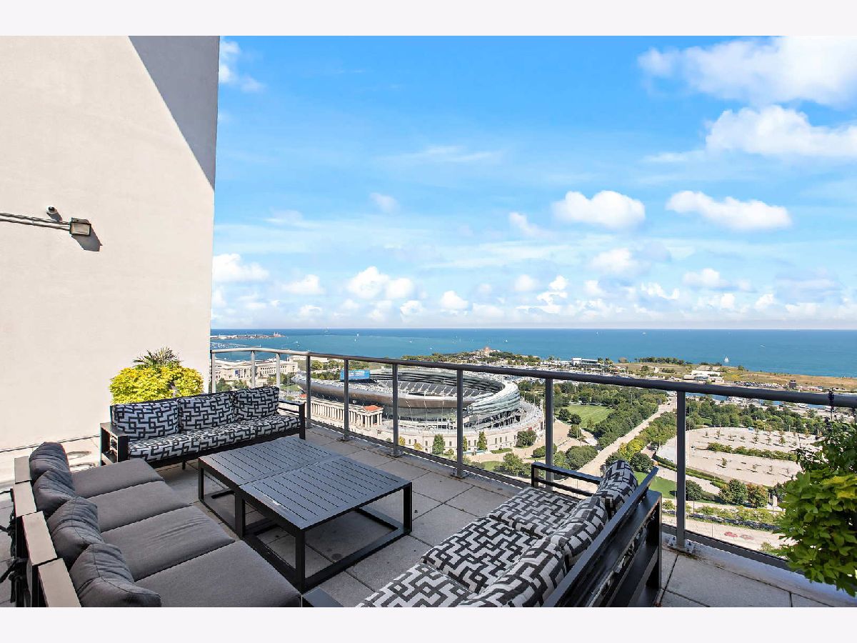 Spacious two bedroom, two bath, plus den now available in the beautiful Prairie District's premier building! Exceptional floor plan with large bedrooms, walk- in closet, large den/ office/ guest room. Floor to ceiling windows with high-end custom blinds allow for wide open views with no obstructions to the west and north! Upgrades and updates include 6" wide plank surface-wood floors throughout, upgraded kitchen with quality cabinetry, soft close doors, and undermount sink. Primary bath has separate shower and double-sink with marble counters. Watch the beautiful sunset on the spacious balcony featuring sharp, teak paver flooring. Building amenities include a private dog run and private park, professionally redecorated common areas, 24/7 Door staff, rooftop pool, community room, and fitness center. Steps away from the Lake, Soldier Field, the Museum Campus, the Prairie Mansions, great parks, CTA, many dining options, shops and services, and the new South Loop School! Multiple deeded parking spaces are available for purchase in the building.