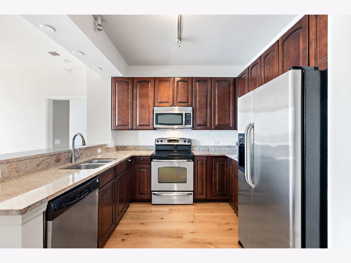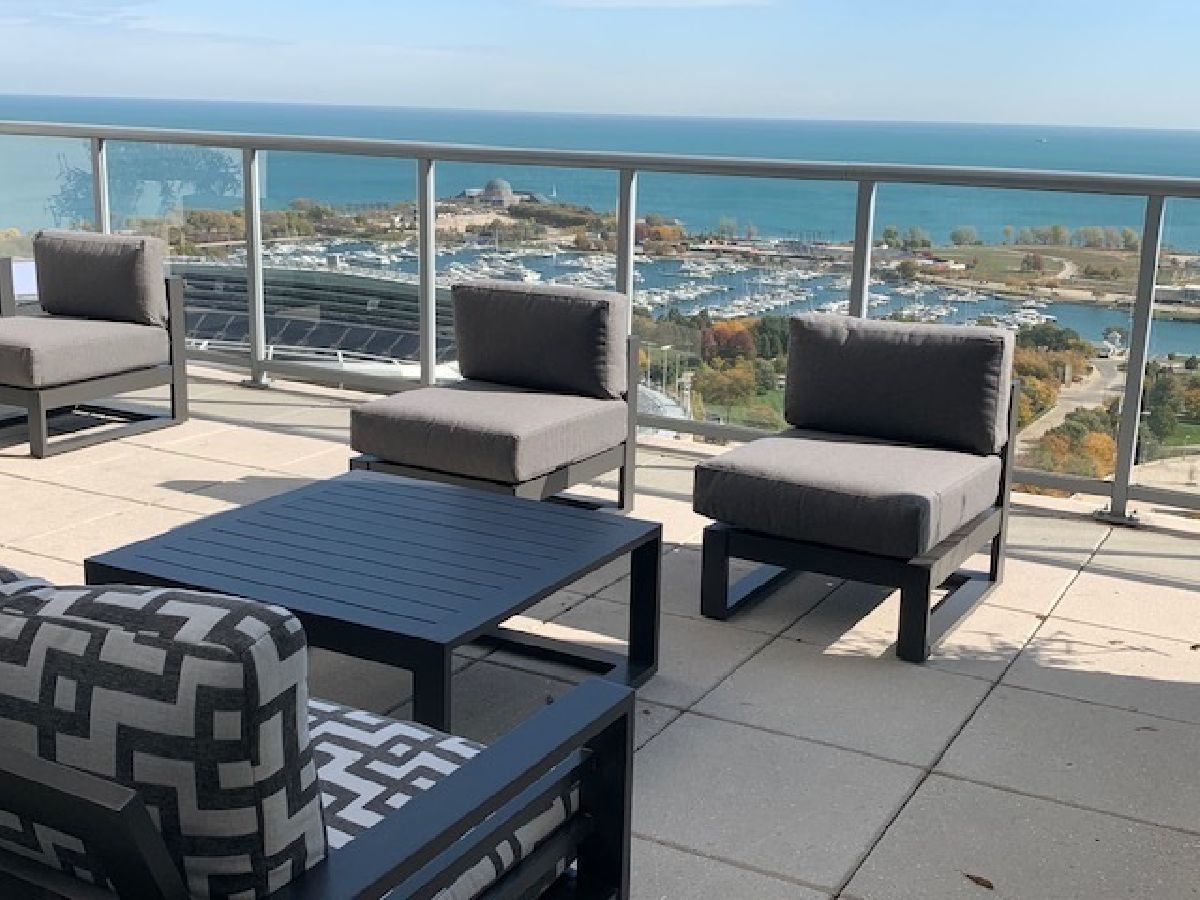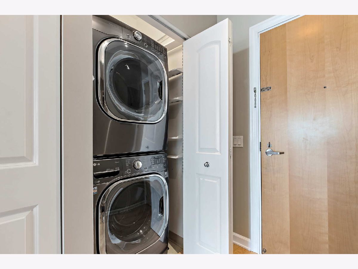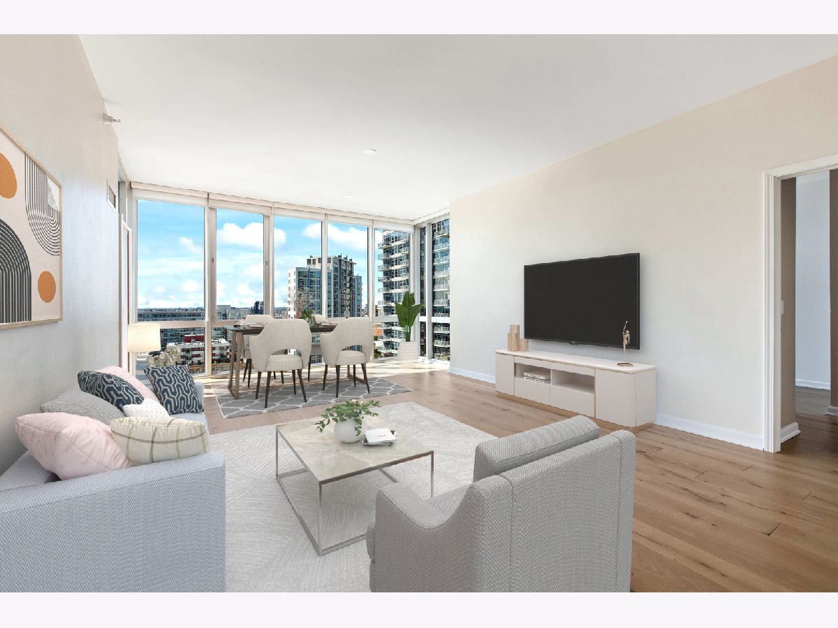 Spacious two bedroom, two bath, plus den now available in the beautiful Prairie District's premier building! Exceptional floor plan with large bedrooms, walk- in closet, large den/ office/ guest room. Floor to ceiling windows with high-end custom blinds allow for wide open views with no obstructions to the west and north! Upgrades and updates include 6" wide plank surface-wood floors throughout, upgraded kitchen with quality cabinetry, soft close doors, and undermount sink. Primary bath has separate shower and double-sink with marble counters. Watch the beautiful sunset on the spacious balcony featuring sharp, teak paver flooring. Building amenities include a private dog run and private park, professionally redecorated common areas, 24/7 Door staff, rooftop pool, community room, and fitness center. Steps away from the Lake, Soldier Field, the Museum Campus, the Prairie Mansions, great parks, CTA, many dining options, shops and services, and the new South Loop School! Multiple deeded parking spaces are available for purchase in the building.