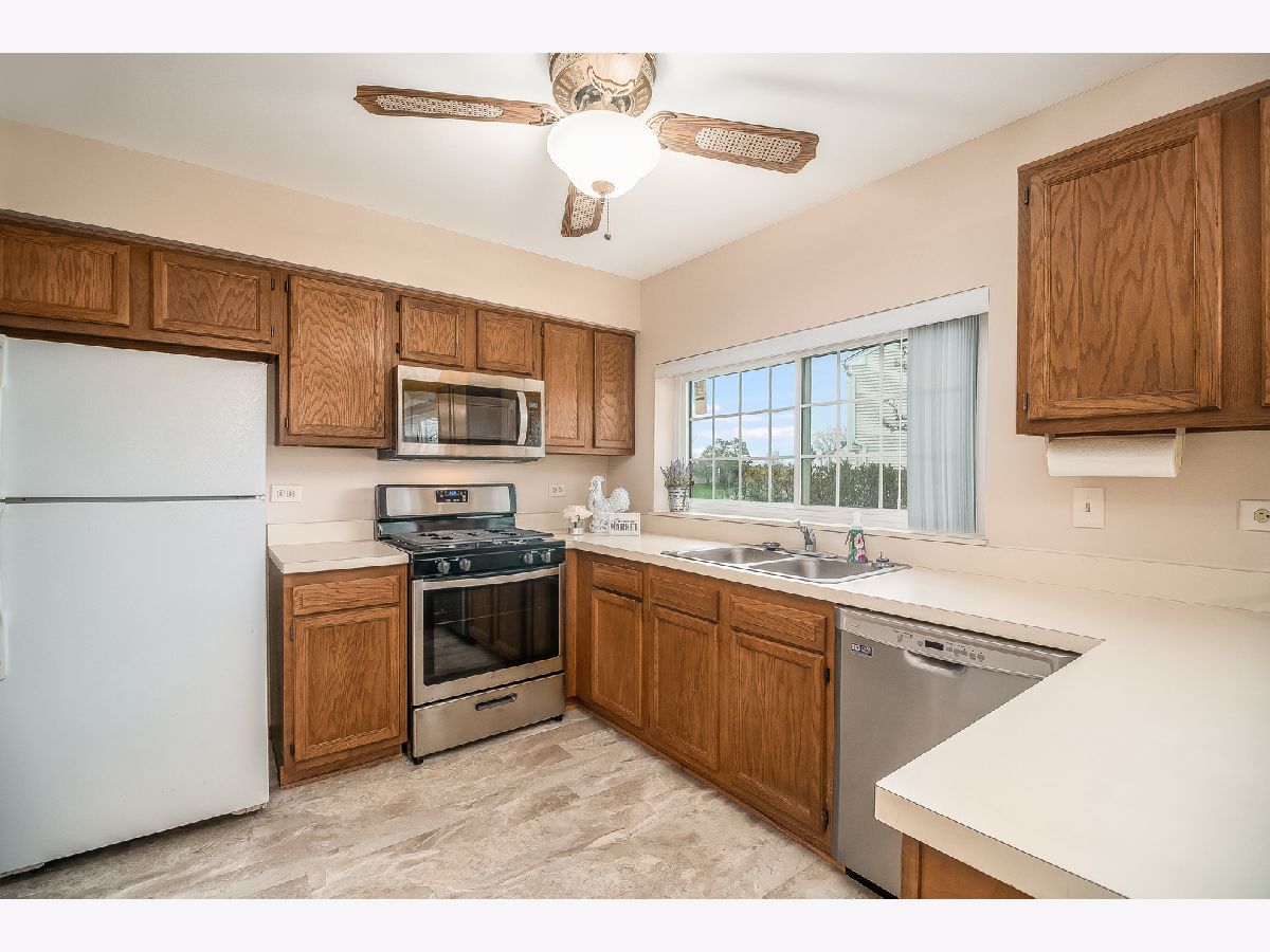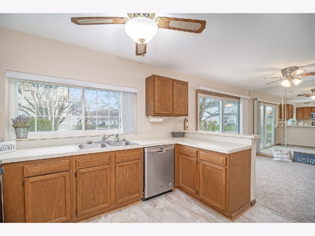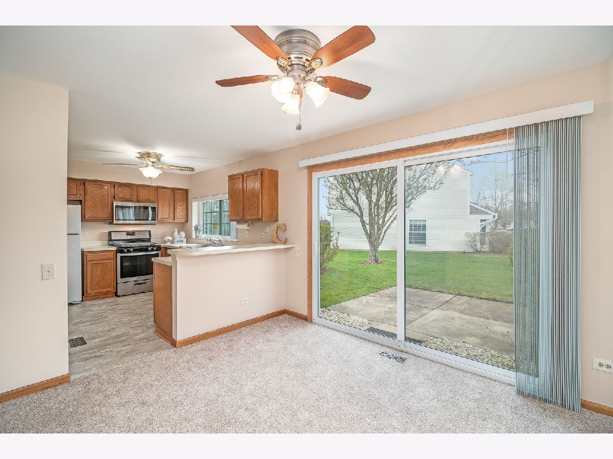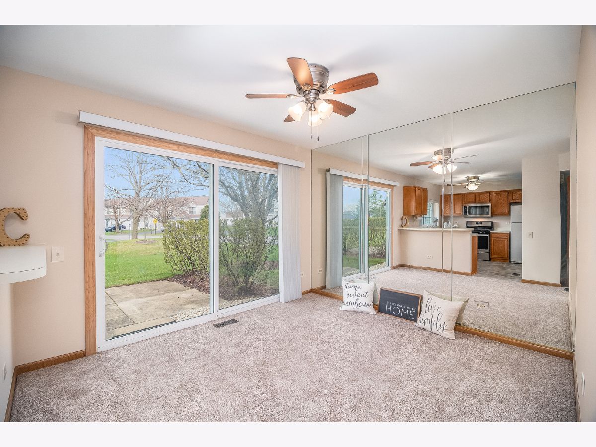 DESIRABLE END UNIT TOWNHOME WITH TONS ON LAND SPACE ALL AROUND IT. WONDERFUL WALKING PATHS AND OPEN SPACE NEARBY. THE PRIVATE ENTRANCE LEADS YOU TO A TWO STORY LIVING ROOM. THE HOME HAS BEEN FRESHLY PAINTED AND FEATURES BRAND NEW CARPETING. BRAND NEW SKYLIGHTS MAKE IT LIGHT AND BRIGHT. NEWER WINDOWS~BRAND NEW ROOF~BRAND NEW MICROWAVE~CEILINGS FANS~BRAND NEW STOVE~NEWER DISHWASHER~NEW SMOKE DETECTORS~NEWER FURNACE~NEWER SLIDING GLASS DOORS LEAD YOU TO THE PATIO TO ENJOY YOUR OUTDOOR SPACE. CONVENIENT LOCATION, CLOSE TO I90, FOREST PRESERVES, SHOPPING ETC. CURRENTLY THE UP STAIRS 2ND BEDROOM IS AN OPEN LOFT AREA BUT CAN BE CONVERTED TO A REGULAR BEDROOM EASILY. WHY PAY RENT WHEN YOU CAN OWN THIS WONDERFUL END UNIT.