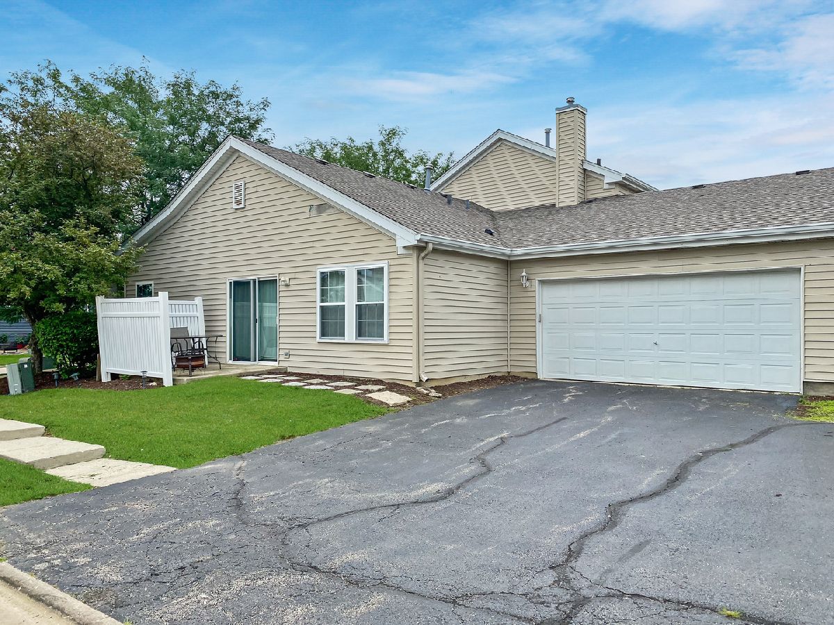 Welcome to 163 Waterbury Circle in the desirable Ogden Falls subdivision of Oswego. You are going to love this two bedroom, 1 bath, ranch end unit. Take notice of the attractive luxury vinyl that runs thru out the living room, dining area and kitchen. The kitchen boasts maple cabinets, Samsung stainless steel appliances and granite counter tops. Master bedroom comes complete with two separate closets and a gas starting fireplace. Bathroom has double sinks with granite counter tops. The garage has an epoxy floor and is drywalled. Tons of storage! Walk thru this home from the privacy of yours (check out our 3D tour) Welcome Home!