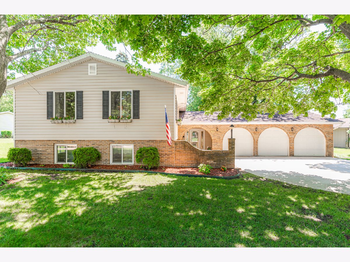Move right in to this beautiful home. The front entrance has a welcoming brick patio and covered porch, entering into a beautiful tile foyer, this home has the wow factor throughout! Just over 3,000 Sq Ft of living space in a mature neighborhood. This bright and open floor plan provides plenty of room for entertaining. Every room is updated. The lower level has cedar ceilings throughout. 5 nice size bedrooms with a large master suite with 10 x 6 walk-in closet and gas fireplace. This home boasts 3 baths, 2 with showers one with tub, 3 car heated garage, and a fully fenced yard with deck, patio and shed. Breathtaking huge open kitchen/living room/dining room, and a huge family room with a wood-burning fireplace. Updates: New concrete driveway 2019 and New A/c unit 2019. Leaf guard and gutters. New fence 2019. New shed 2015 (built with wood from a barn on the Twombly family farm in Rochelle) New flooring in foyer 2021. New carpet master bedroom 2021. 2, 200 amp electric. Blocks from elementary, middle, and high school.