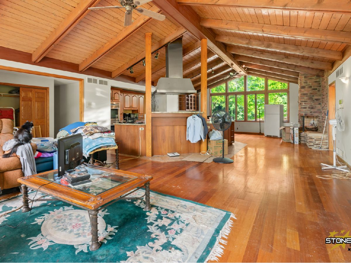 MULTIPLE OFFERS RECEIVED HIGHEST AND BEST DUE BY TUESDAY AUGUST 27TH BY 10:00AM.Although this property is somewhat of rehab the possibilities are endless. The 8.7 acres offers a wooded setting along with a parklike setting.There is also a large pond. The house itself while it needs some rehab work does have some very nice features. There are custom cabinets, and the hardwood floors throughout are in good condition. Vaulted wood ceiling in the living, kitchen dining areas and cozy brick fireplace. This is a very open concept home. The outbuilding has 3 overhead doors, a concrete floor and at one time it was partially heated.There is also a detached 2 car garage. So.. there is an indoor concrete pool in the pool room that adjoins the house. The pool itself had heaved and nothing was ever done with it. . This is an estate being sold as is . No repairs will be made by the seller. **Natural gas ** not propane. MULTIPLE OFFERS RECEIVED.HIGHEST AND BEST DUE BY TUESDAY AUGUST 27TH BY 10:00AM.