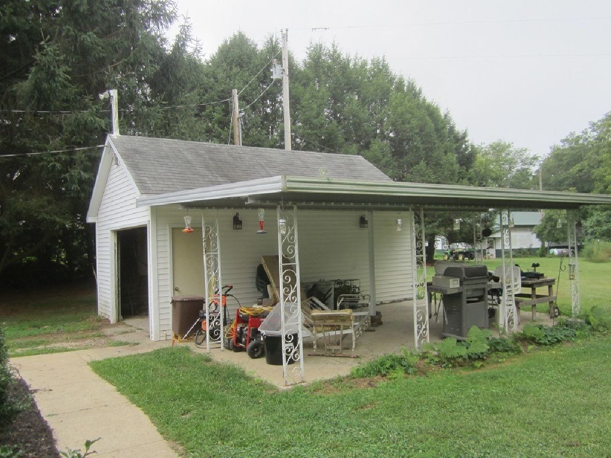 Ideal Country Setting - 2 BR, 1 Bath home on 10 acres near Watseka. Home has spacious kitchen w/ dining area, large living room plus front entryway. Other room is enclosed back porch that is finished and carpet floor. There is 1 car detached garage with roofed patio, 2 small storage sheds w/ concrete floor and metal roofs. The Real Plus is the 36'x56' Pole Metal Covered Shed w/ Concrete Floor built 2008 (16'x36' is finished, heated, built-in a/c used as workshop and balance is garage/storage and 8x18 open porch) Make excellent man cave! Part of ground has nice yard, balance good for pasture and great hunting opportunities!!!