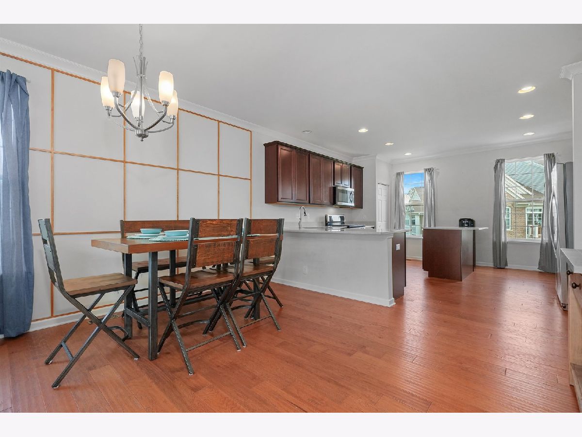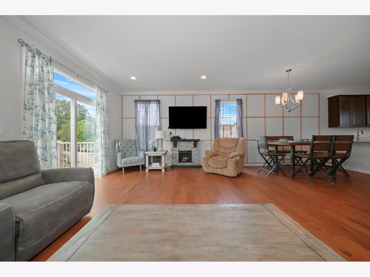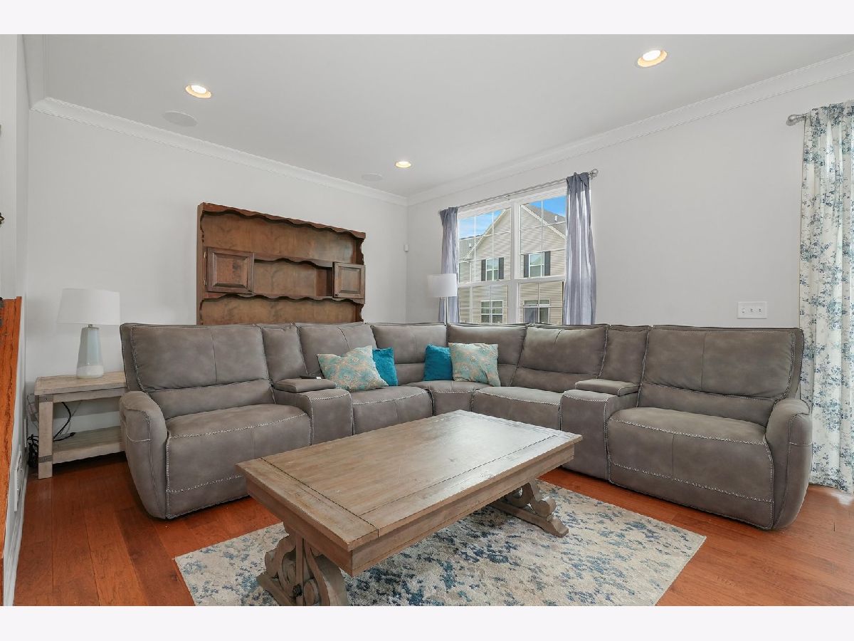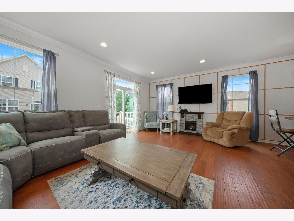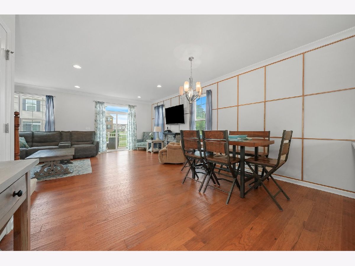 Previous builder's model equals builder upgrades! END UNIT. This truly makes a townhouse you do not want to pass up! Beautiful Prairie Pointe subdivision offers a great location. The CHELSEA model features 2208 square feet, 3 bedrooms, 2 1/2 baths, 9' 1st floor ceilings, living room, dining room, and finished walk out basement! Nice custom kitchen features 42" counters, granite counters, all stainless steel appliances, closet pantry, 42" cabinets. Crown molding and and hardwood floors throughout the main floor! Living room leads to big balcony. Master bedroom has gorgeous tray ceiling, recess lighting and big walk in closet. Bedroom 1 and 2 have recess lighting and good size closets. Finished basement with oversized family room with beautiful accent wall and laundry room. Speakers throughout the entire home, 2 car garage. This is the townhouse you were looking for!