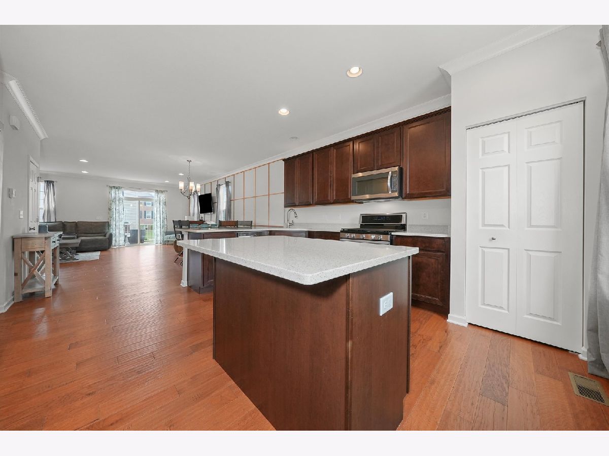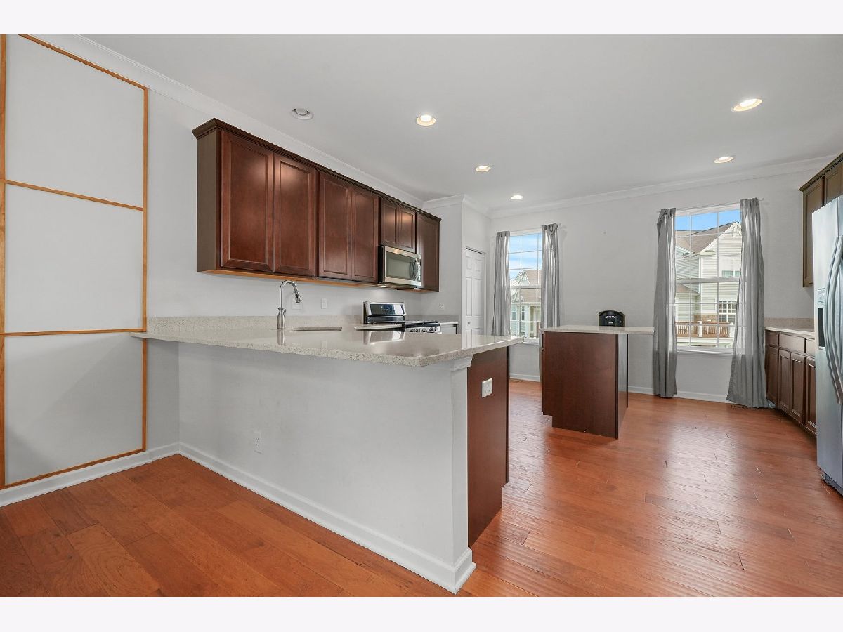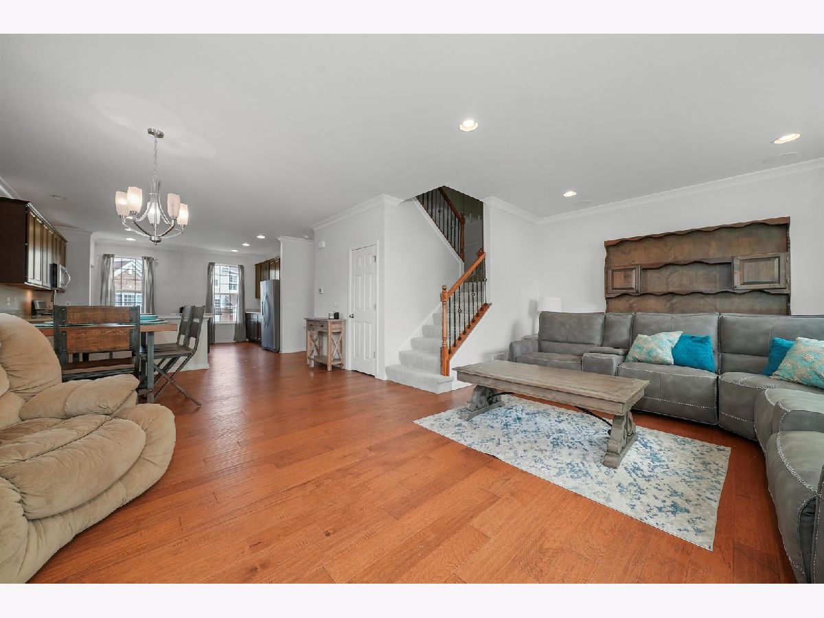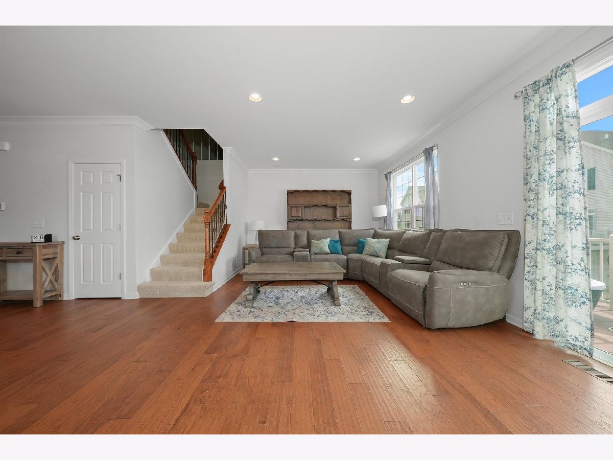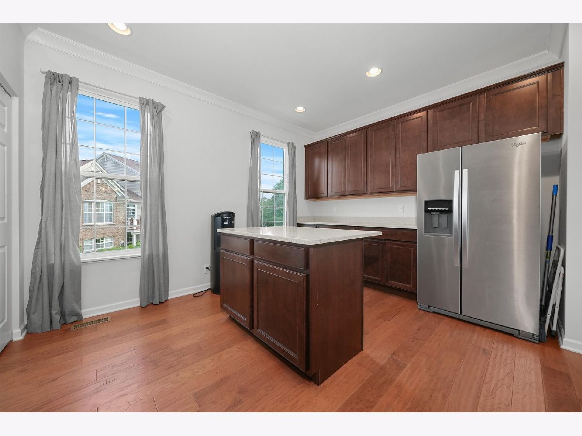 Previous builder's model equals builder upgrades! END UNIT. This truly makes a townhouse you do not want to pass up! Beautiful Prairie Pointe subdivision offers a great location. The CHELSEA model features 2208 square feet, 3 bedrooms, 2 1/2 baths, 9' 1st floor ceilings, living room, dining room, and finished walk out basement! Nice custom kitchen features 42" counters, granite counters, all stainless steel appliances, closet pantry, 42" cabinets. Crown molding and and hardwood floors throughout the main floor! Living room leads to big balcony. Master bedroom has gorgeous tray ceiling, recess lighting and big walk in closet. Bedroom 1 and 2 have recess lighting and good size closets. Finished basement with oversized family room with beautiful accent wall and laundry room. Speakers throughout the entire home, 2 car garage. This is the townhouse you were looking for!