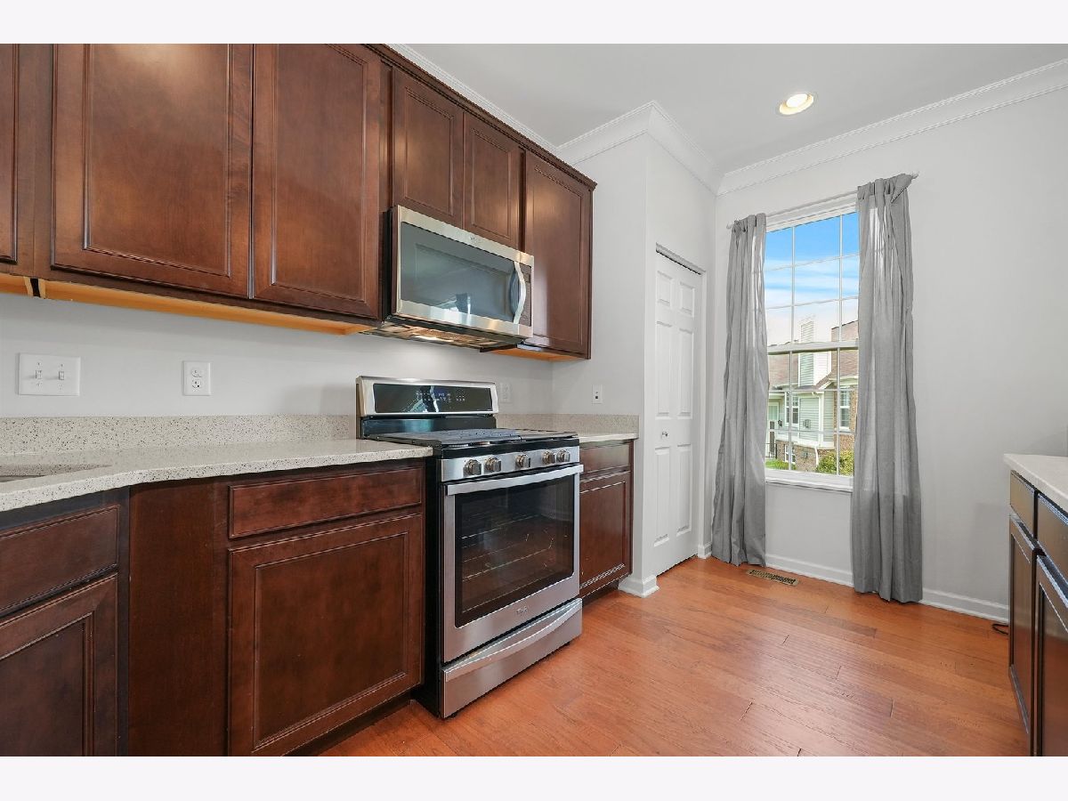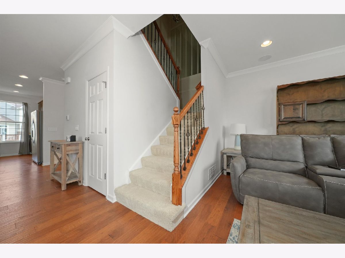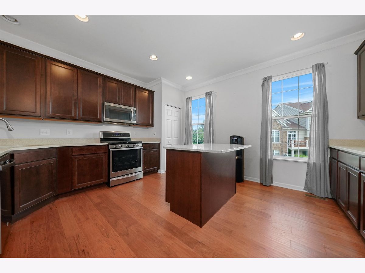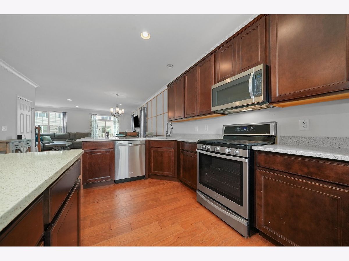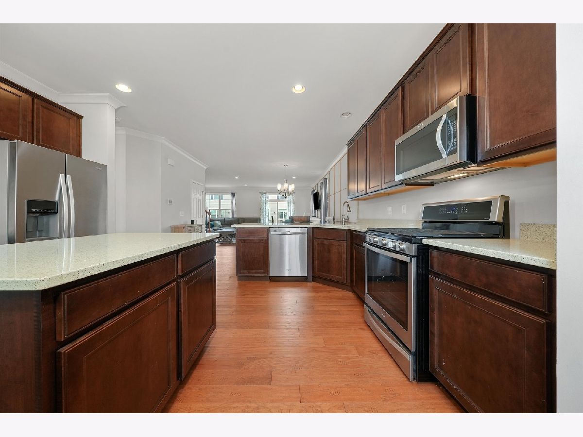 Previous builder's model equals builder upgrades! END UNIT. This truly makes a townhouse you do not want to pass up! Beautiful Prairie Pointe subdivision offers a great location. The CHELSEA model features 2208 square feet, 3 bedrooms, 2 1/2 baths, 9' 1st floor ceilings, living room, dining room, and finished walk out basement! Nice custom kitchen features 42" counters, granite counters, all stainless steel appliances, closet pantry, 42" cabinets. Crown molding and and hardwood floors throughout the main floor! Living room leads to big balcony. Master bedroom has gorgeous tray ceiling, recess lighting and big walk in closet. Bedroom 1 and 2 have recess lighting and good size closets. Finished basement with oversized family room with beautiful accent wall and laundry room. Speakers throughout the entire home, 2 car garage. This is the townhouse you were looking for!