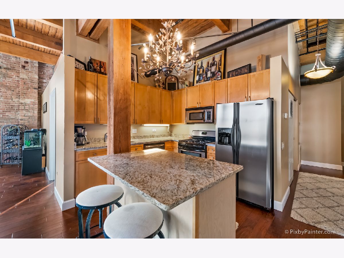 A RARE northeast corner facing unit WITH 2 AVAILABLE PARKING SPOTS & 2 private balconies at Bicycle Station Lofts! So many updates in this Timber Loft with 14' ceilings & exposed brick... Both bedrooms have windows with great views. Totally updated bathrooms w/ quartz counters, designer fixtures & subway tile! NEW hardwood flooring throughout. Big great room with large windows, giving you views of everything - the lake, downtown, soldier field. Walk out to 2 SPACIOUS BALCONIES. Kitchen has center island, plenty of counter space, granite counters & stainless app. NEW furnace in 2019! Building is pet friendly, dog park nearby... Walk to Marianos, Lake, Public Trans (CTA & El), Museums, Bike Path, and so much more... Building has storage, bike room & fitness room. Exterior deeded parking - additional $20k. Garage parking - additional $25k. Rare opportunity for a corner unit like this WITH TWO parking spots!