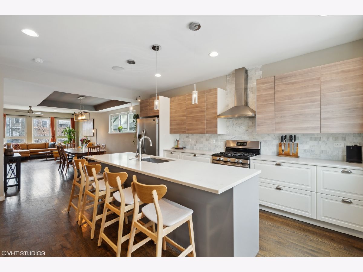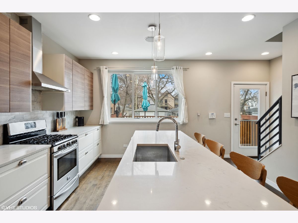 Extraordinary opportunity to purchase a 2015 constructed highly upgraded single family home in Humboldt Park! Steps away from the 606 trail and situated on an extra deep 'park-like' 177' lot, this home boasts 4 bedrooms and 3.5 baths and a wide-open floor plan. Fence uplighting, rose bushes, and a colorful Redbud tree will welcome you to this side entrance home. Main floor features an east facing living room, dark walnut hardwood floors, spacious powder room, and designated dining area with tray ceiling. The gourmet kitchen offers a 9' center island, quartz countertops, flat panel cabinetry, and Frigidaire Gallery stainless steel appliances. A large slider window overlooks the rear deck, making it easy to keep tabs of all the backyard fun. Top floor features 3 large bedrooms, guest bath with tub, solid core doors, and hardwood floors throughout. The primary suite showcases full wall closets, big windows overlooking the Chicago skyline, and a designer bath with dual vanity and spa-like walk-in rain shower. The lower level includes a carpeted recreational space, huge 4th bedroom, additional guest bath, laundry room, and stylish under stair storage area. This Energy Star 3.1 certified home has a HERS index score of 49 and is fully equipped with high efficiency mechanicals. Dual zoned HVAC, tankless water heater, and Lifebreath clean Air HRV system, AeroSeal duct sealant, and sump pump with battery backup. The home also sports ceiling surround sound on the first and lower level, extended 2 car garage with workbench and party door, gas line to patio, and a backyard lined with built in planter boxes. Walk to Humboldt Park, explore Orkenoy brewpub, Dayglow coffee, Outside Voices wine bar, Moonlighter, and Scofflaw all a quick walk off Armitage.