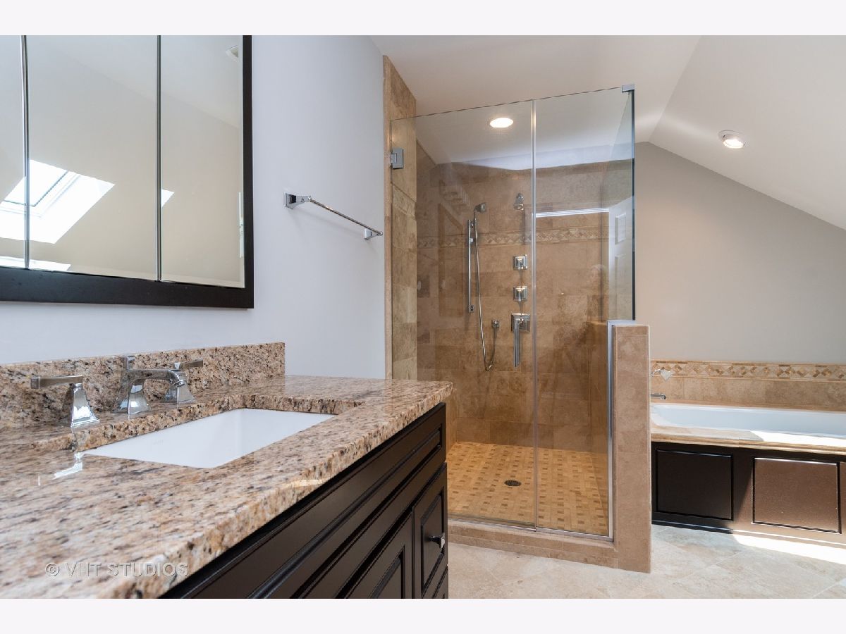 Northside Naperville School District 203. Freshly painted throughout with new hardwood floors in living room, dining room, hallway, and powder room and updated light fixtures. Vaulted ceiling, skylight, & 2 story brick fireplace in family room. Oversized first floor office. Master bedroom with new carpet, vaulted ceiling, and walk in closet with organizer and laundry chute. Kitchen with granite counters, stainless steel appliances, bay window and pantry with pullout shelving. Large laundry/mudroom with built in shelving. Updated bathrooms 2014, hall bath with double sinks, master bath with separate vanity area, shower, soaking tub, and skylight. Closet organizers. Huge basement with painted floor. New skylights 2014, new AC 2013 and new water heater 2016. New roof 2003 with 40 year warranty. Enjoy the summer evenings on your front porch or brick paver patio.