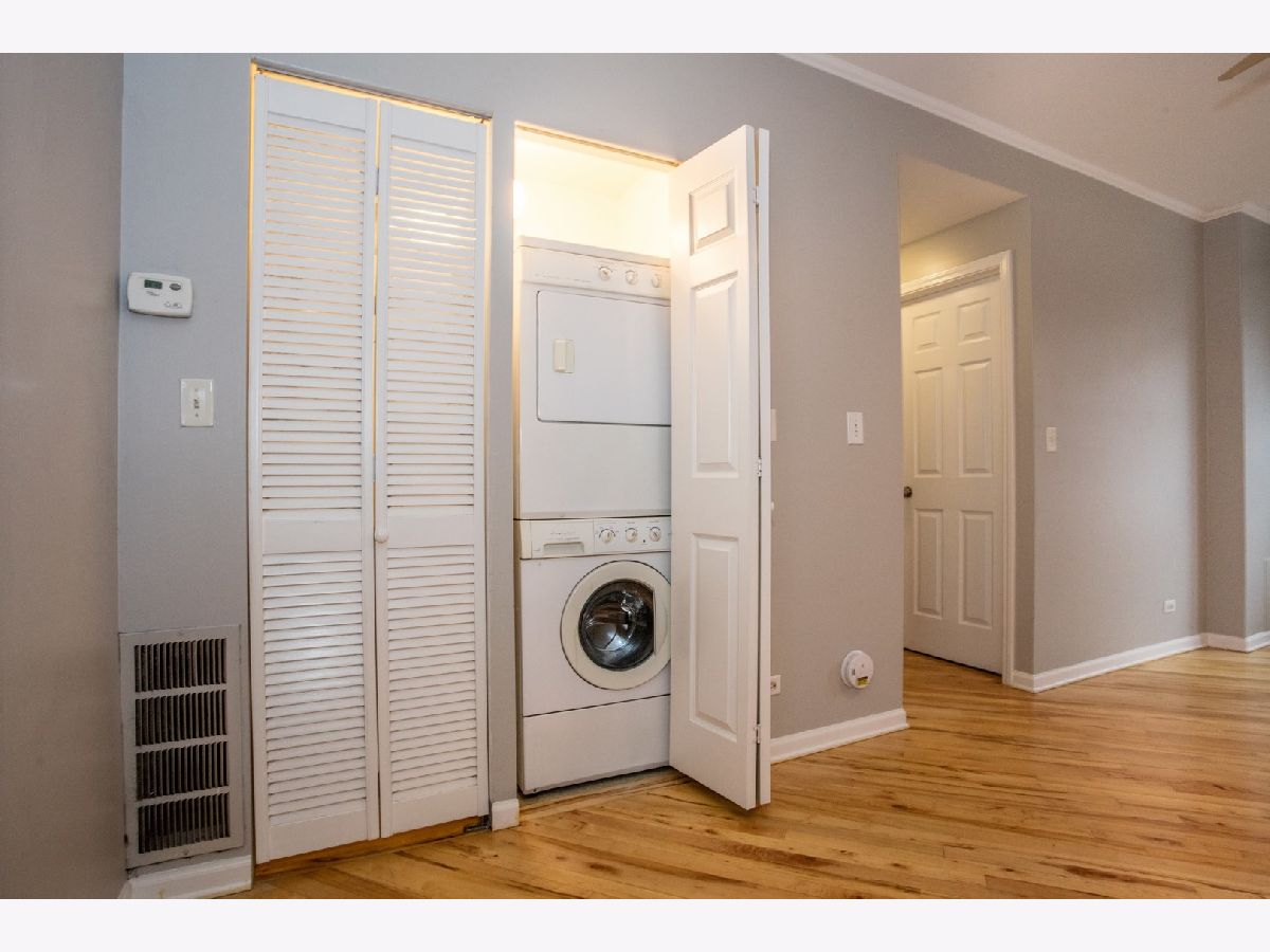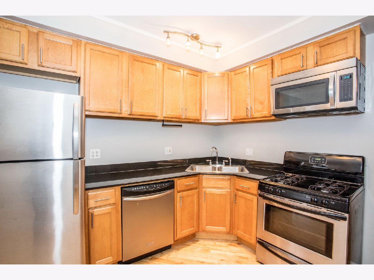 Welcome Home! This charming 1-bedroom 1-bathroom condominium home features gleaming hardwood floors throughout, amazing amounts of sunlight, and the quality you desire. Upon entrance you'll find a sizable bedroom with ample closet space. The bathroom offers a jetted tub with stone tiled wall surround. Spacious eat-in kitchen includes stainless steel appliances with brand new garbage disposal and granite counter tops. Additionally, this home has central air conditioning with gas forced heat furnace, and in-unit washer & dryer for your convenience. Step out your back door and appreciate the South facing wood deck, perfect for summer BBQ's and container gardening. Situated on a tree-lined street at the heart of Rogers Park, an ideal location in close proximity to transportation, Loyola, the lake, cafes, nightlife, parks & more. Free street parking or rental parking options nearby.