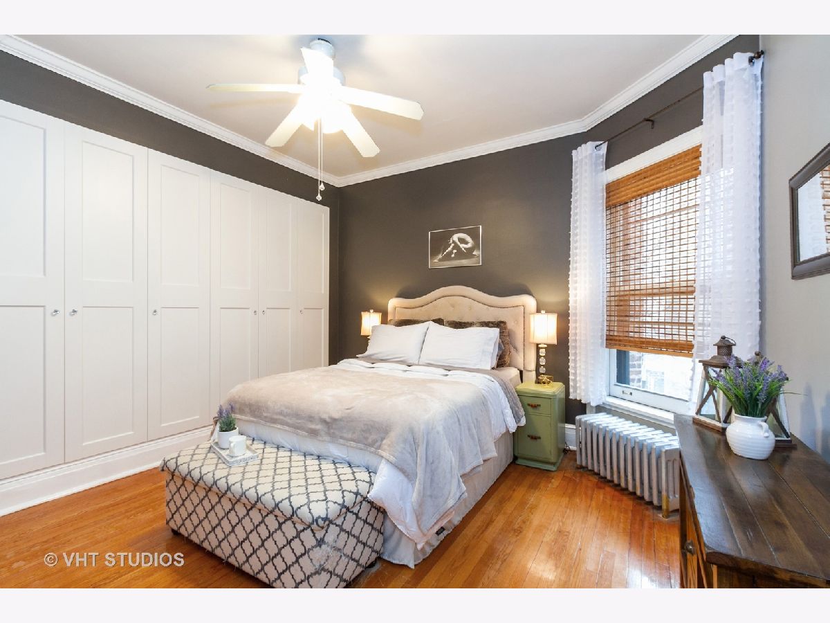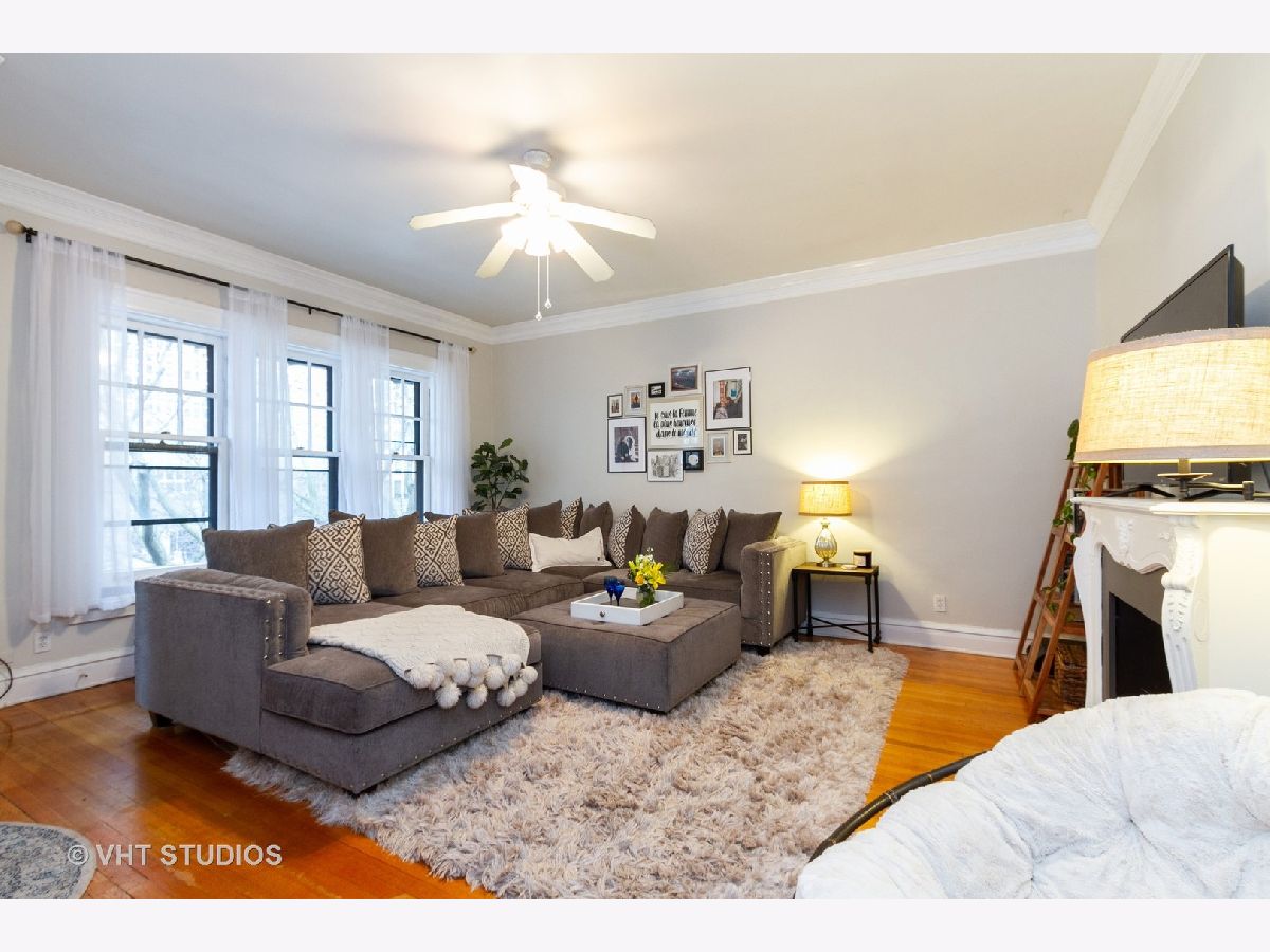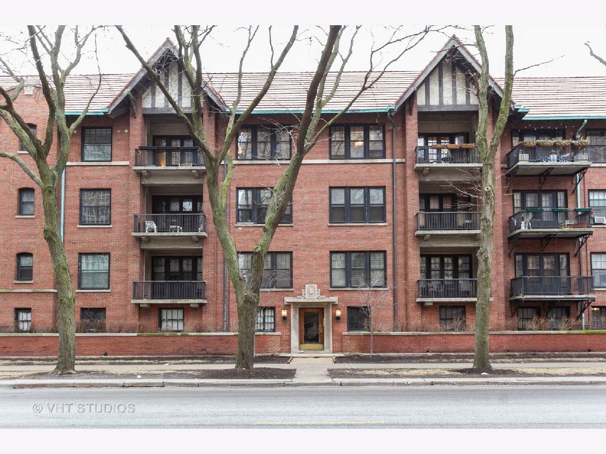 Enjoy viewing the treetops out of your beautiful large windows or on your private balcony! This rehabbed spacious condo has an updated kitchen, hardwood floors, amazing closets, and a large master bedroom overlooking the common gardens. Unit is flooded with natural light, charming details throughout, and has its own private laundry room and large storage room on the lower level. Internet, cable and heat are included in assessment. Board door to door buses to the Loop and the University in front of building. Live across from a park, and steps away from the Lake, Whole Foods, Trader Joe's, shopping, fitness center, and dining. Impeccable location!
