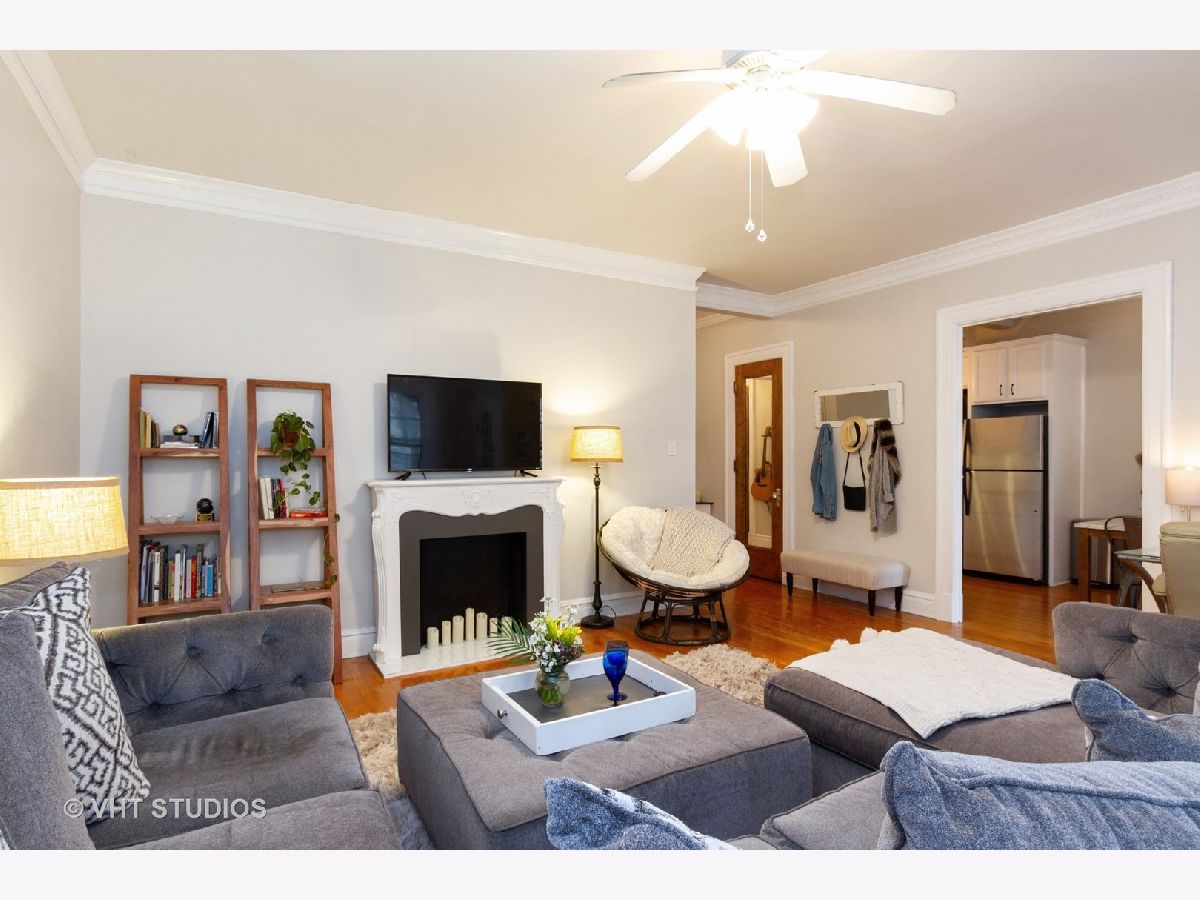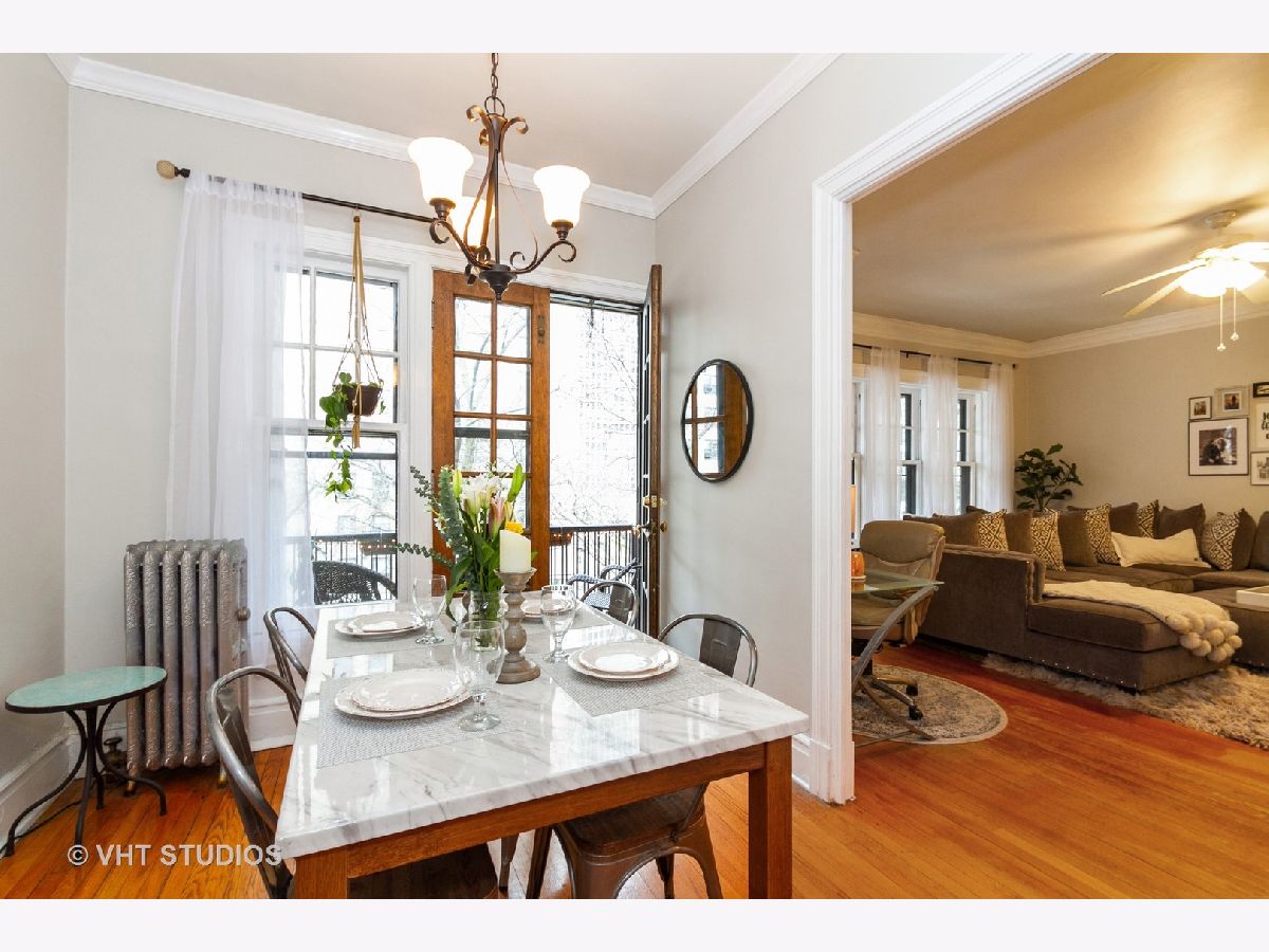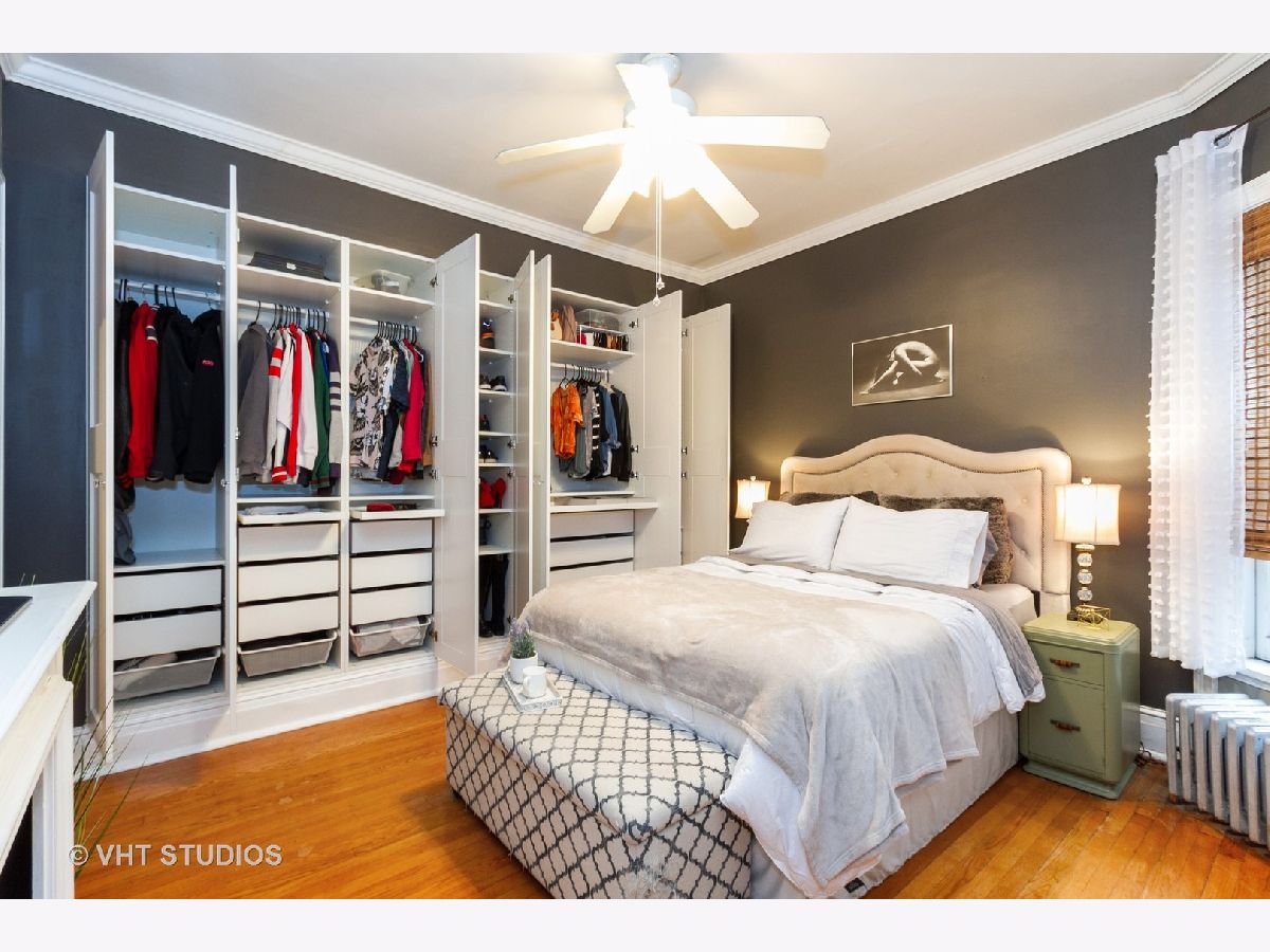 Enjoy viewing the treetops out of your beautiful large windows or on your private balcony! This rehabbed spacious condo has an updated kitchen, hardwood floors, amazing closets, and a large master bedroom overlooking the common gardens. Unit is flooded with natural light, charming details throughout, and has its own private laundry room and large storage room on the lower level. Internet, cable and heat are included in assessment. Board door to door buses to the Loop and the University in front of building. Live across from a park, and steps away from the Lake, Whole Foods, Trader Joe's, shopping, fitness center, and dining. Impeccable location!