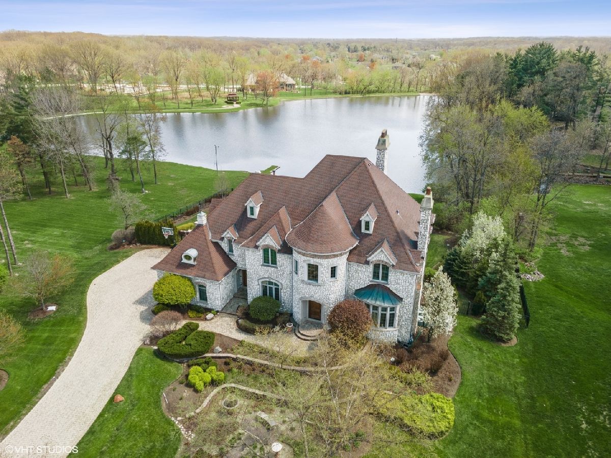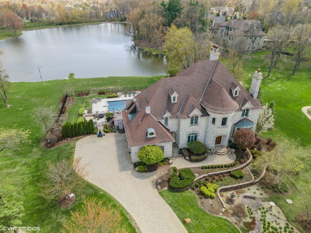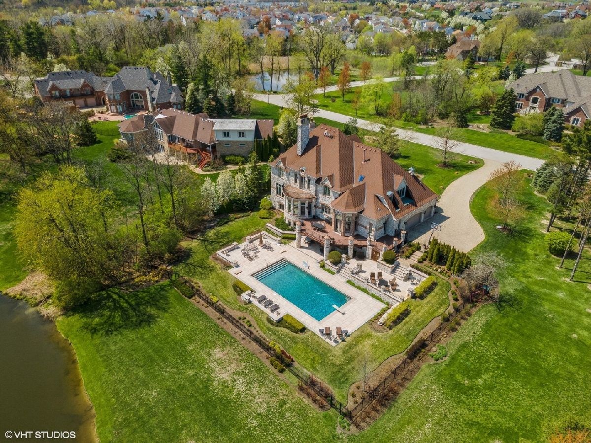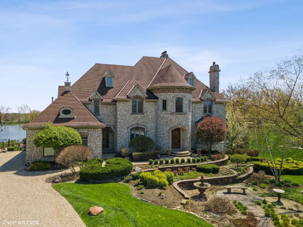 Exceptional Custom stone home truly one of a kind in desirable Evergreen a gated community. Inspiring estate with expansive 3 finished levels of living space -app.10,000 sq ft. Amazing Open floor plan with soaring ceilings, uncompromising quality & attention to every detail. Grand foyer with winding staircase, formal living room with fireplace, dining room with butlers pantry , office/study with custom wood work & fireplace. Grand Family room with wall of windows, built is bookshelves & fireplace. Gourmet Kitchen with Gorgeous custom cabinetry, island, top of the line stainless steel appliances, granite, wet bar, pantry and spacious eating area. 2nd floor- Large Master bedroom with fireplace, balcony, 2 walk in closets. Ultra bath with double sink, whirlpool, separate shower. Additional 4 spacious bedrooms with their own private baths. Amazing Walk out finished english basement with recreation room with fireplace, two game room areas, theatre room, exercise room, wine room, bedroom with full bath, kitchenette area and custom Sauna. Elaborate and breathtaking private yard with luxury custom pool, multilevel custom tile patios, deck & extensive landscaping, perfect for entertaining. Private pier on the serene pond, brick paver driveway, heated 3+car side garage, 5 fireplaces , walnut & brazilian cherry flooring. The list of upgrades and amenities is very extensive, so please schedule your own private showing today! Minutes to Rte 355, shopping, etc
